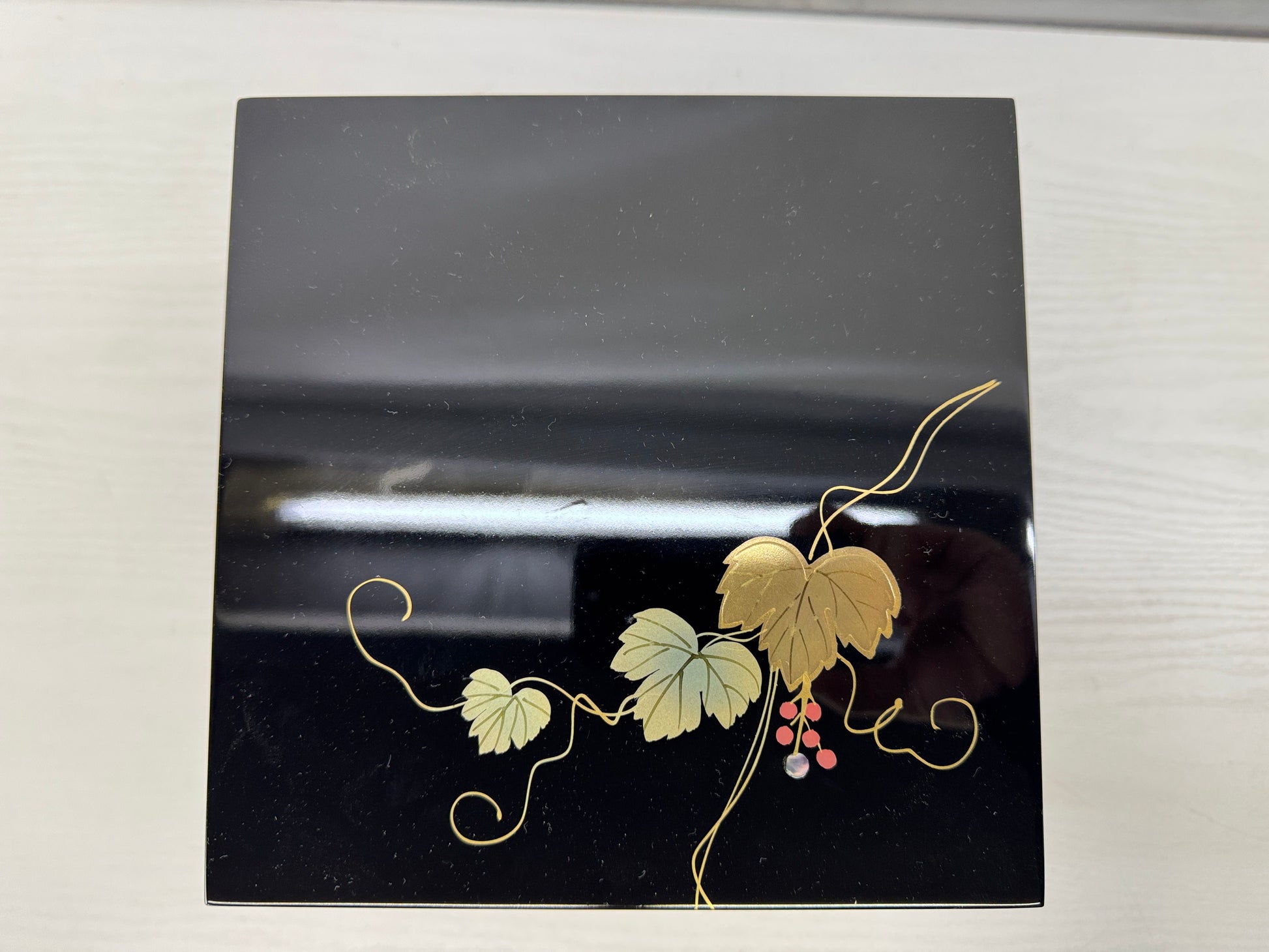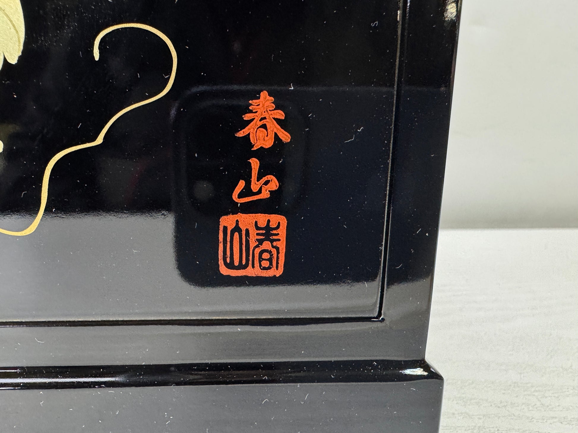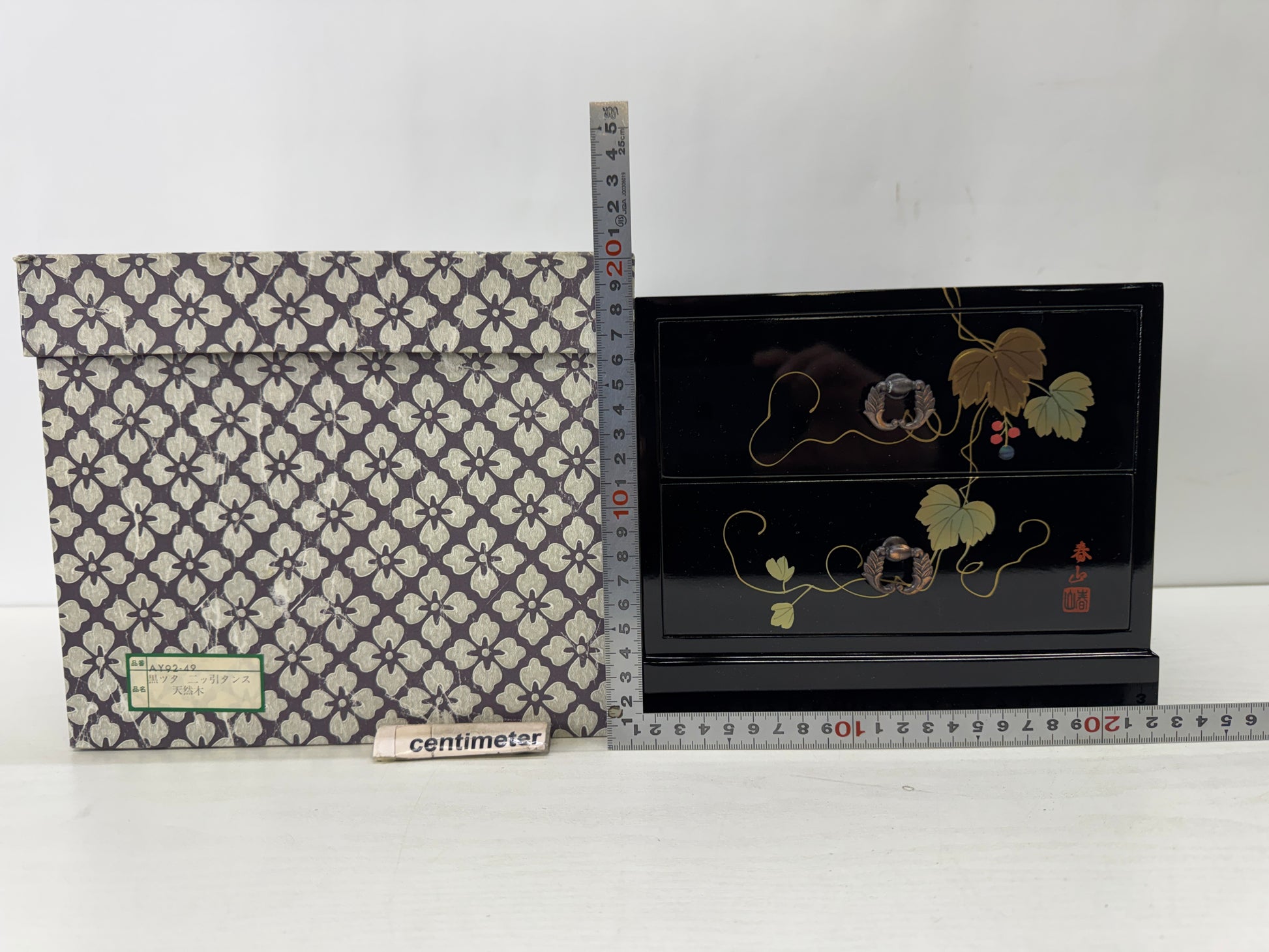 Y10163 TANSU 2-tiered small drawer Makie signed Japan antique storage furniture