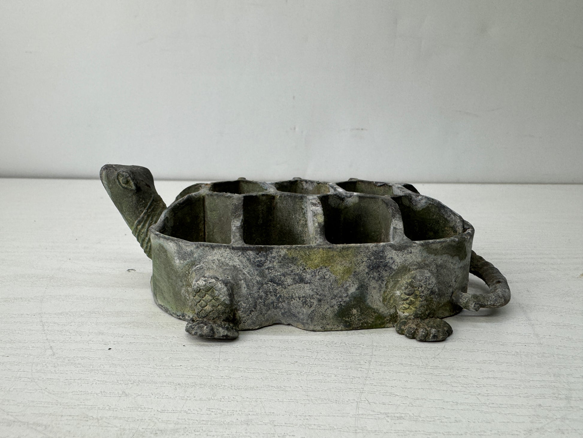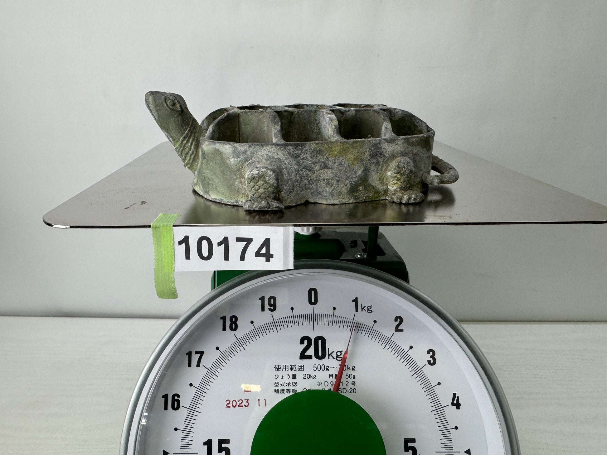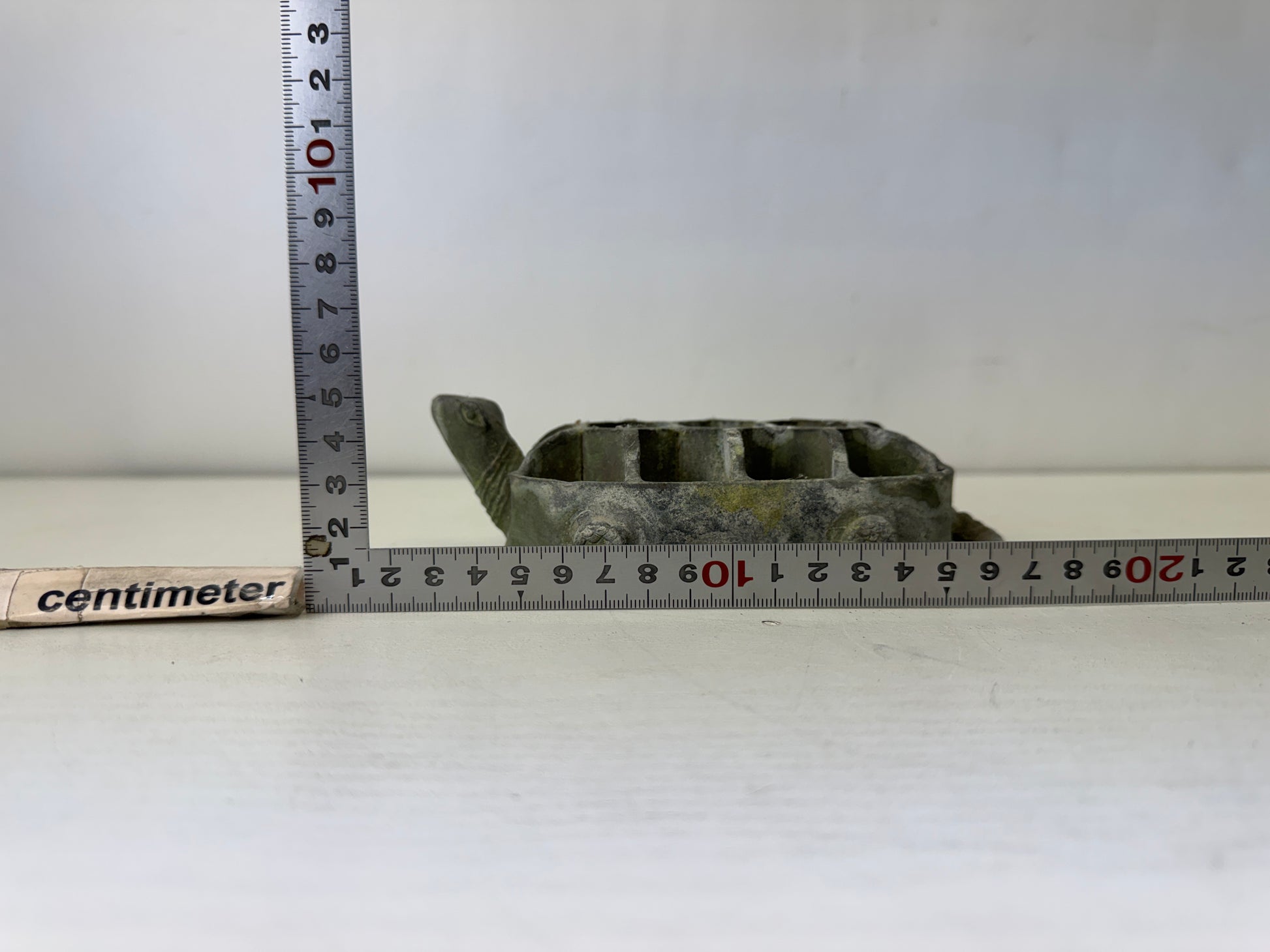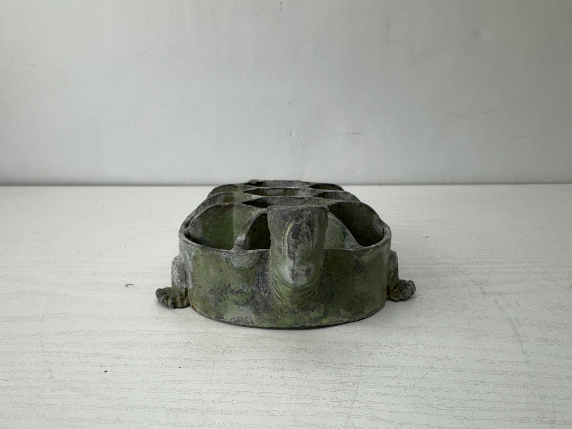 Y10174 KENZAN metal turtle floral frog flower Japan antique ikebana kabin vase