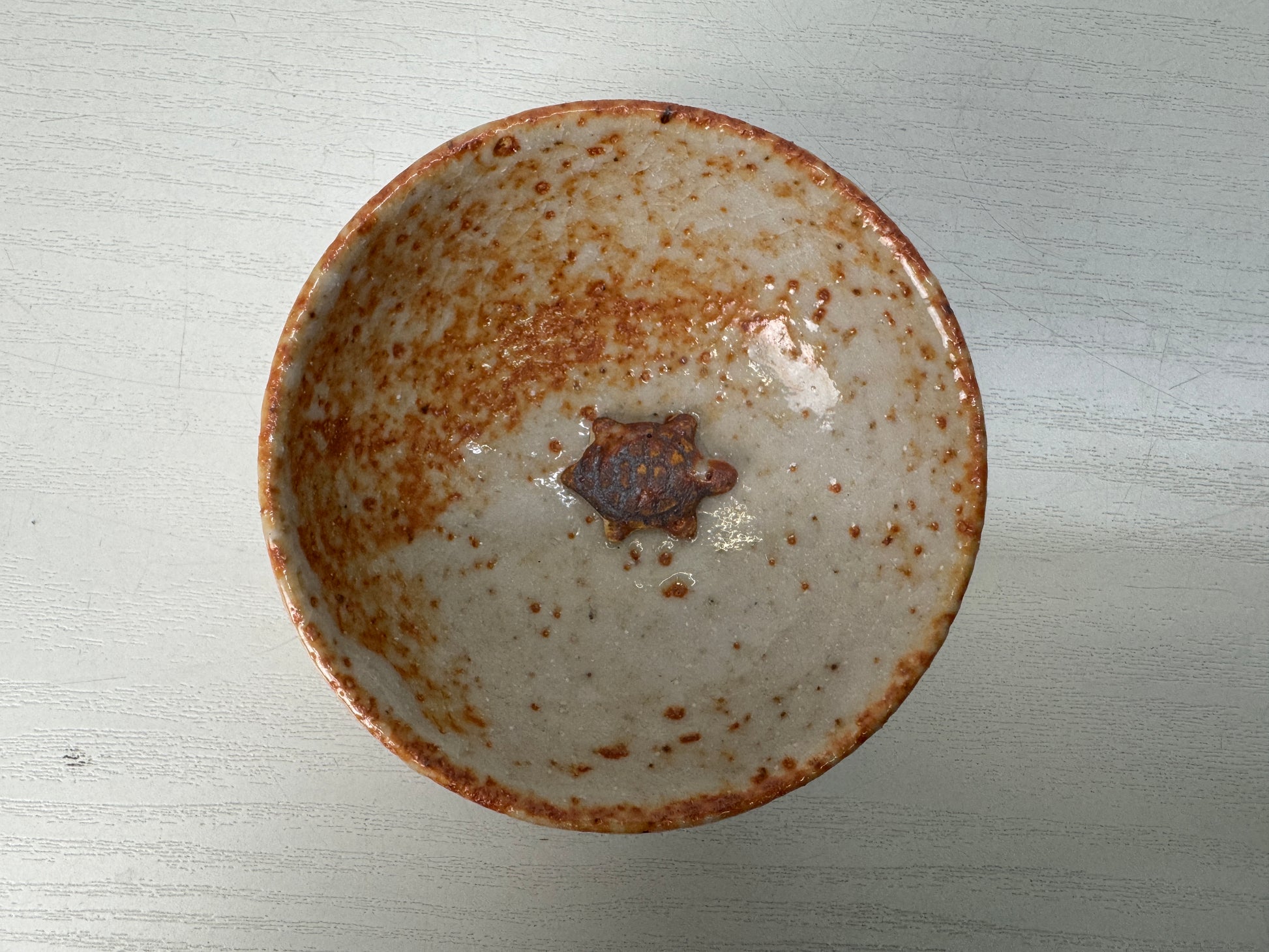CHAWAN Shino-ware sake cup signed box