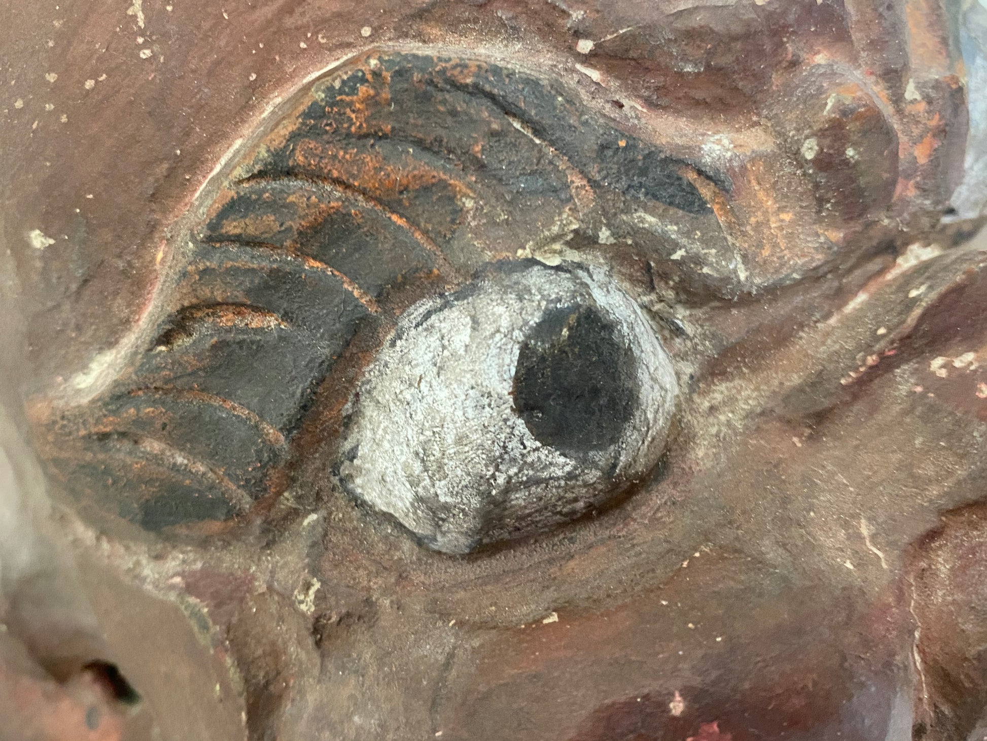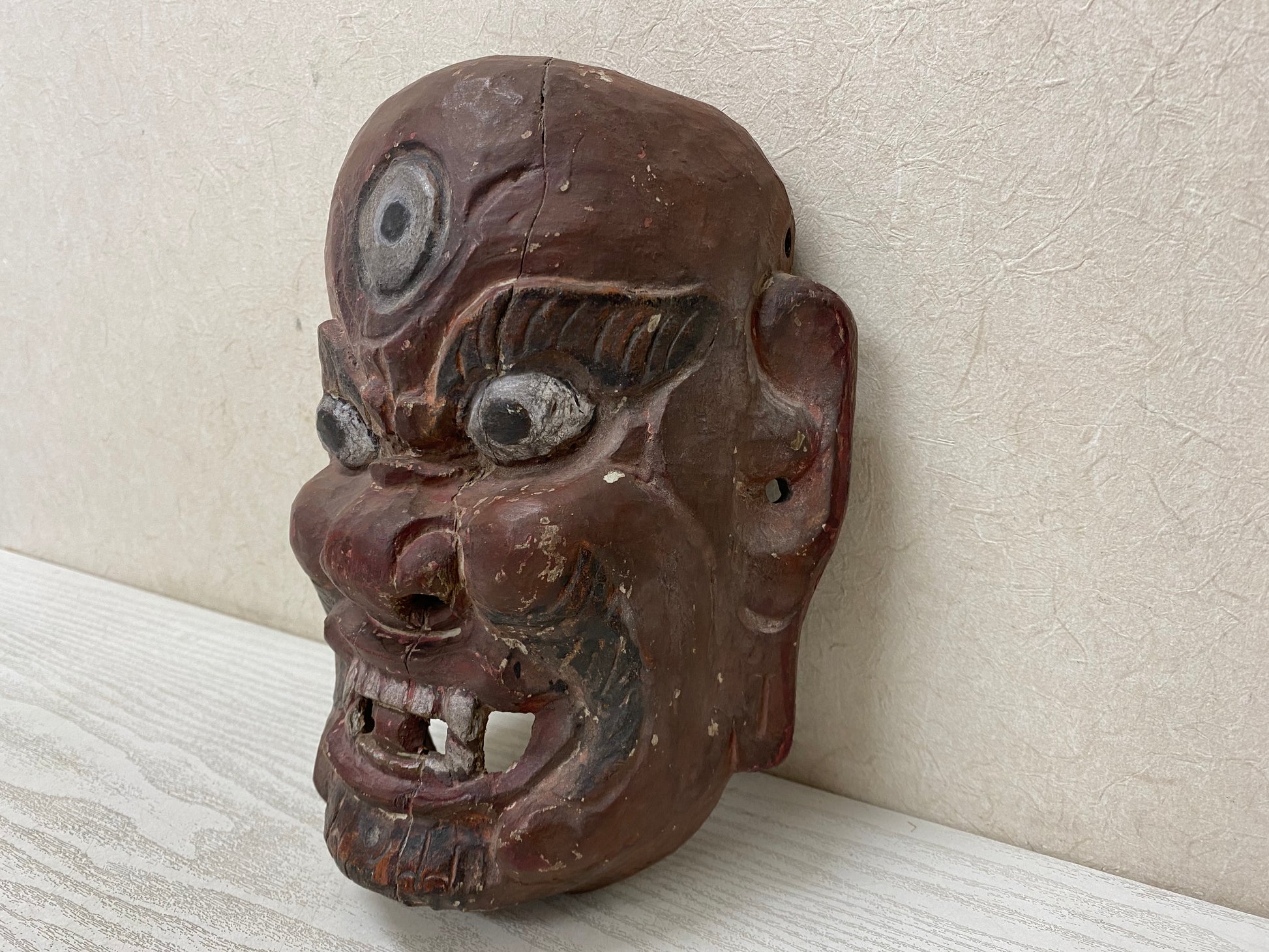Y2864 NOH MASK Three-eyed wood carving omen Japan vintage antique traditional