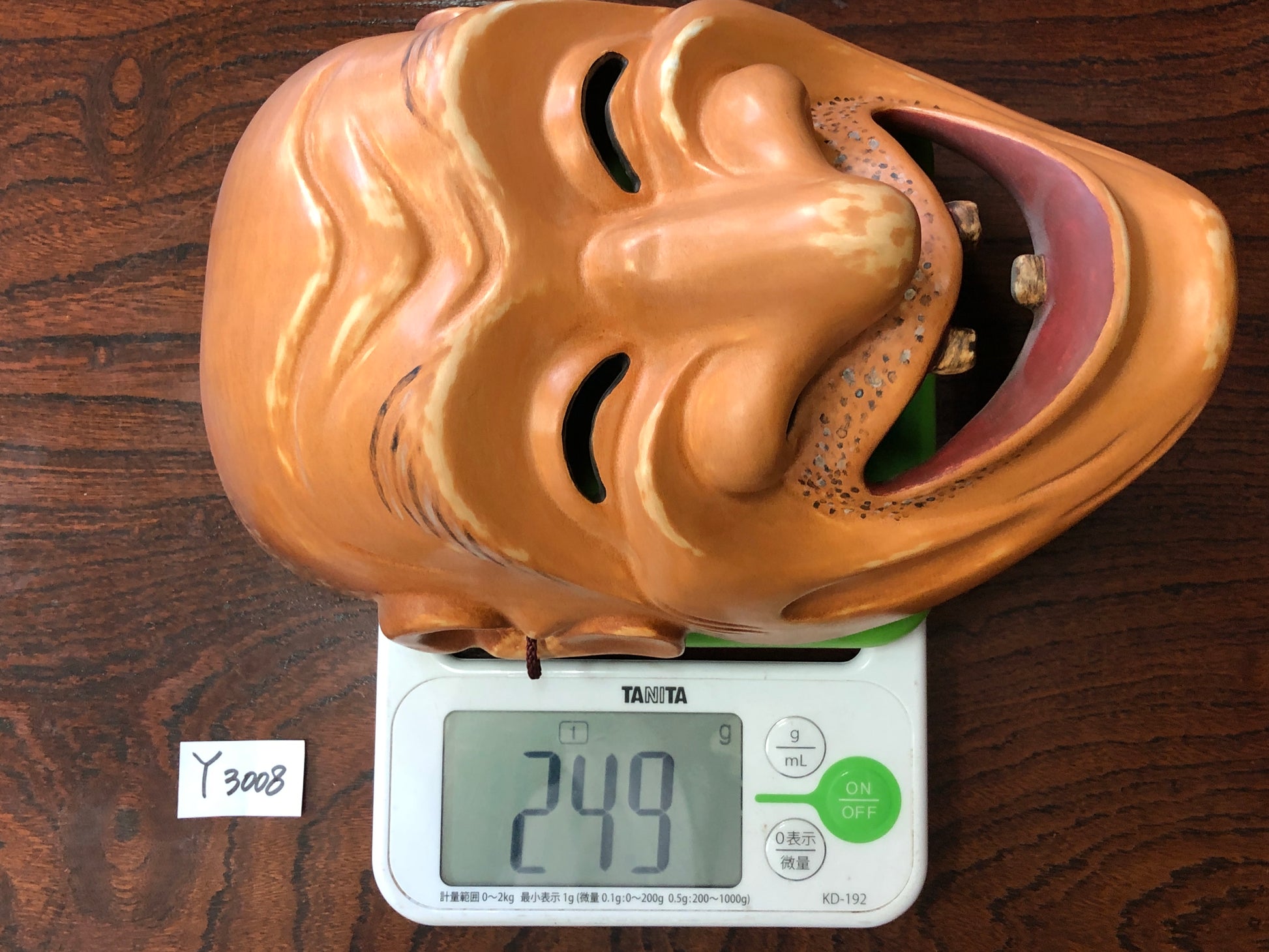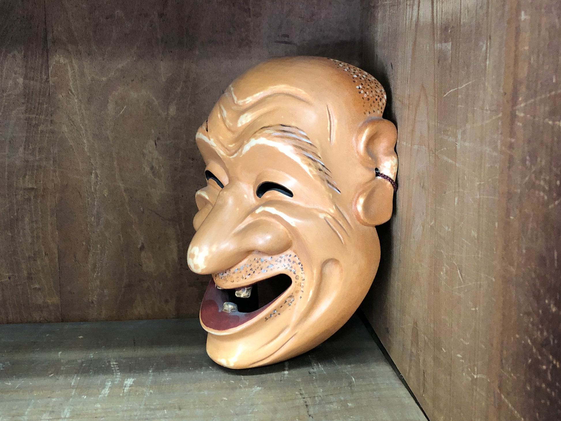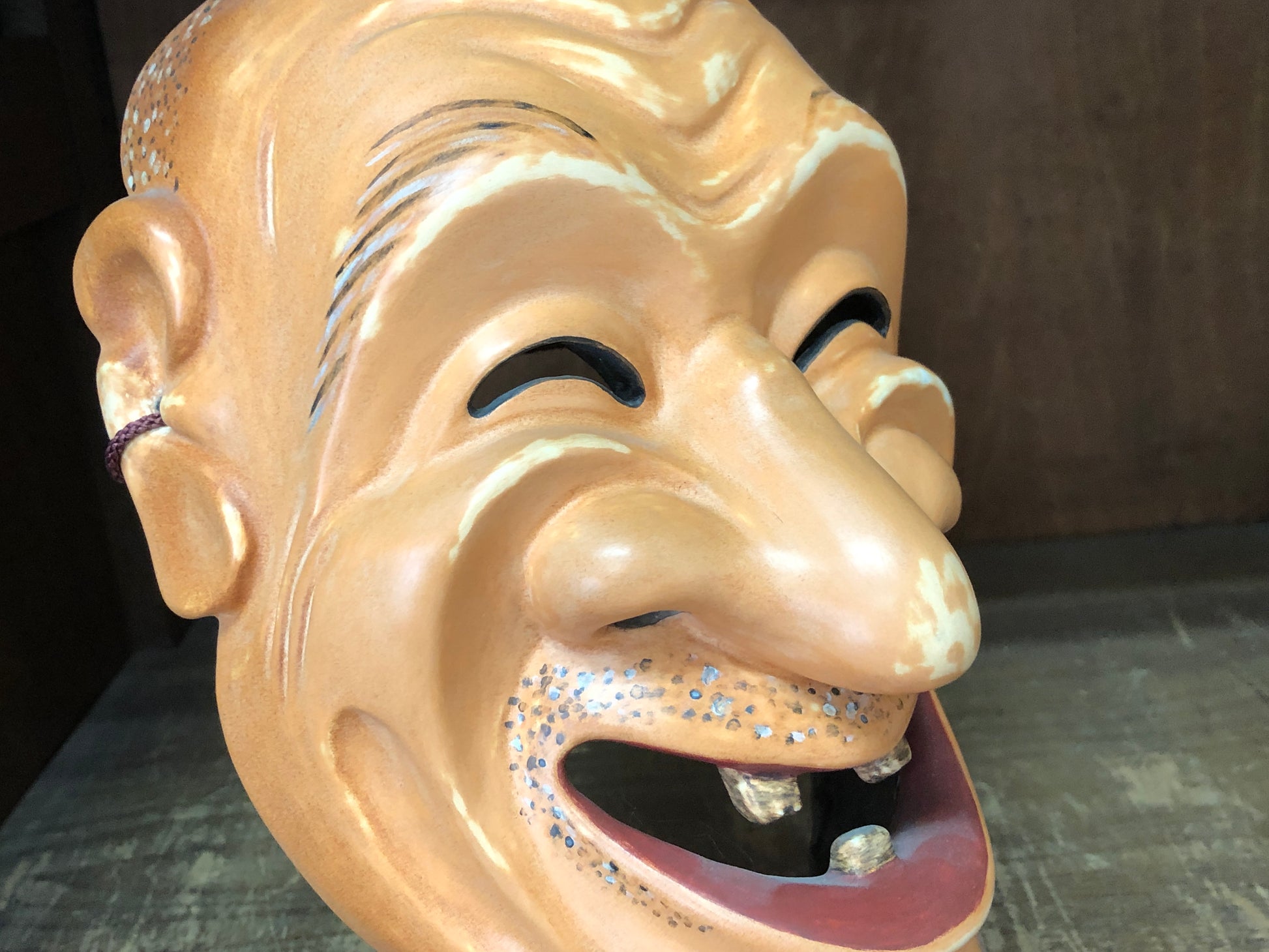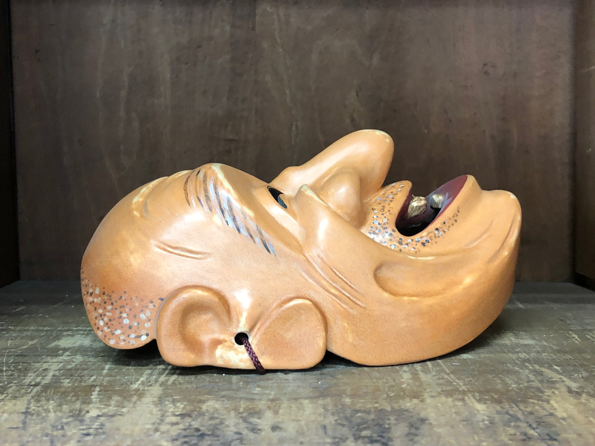 Y3008 NOH MASK wood carving Smiling face Japan antique dance drama omen men