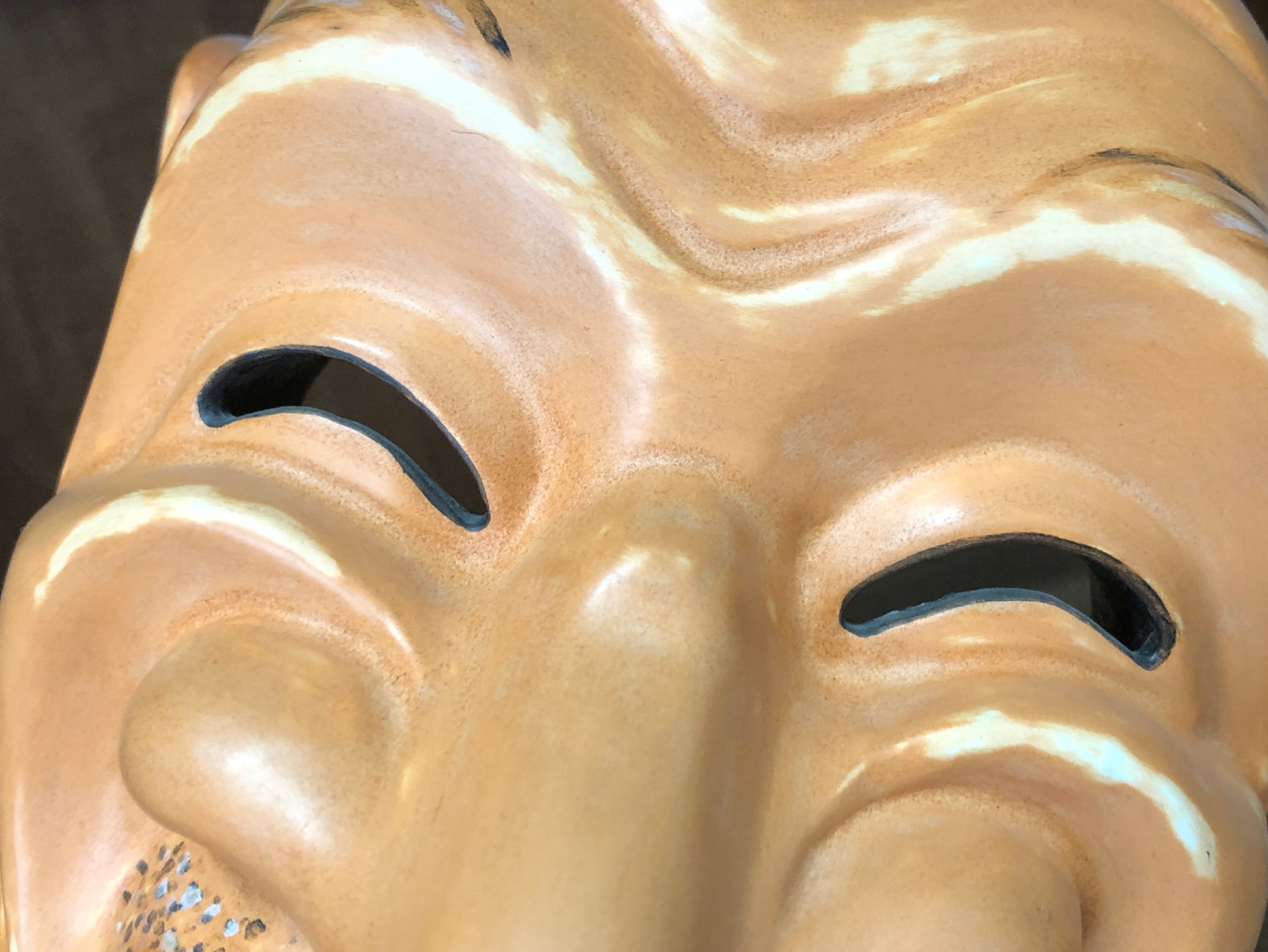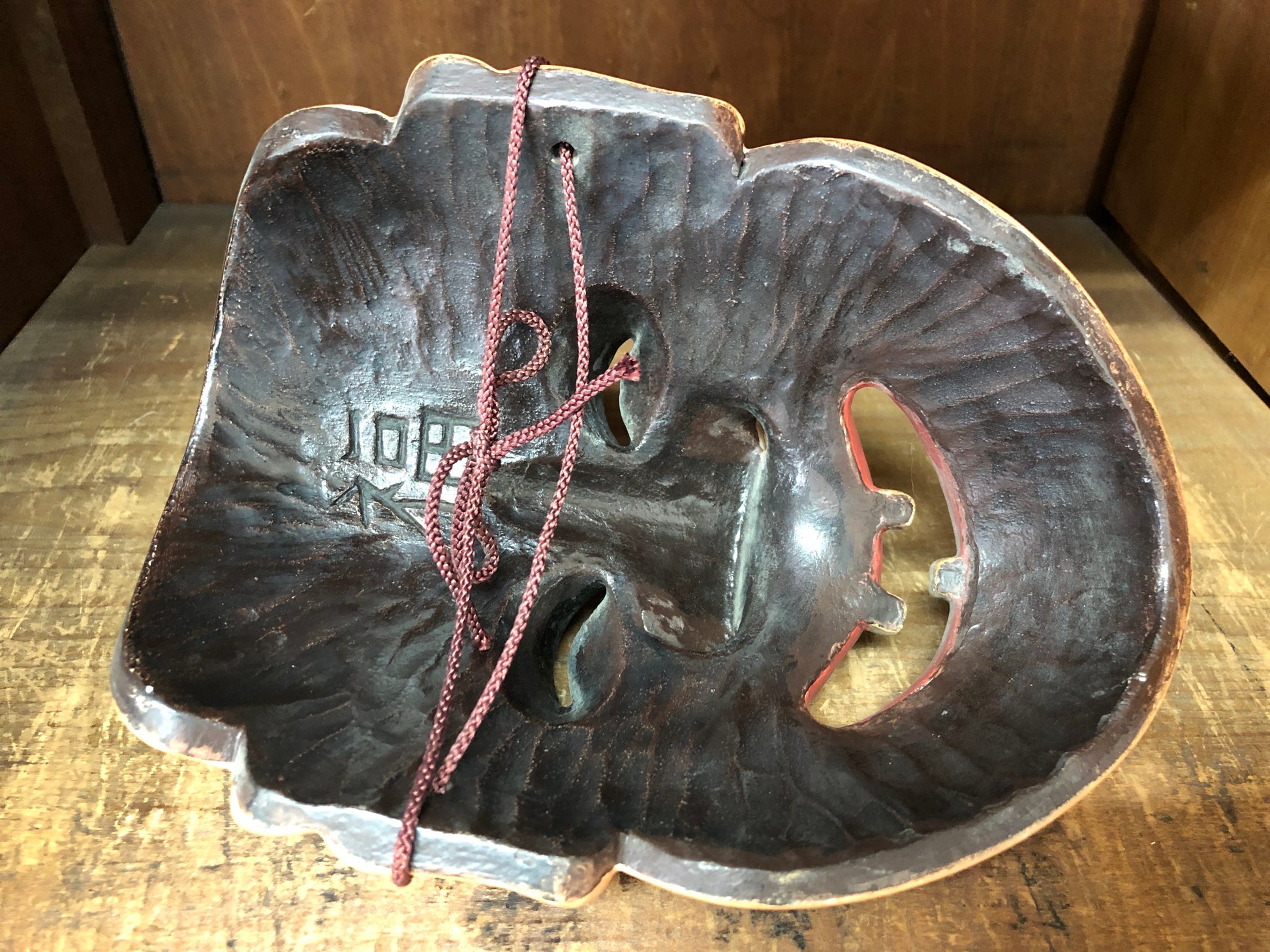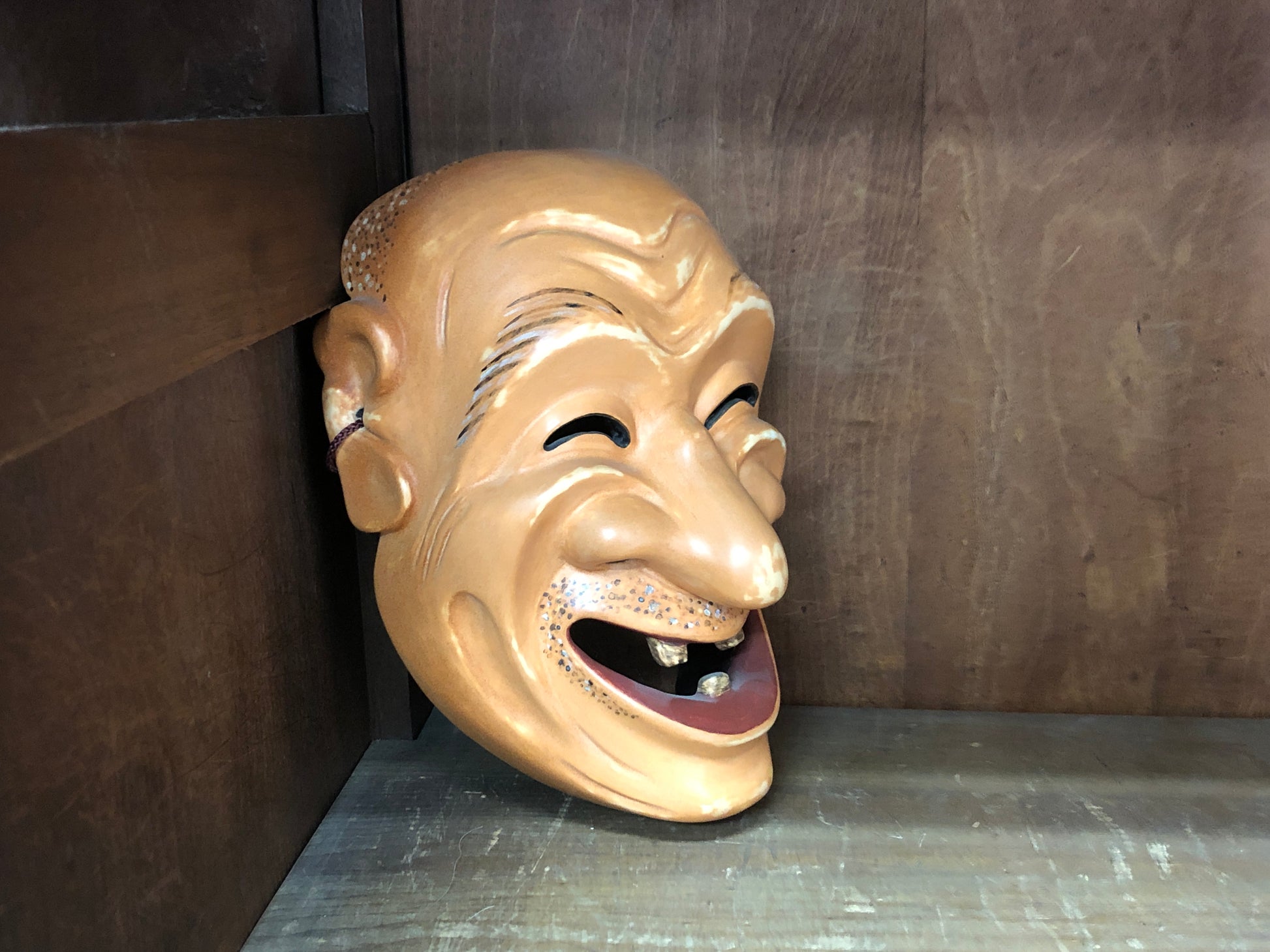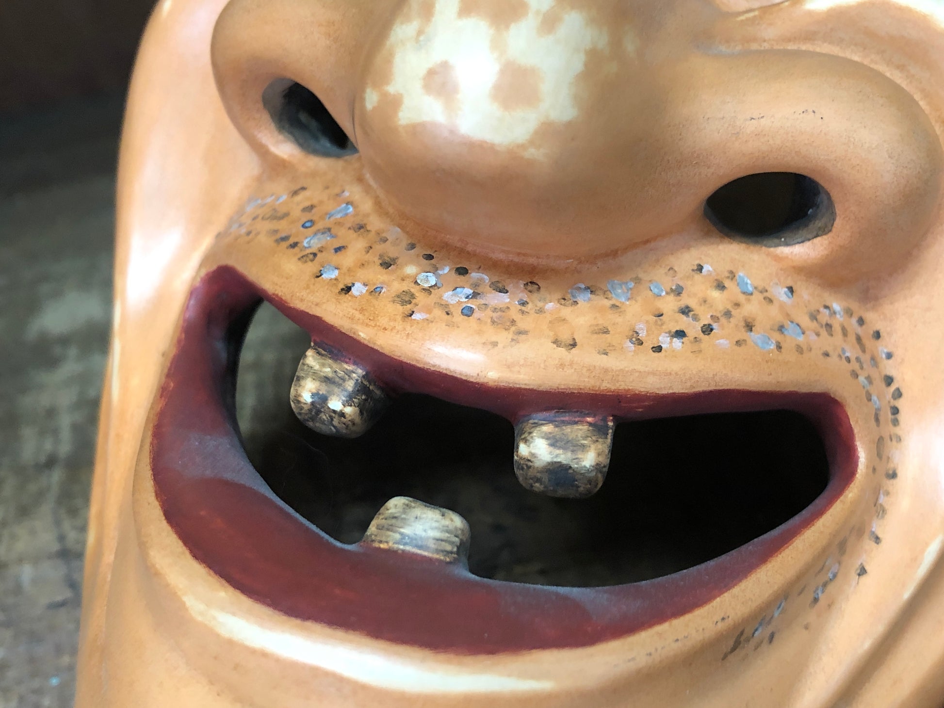 Y3008 NOH MASK wood carving Smiling face Japan antique dance drama omen men