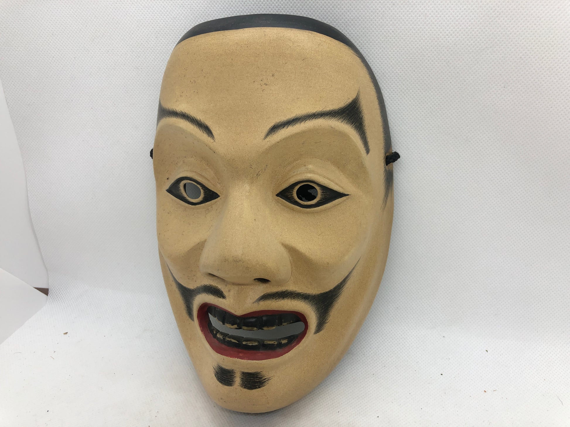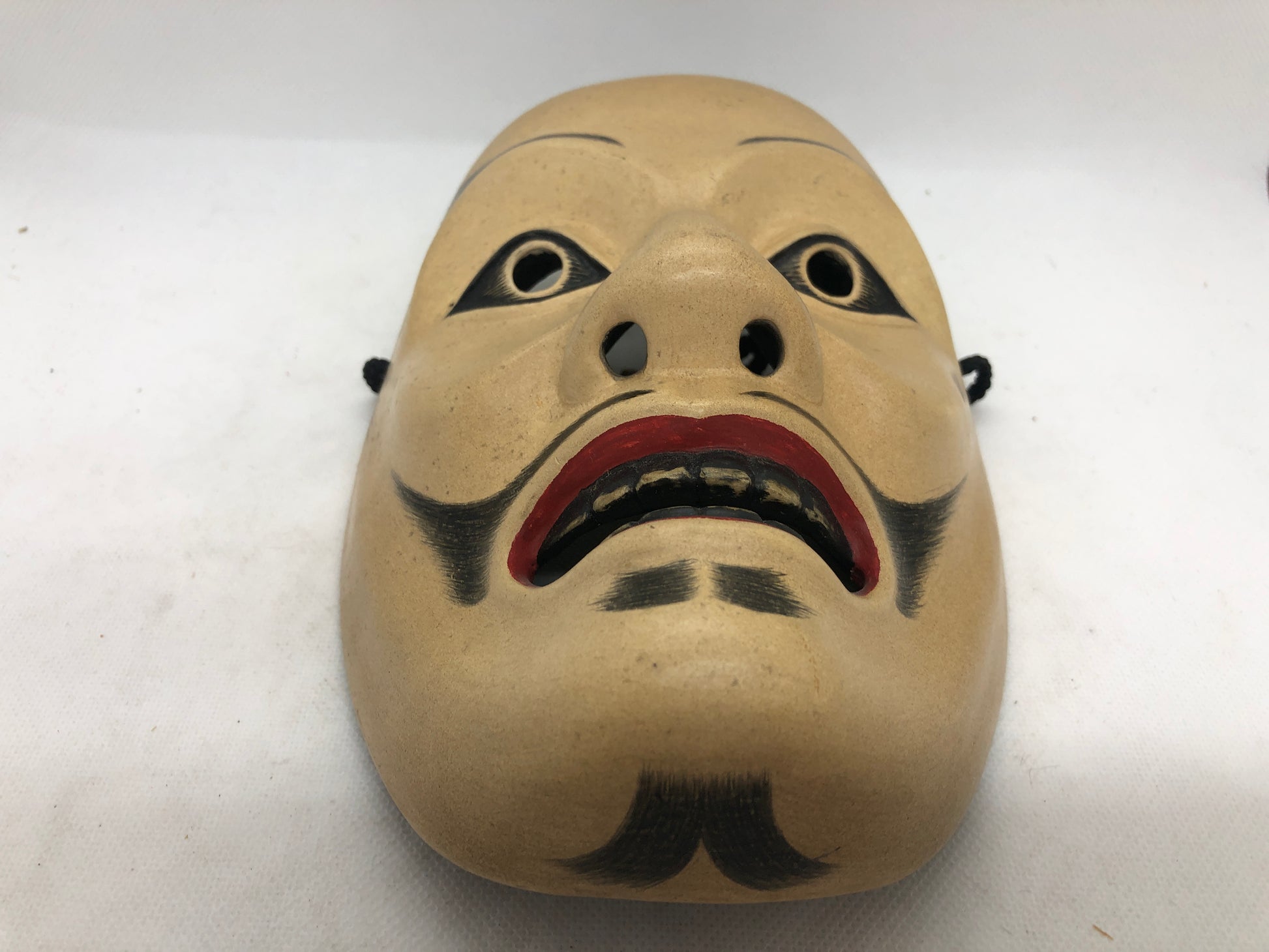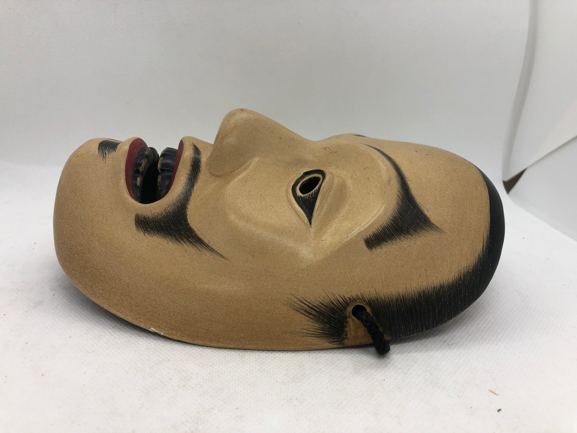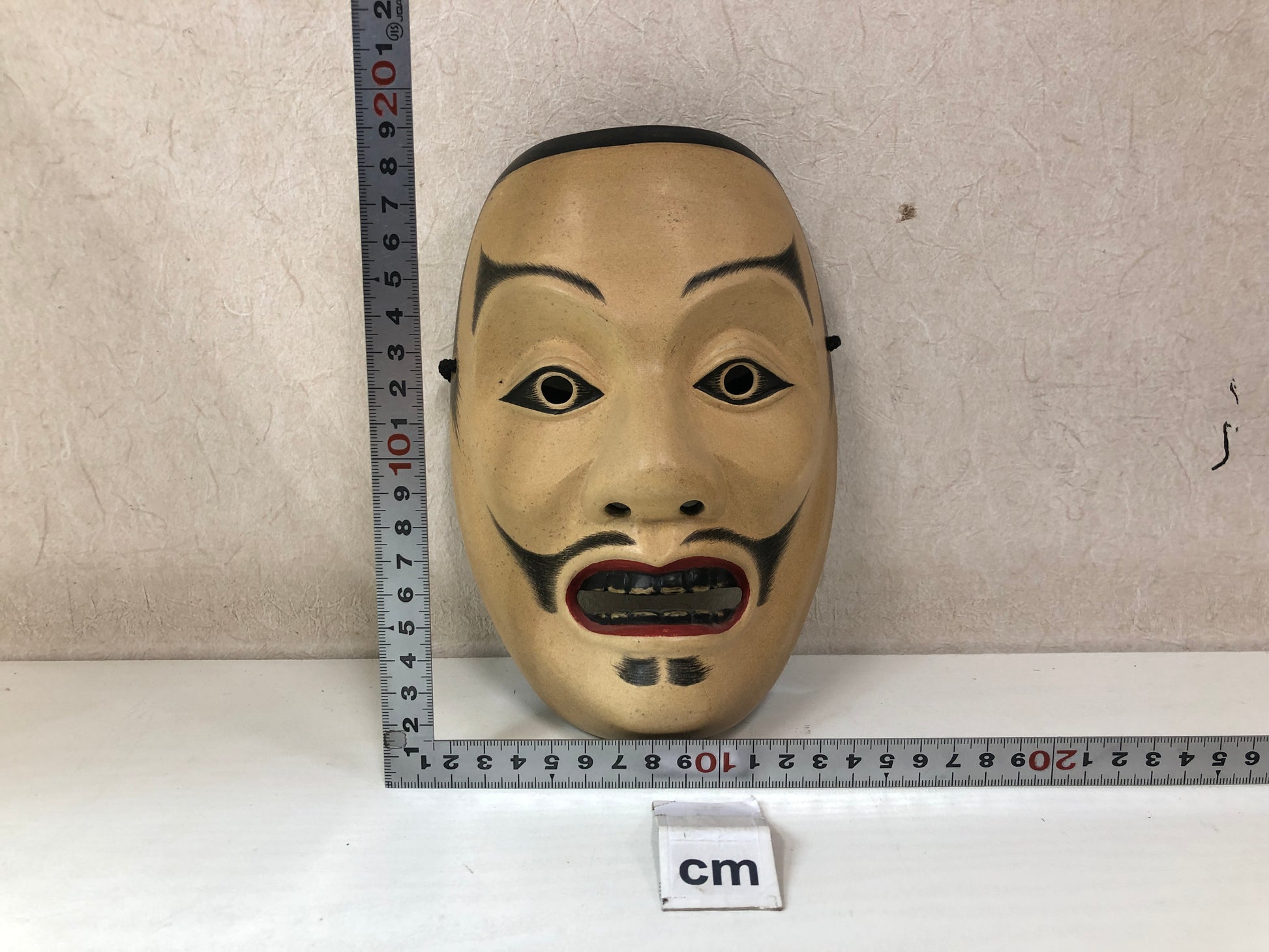 Y4663 NOH MASK wood carving Shintai signed Japan antique omen dance drama