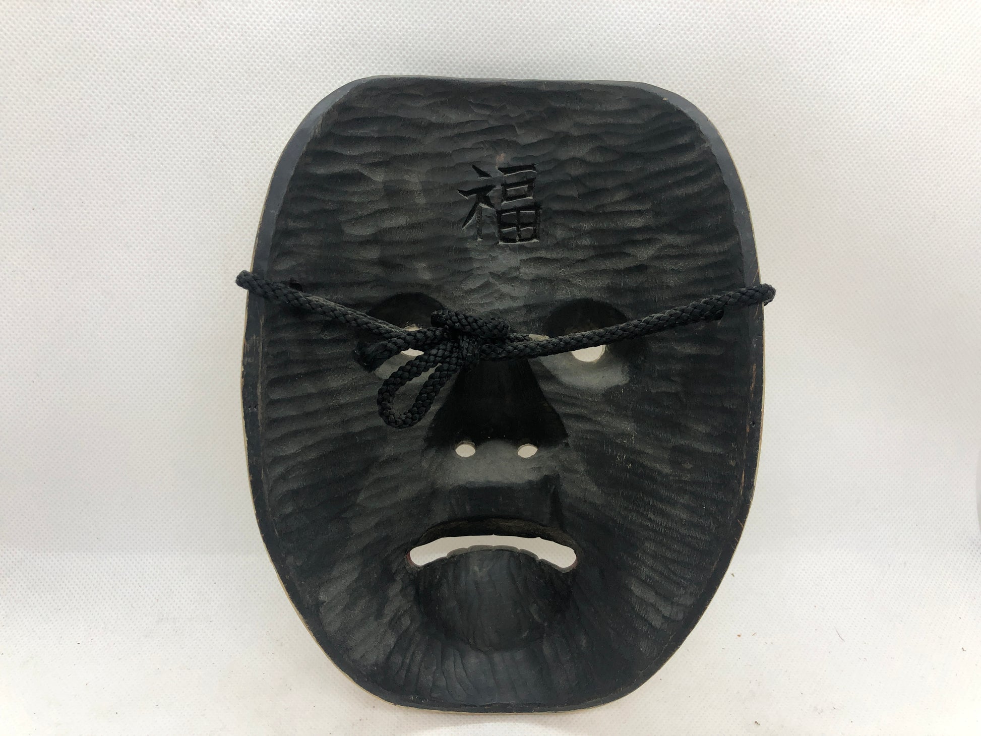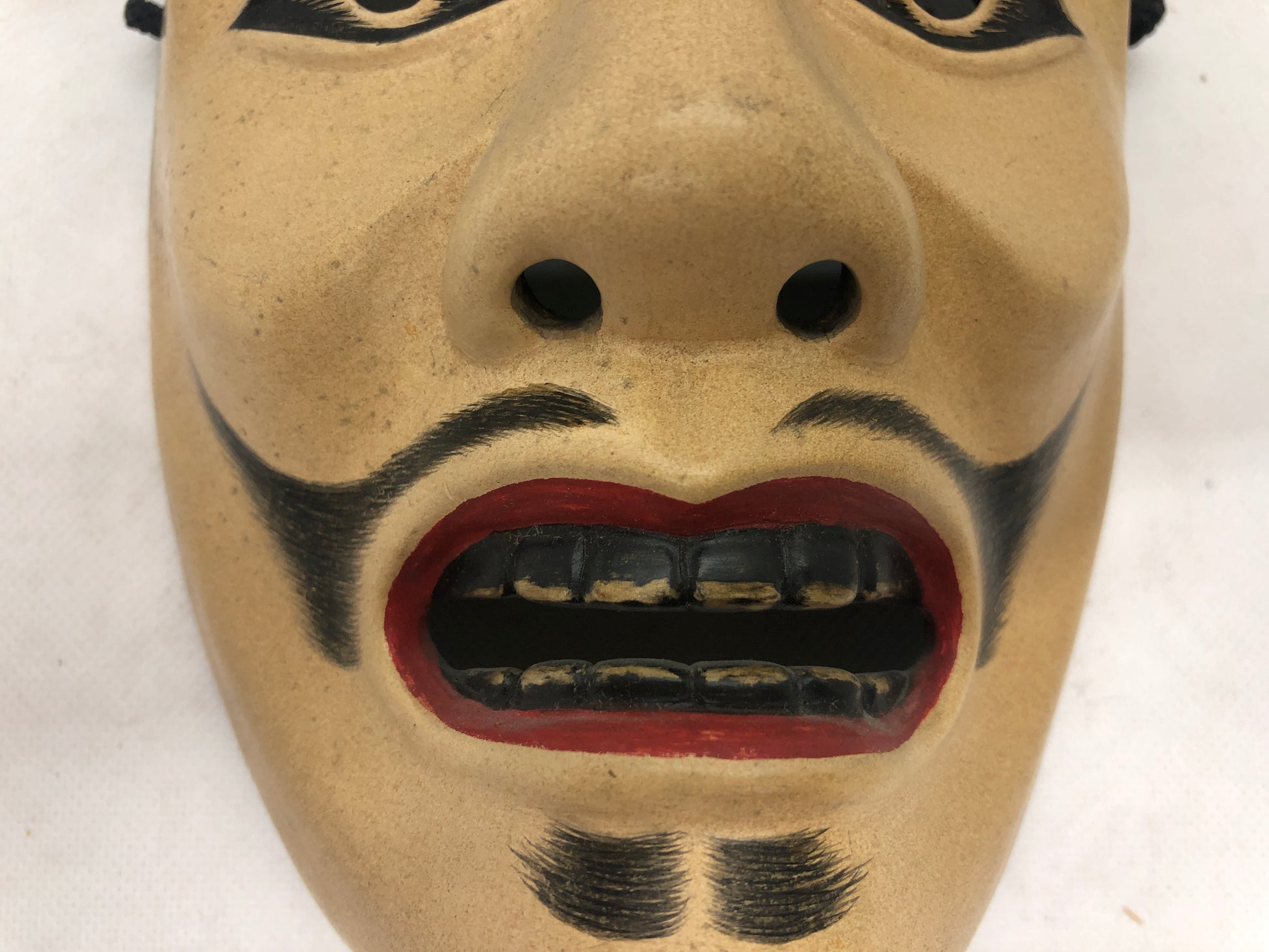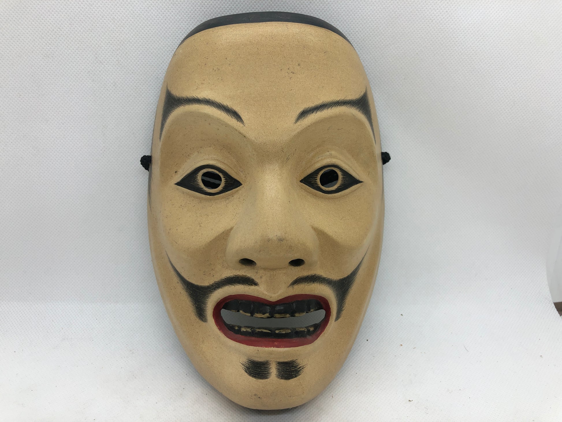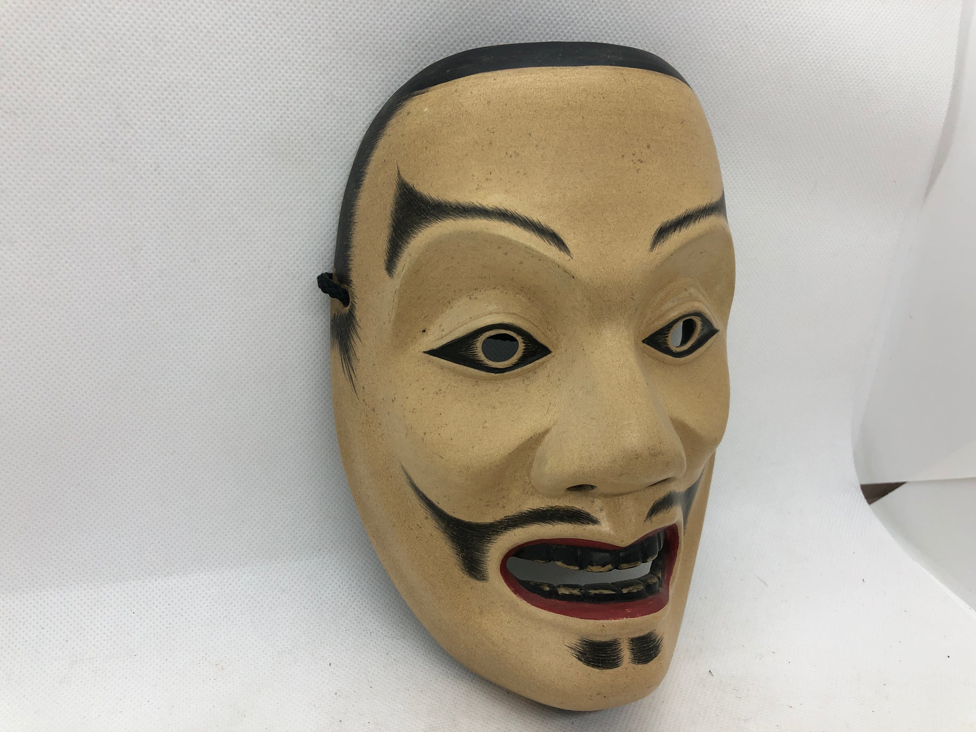 Y4663 NOH MASK wood carving Shintai signed Japan antique omen dance drama