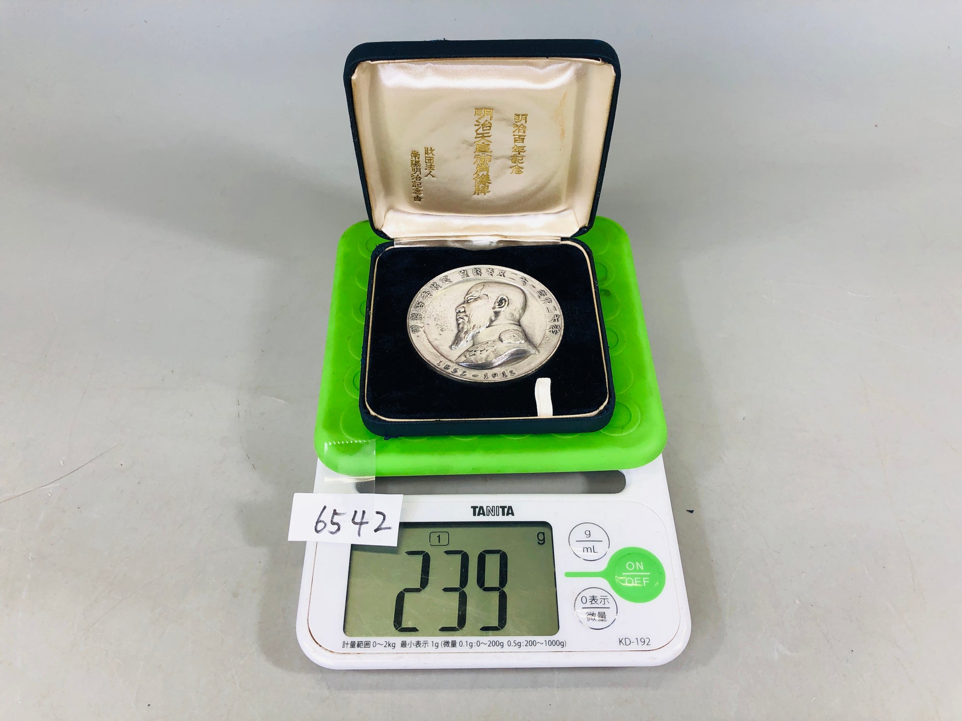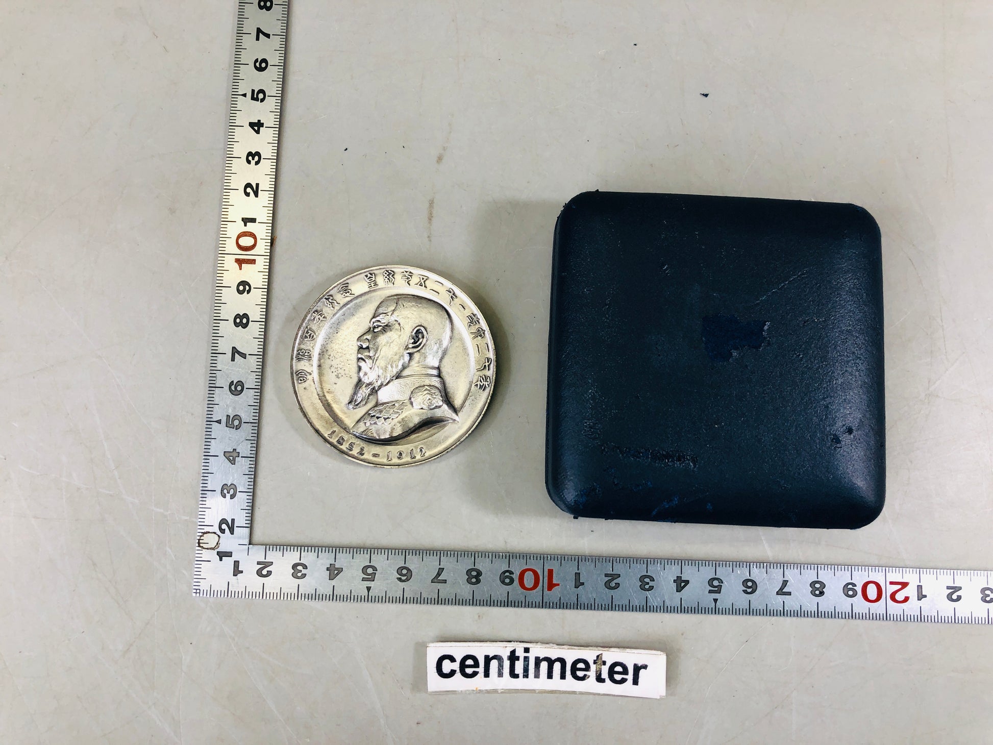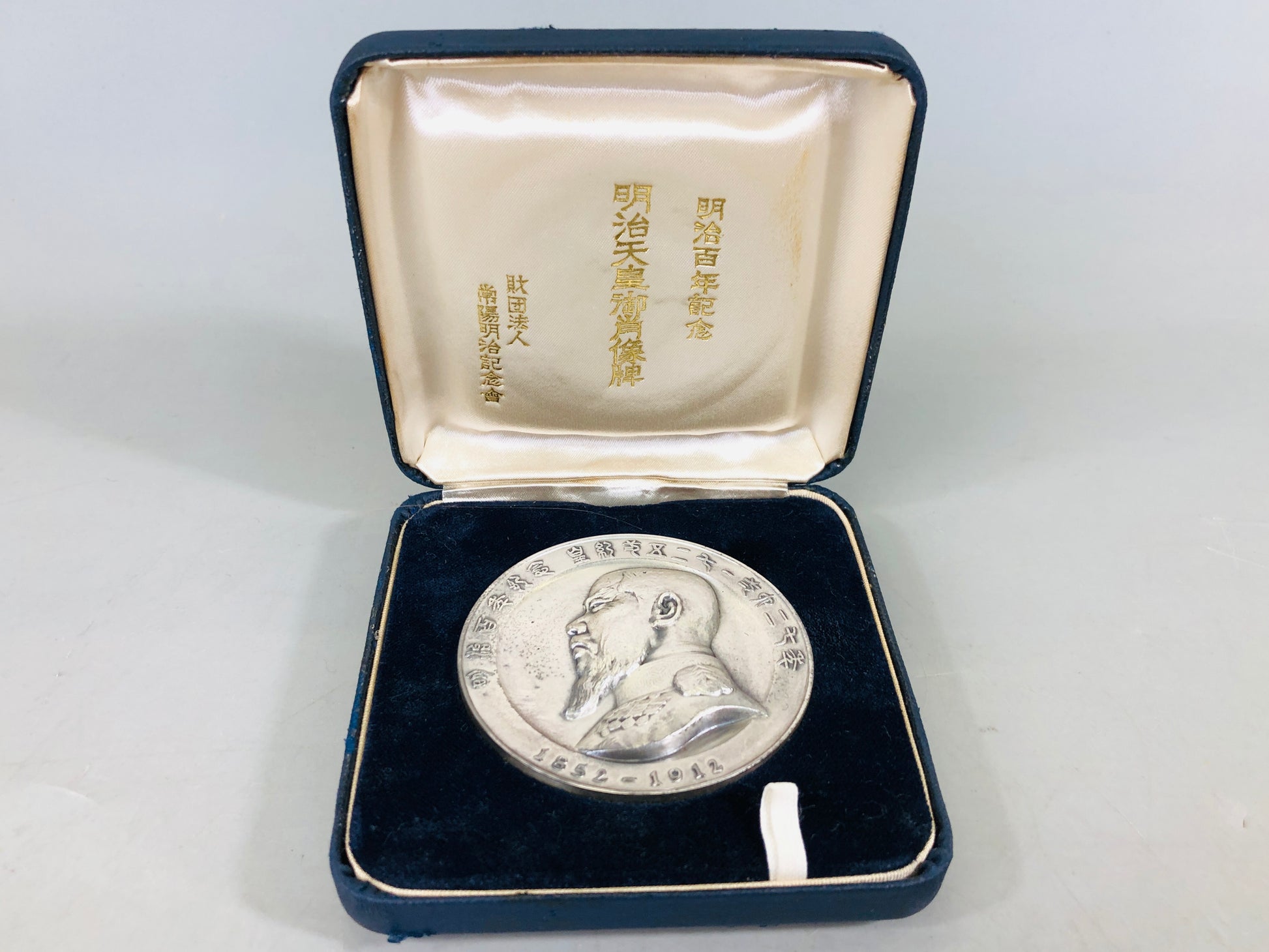 Y6542 [VIDEO] KUNSHO Sterling silver medal Emperor Meiji portrait box Japan antique