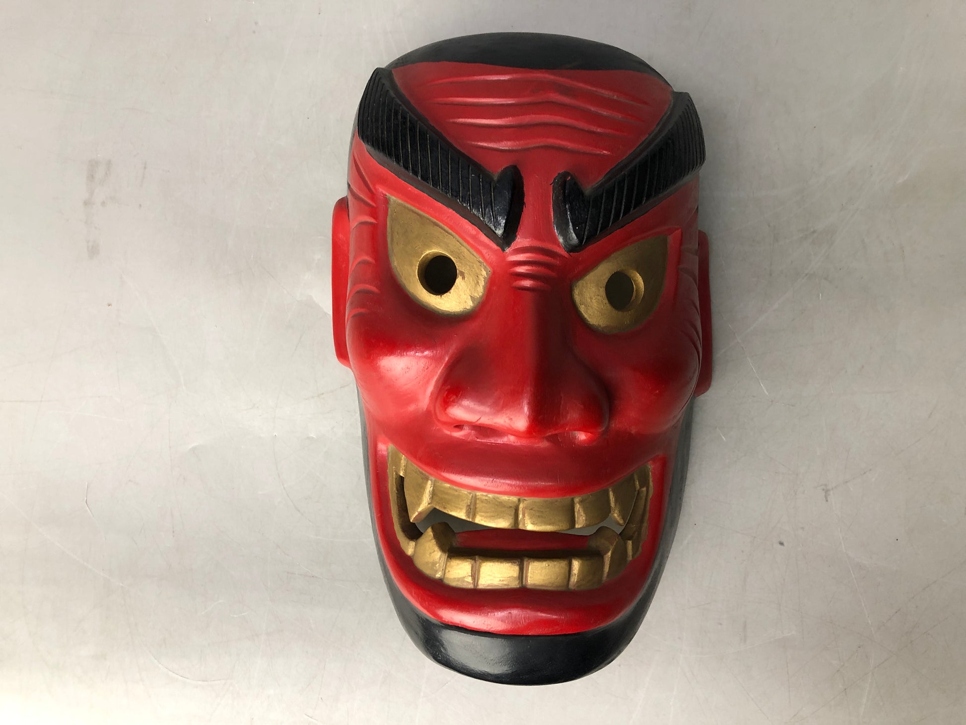 NOH MASK wood carving red face