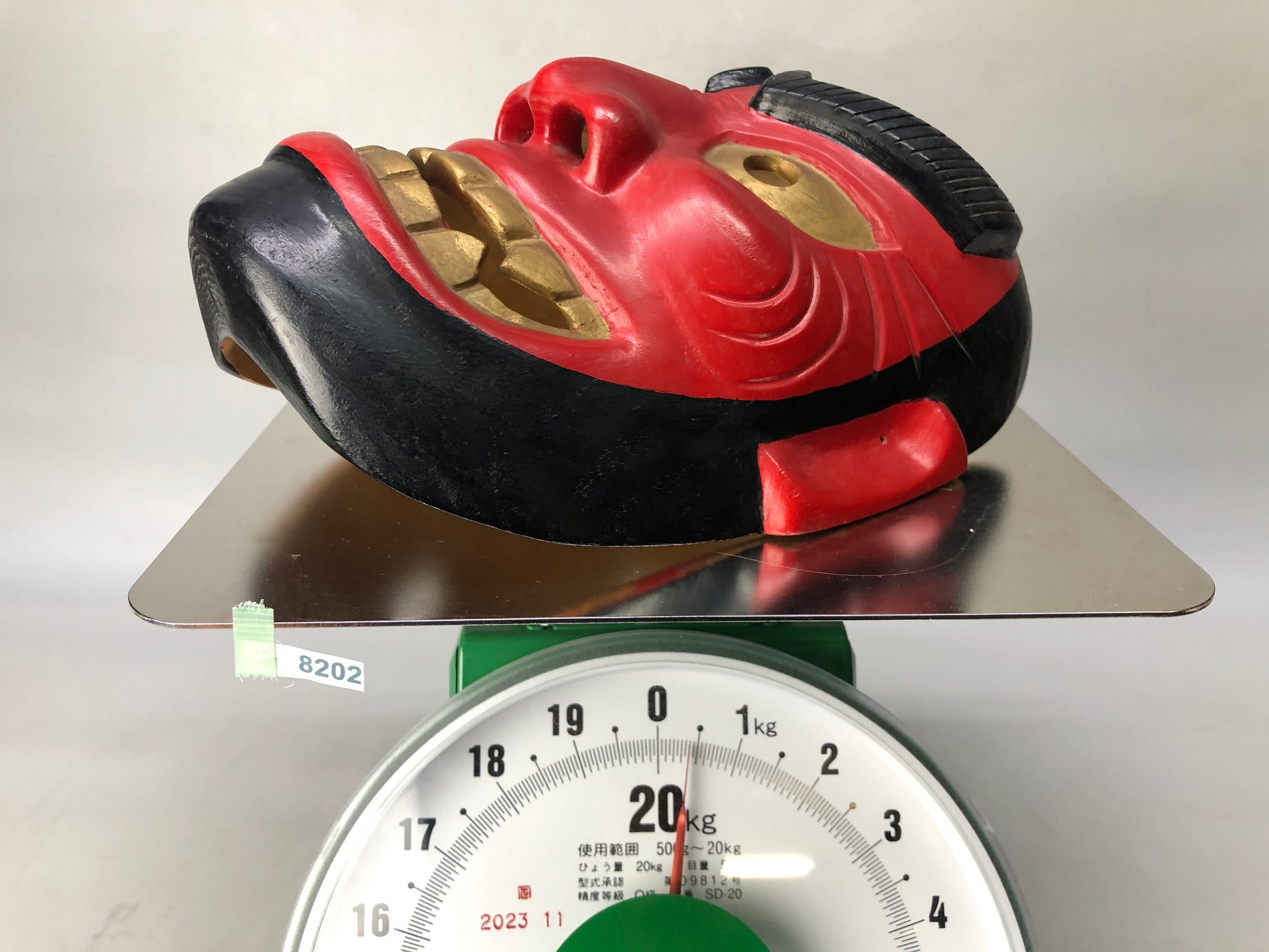 Y8202 NOH MASK wood carving red face Japan antique dance drama traditional omen