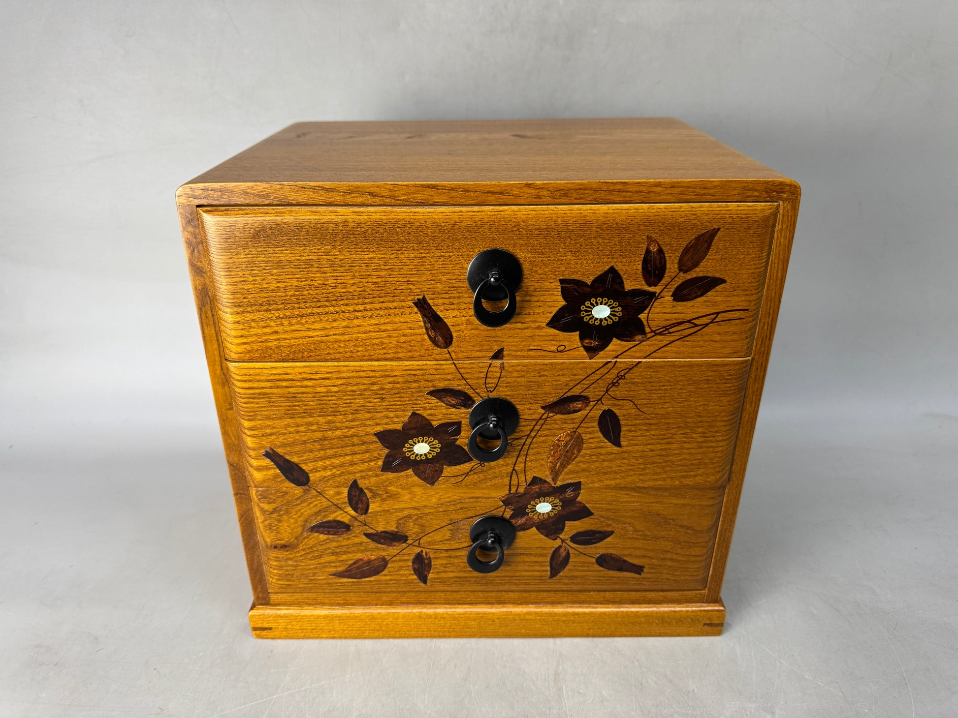 Y8657 TANSU Parquet small chest of drawers cherry blossoms Japan antique storage