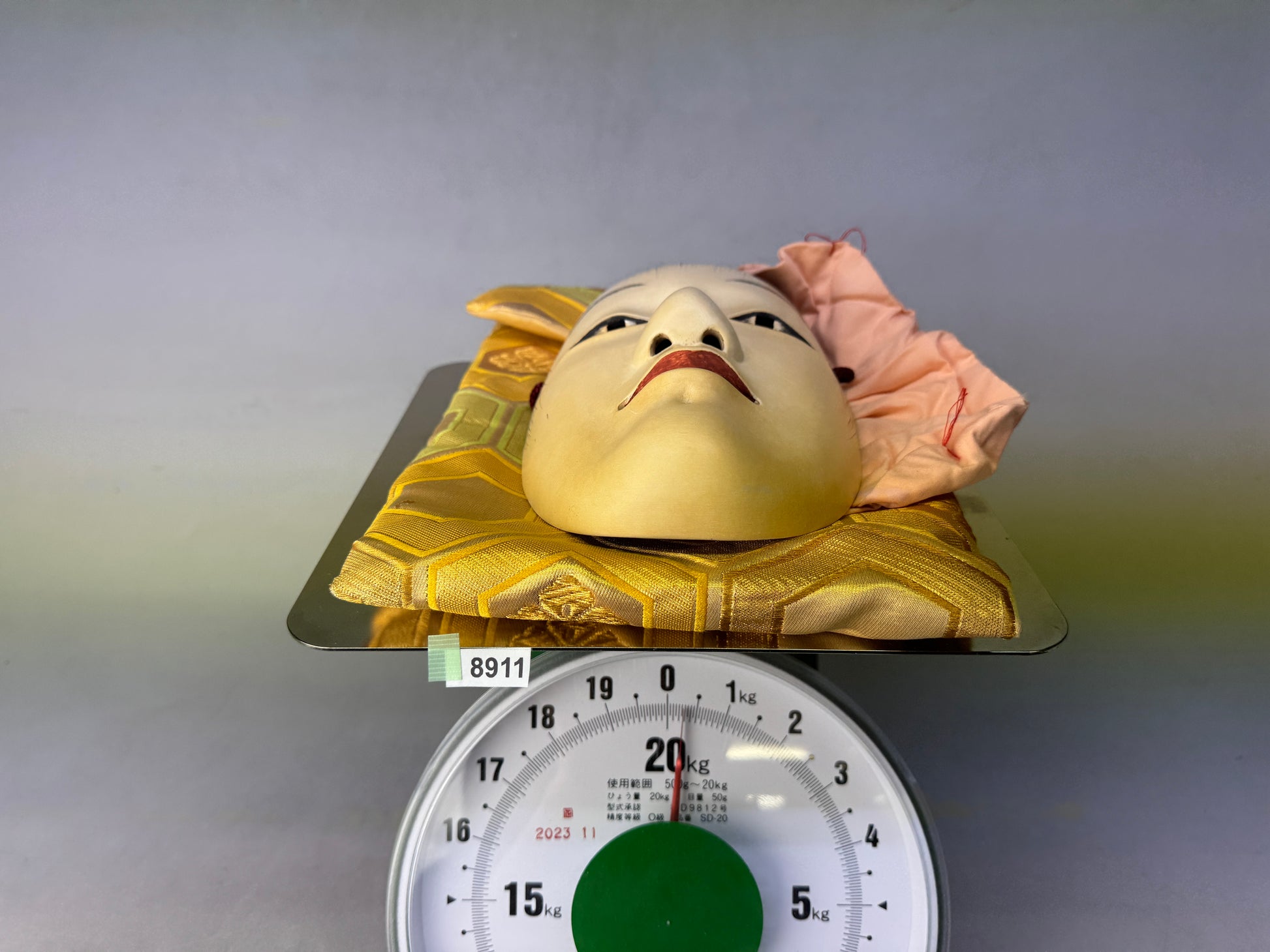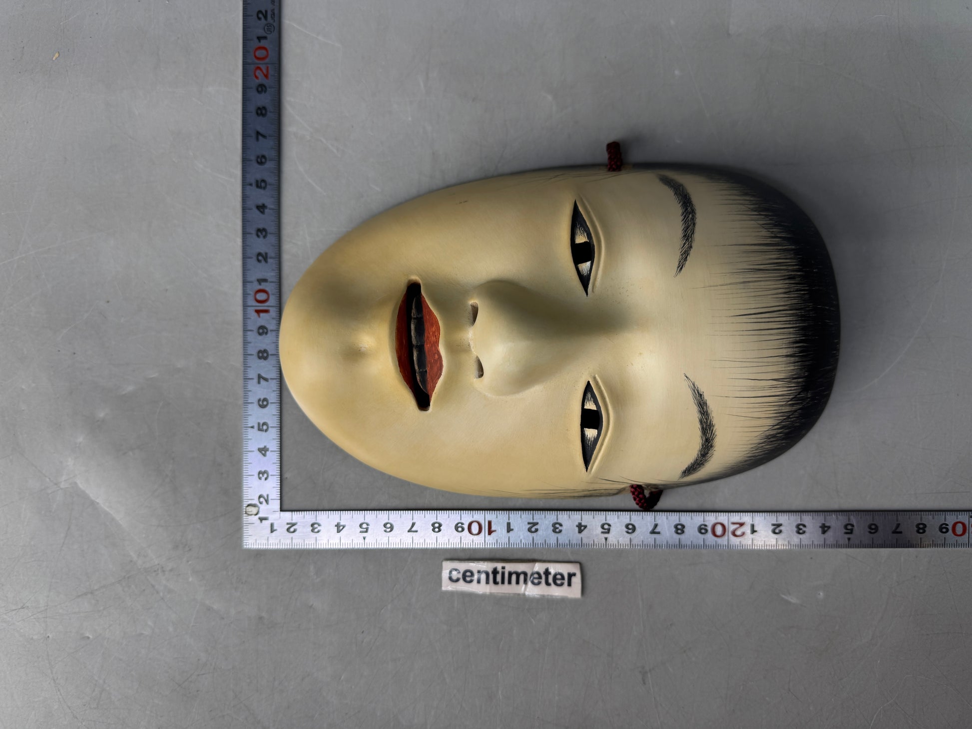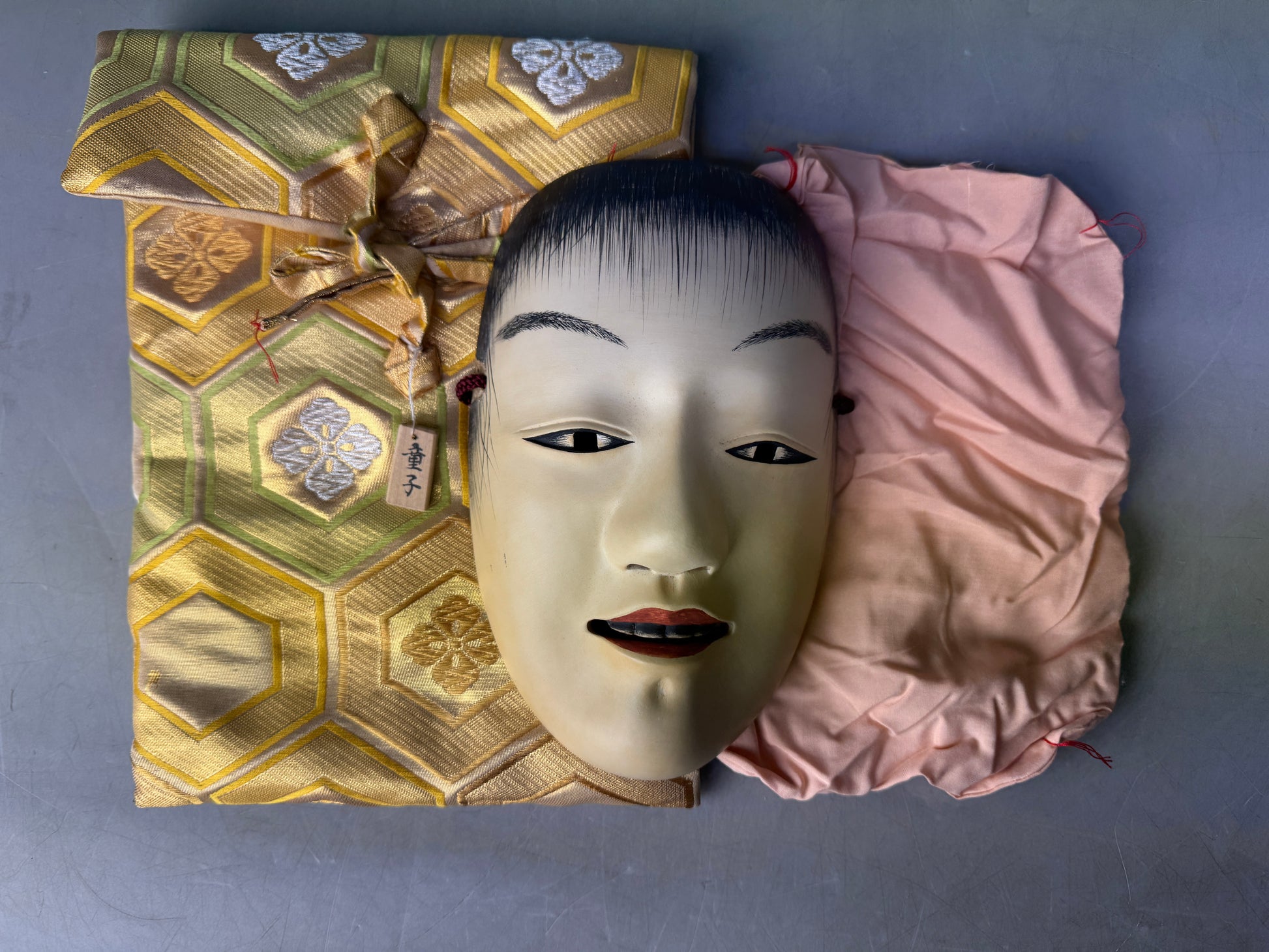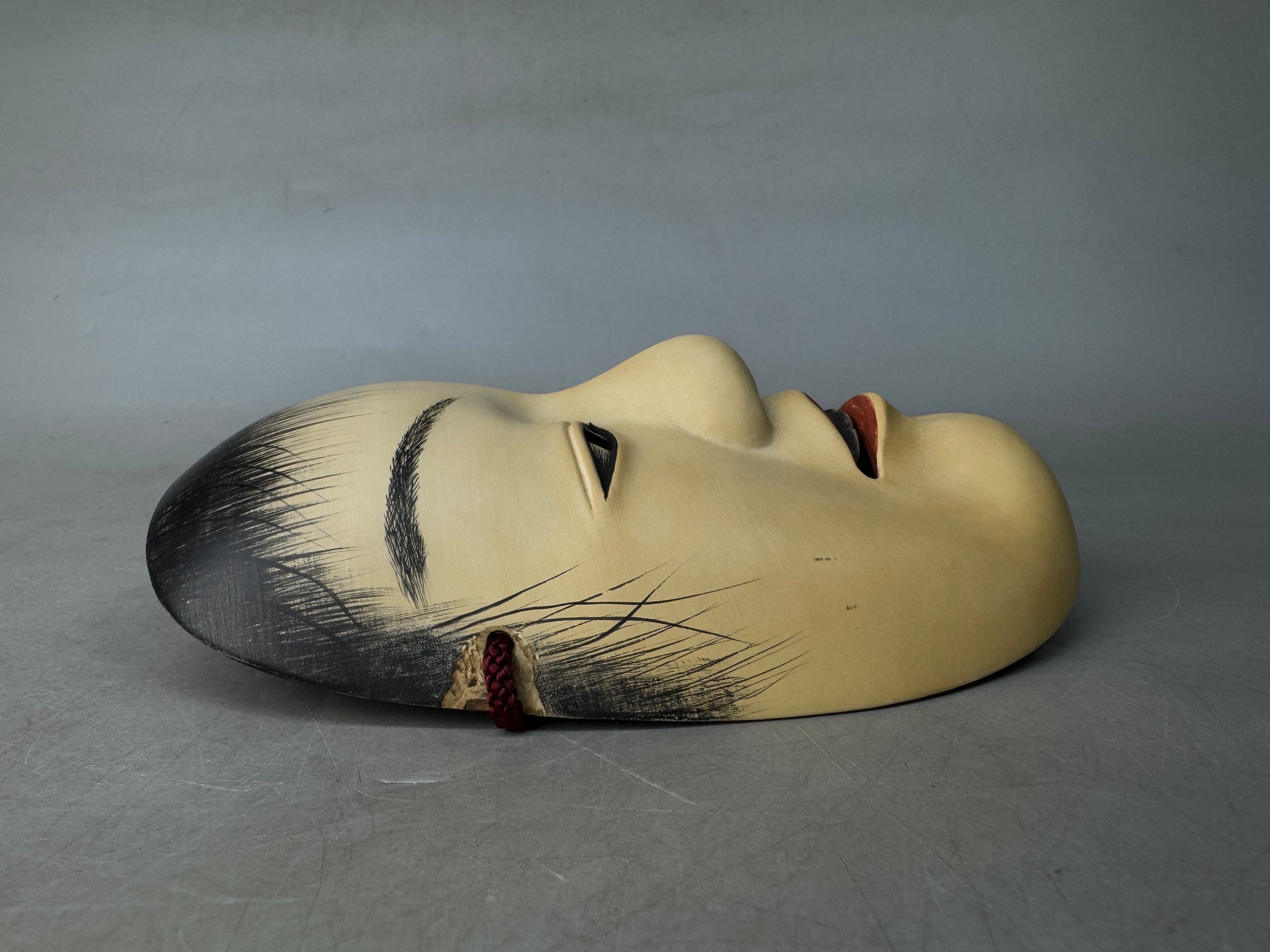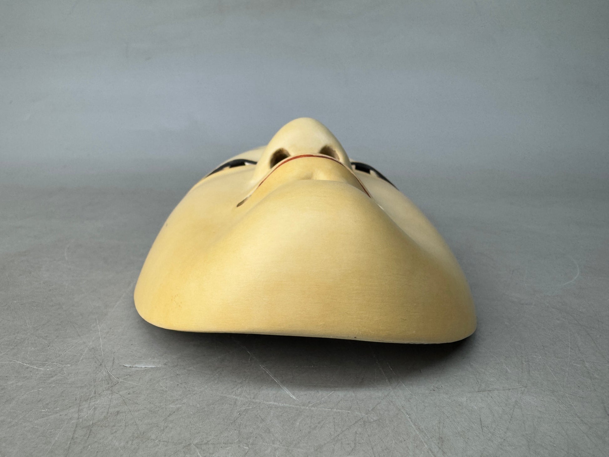 Y8911 NOH MASK wood carving Doushi signed Japan antique omen men dance drama