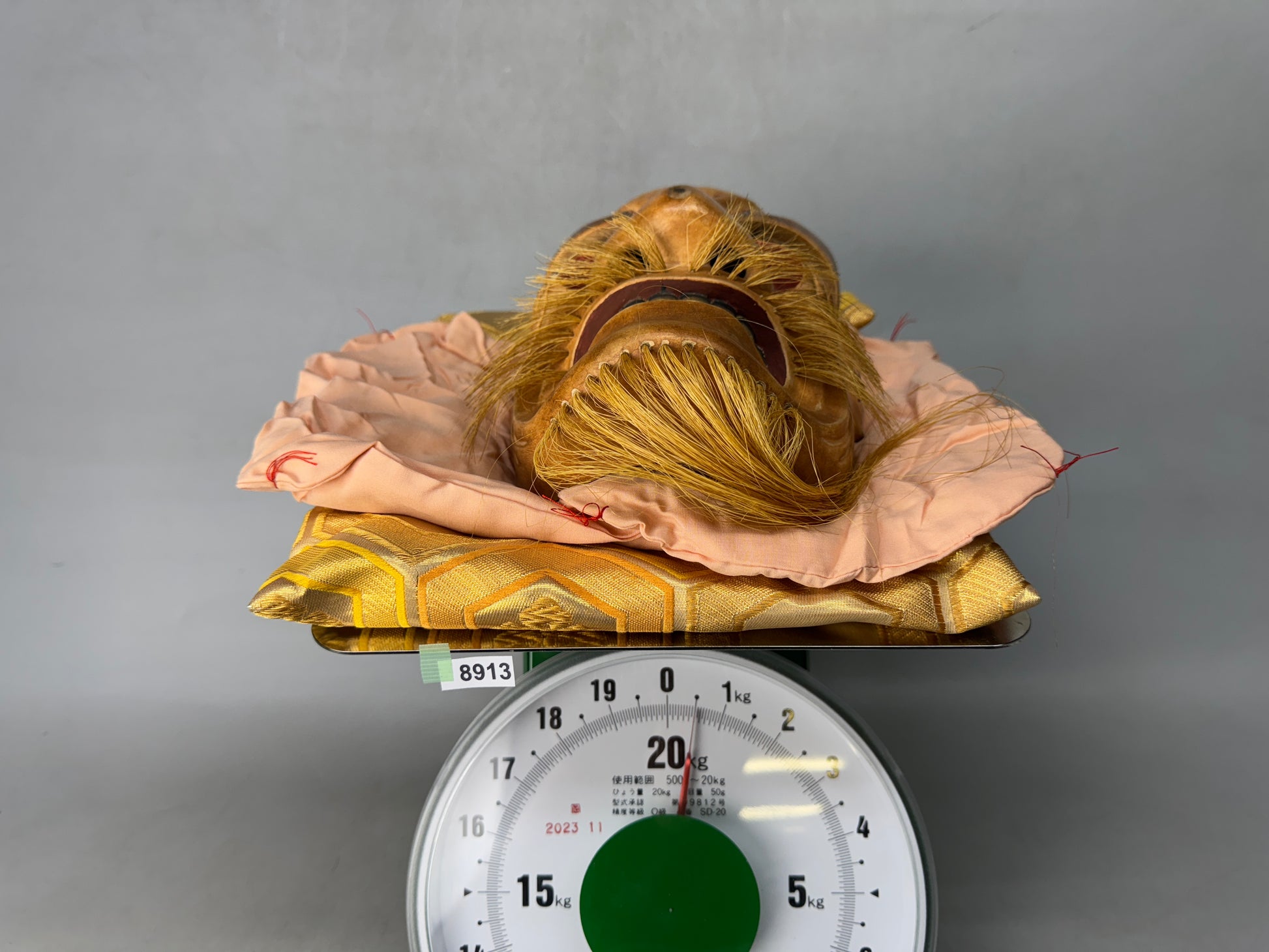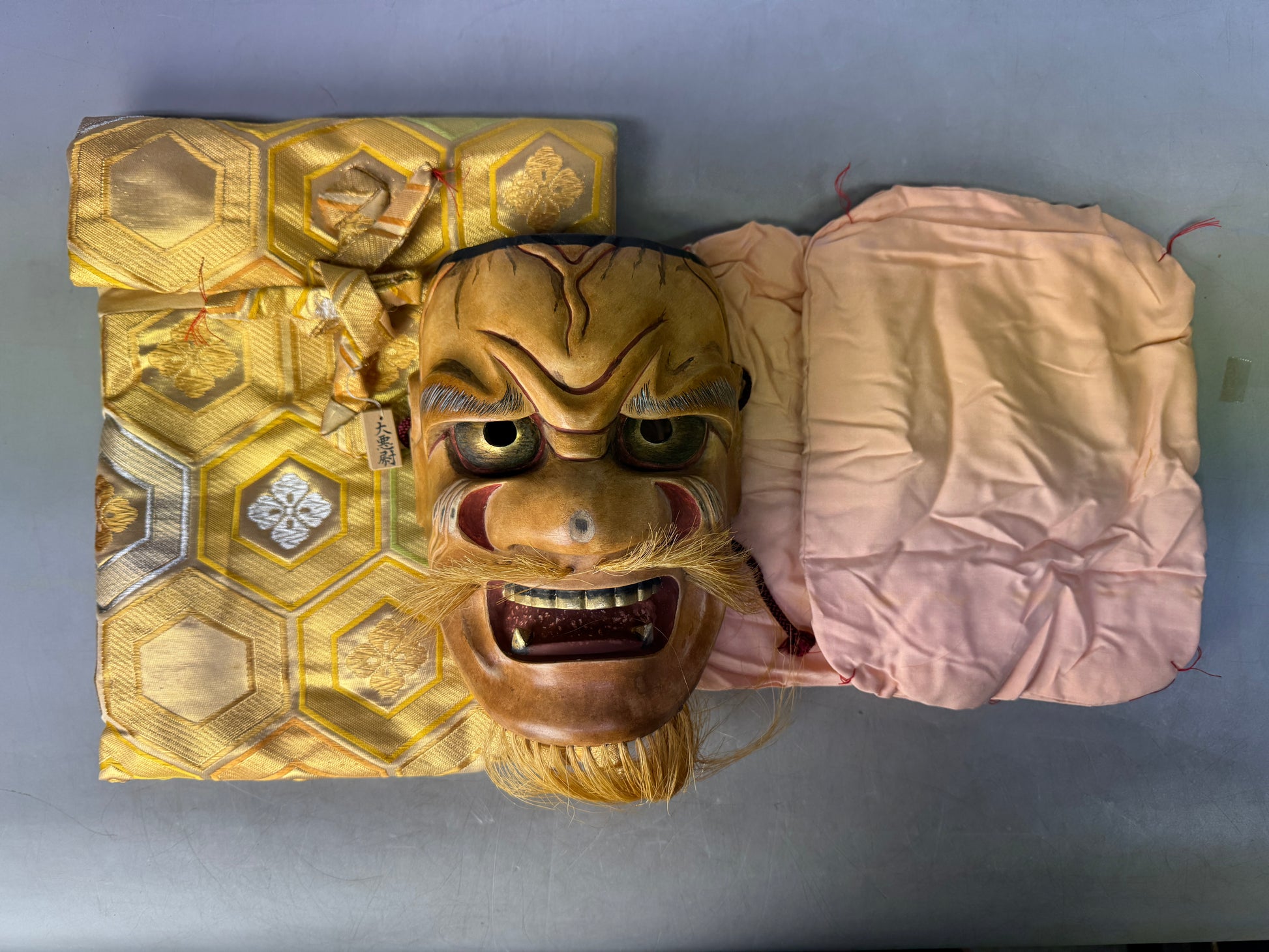 Y8913 NOH MASK wood carving Daiakujo signed Japan antique omen men dance drama