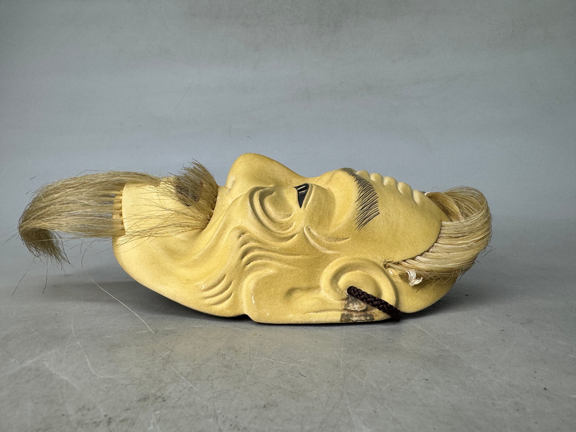 Y8915 NOH MASK wood carving Sankojo signed Japan antique omen men dance drama