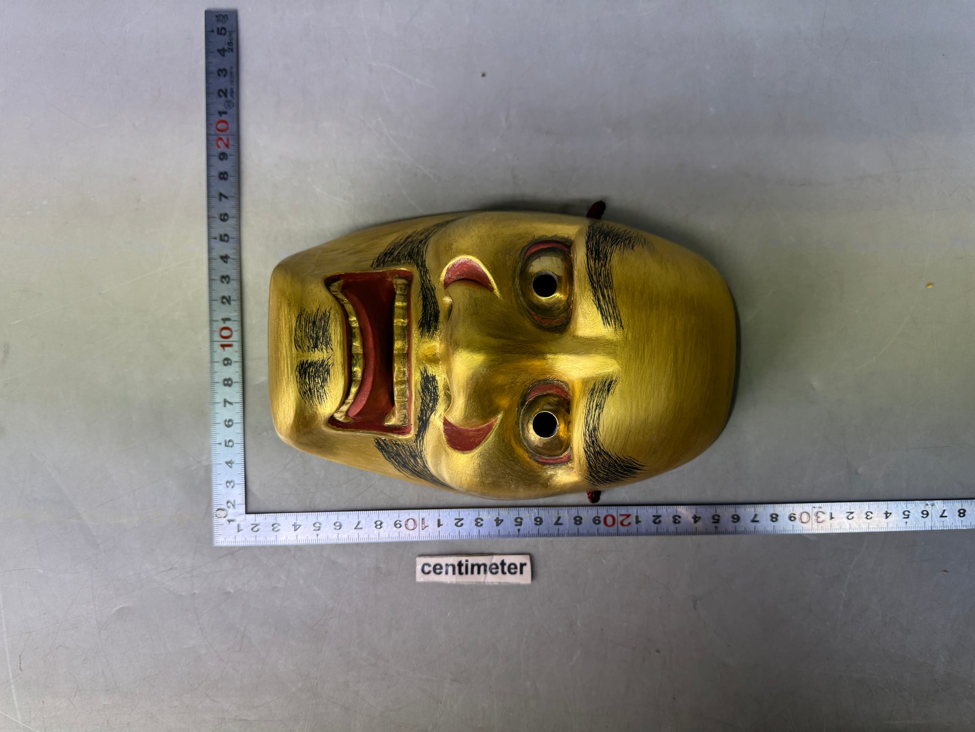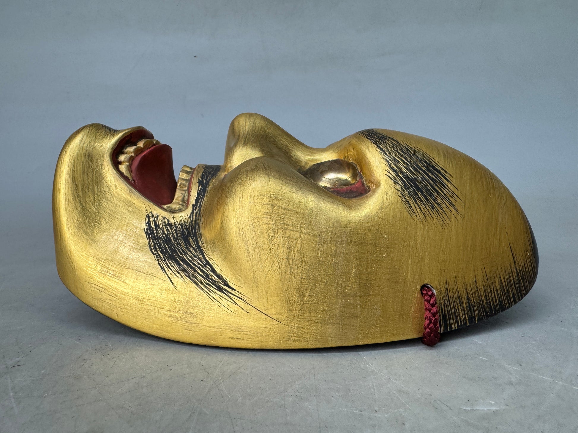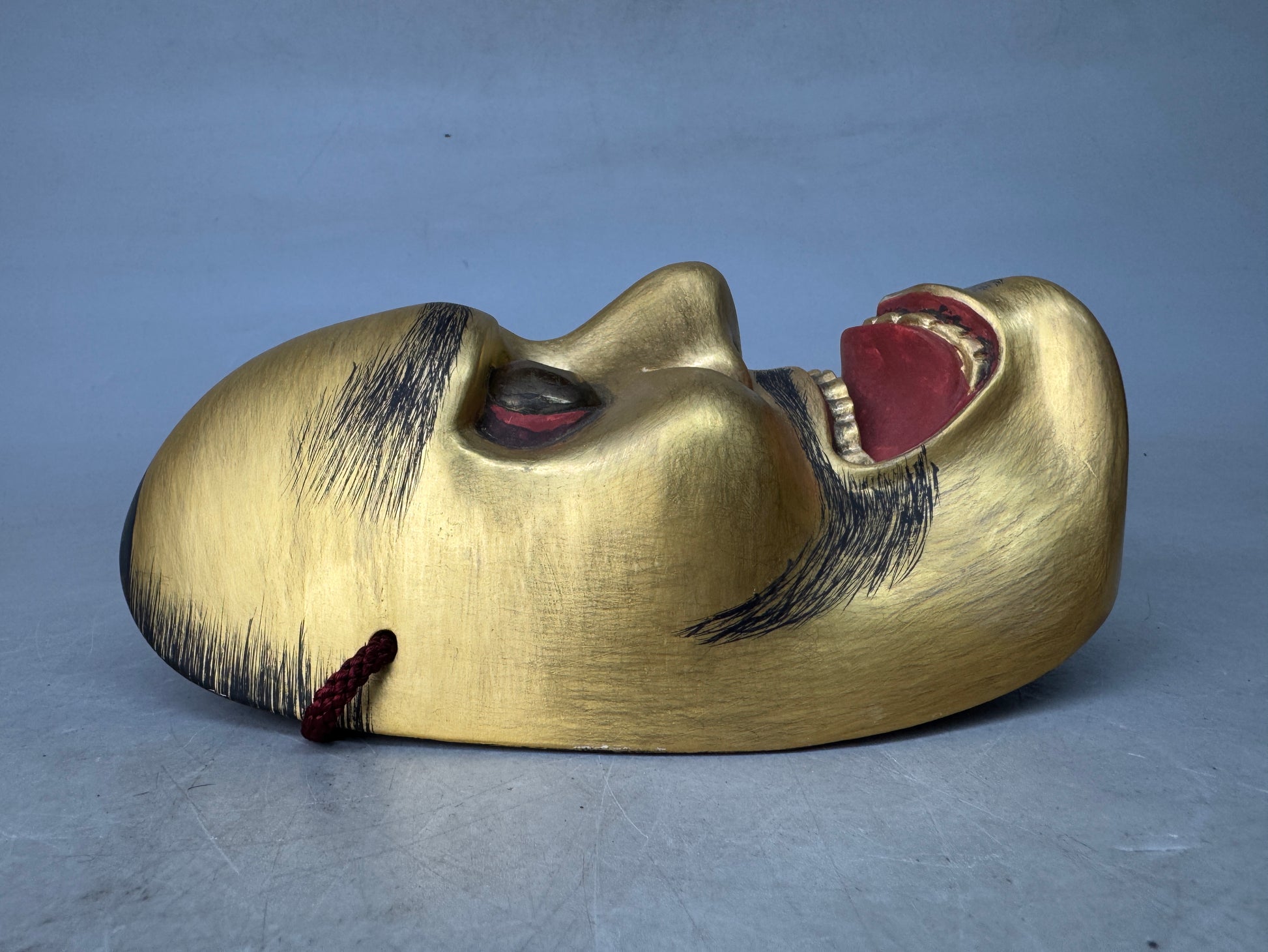 Y8916 NOH MASK wood carving Dorokurohige signed Japan antique omen dance drama