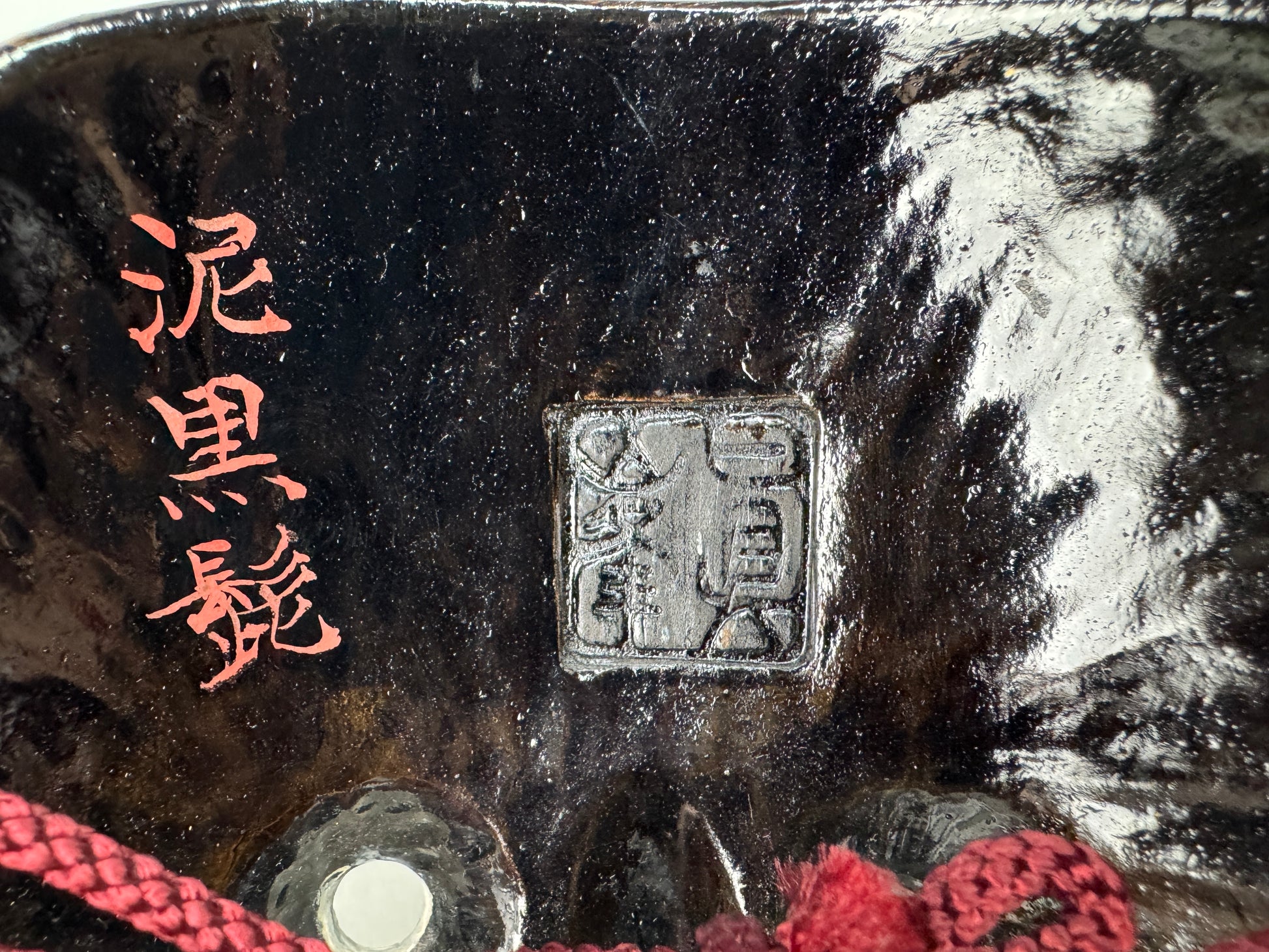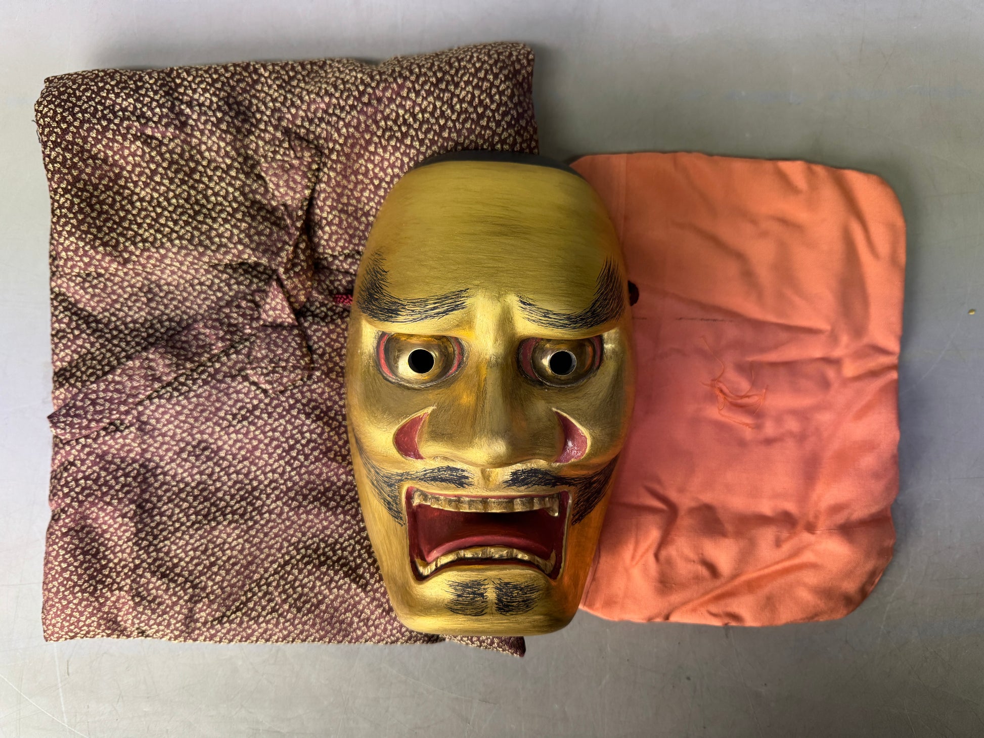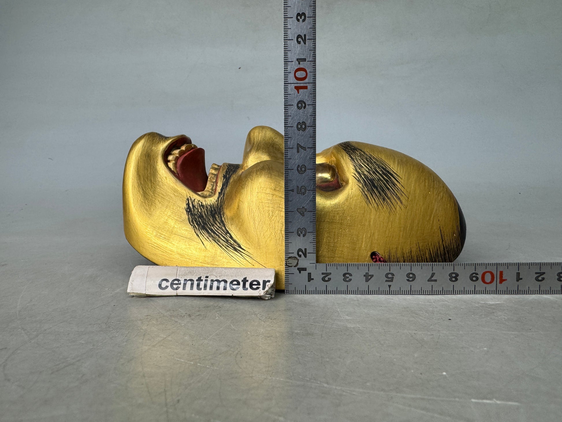 Y8916 NOH MASK wood carving Dorokurohige signed Japan antique omen dance drama