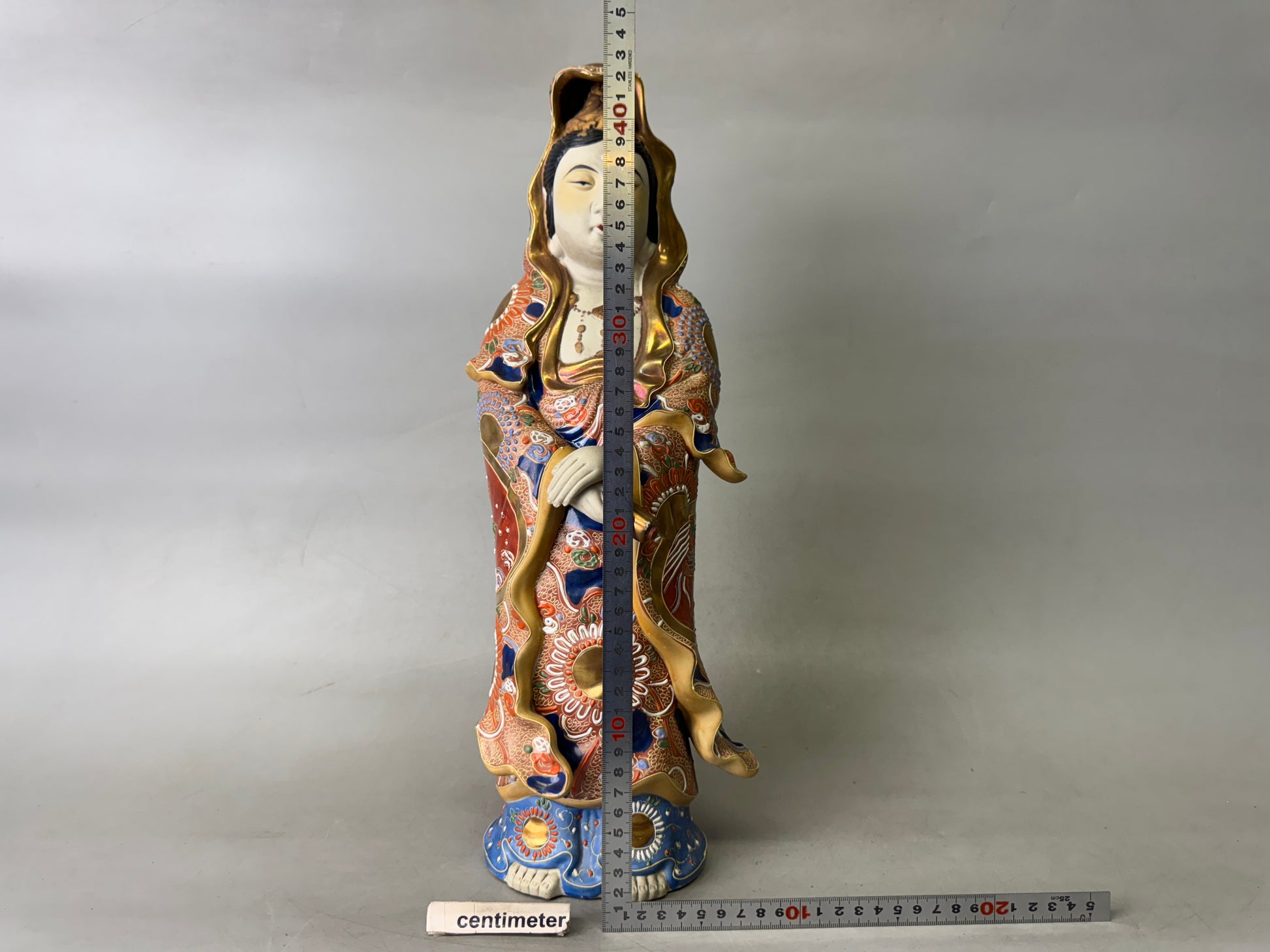 STATUE Kutani-ware Kannon Bodhisattva figurine signed
