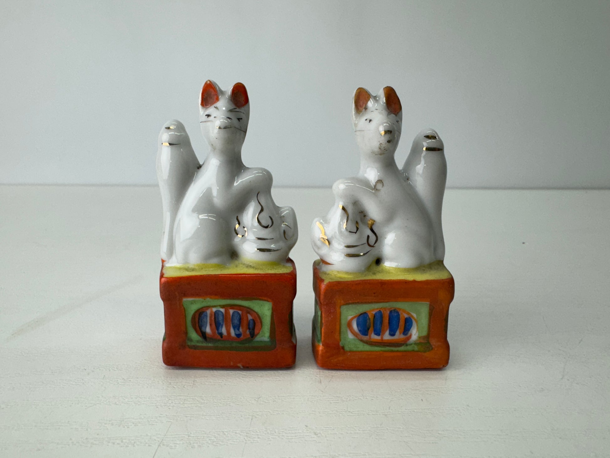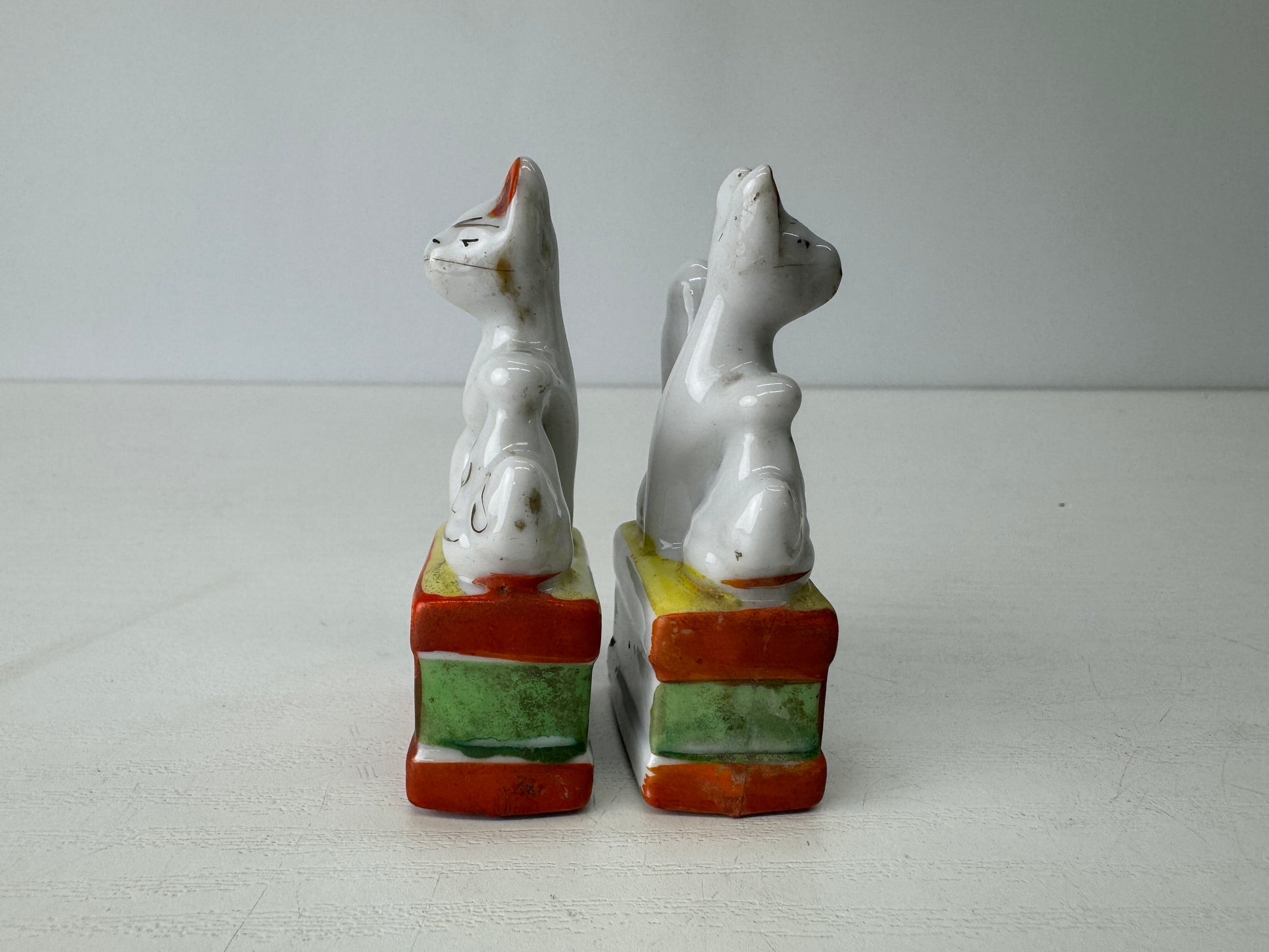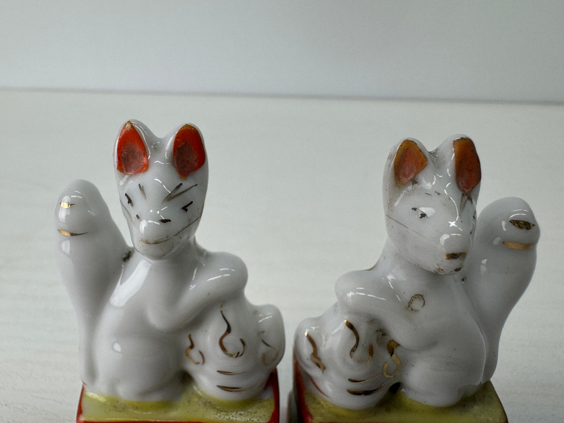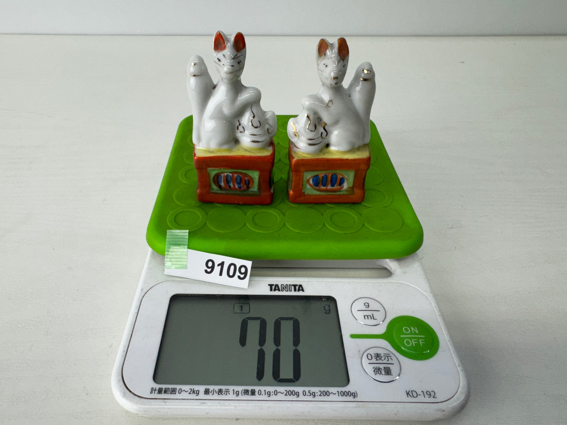 Y9109 OKIMONO Ceramic small Inari Fox figurine Buddhist art Japan antique decor