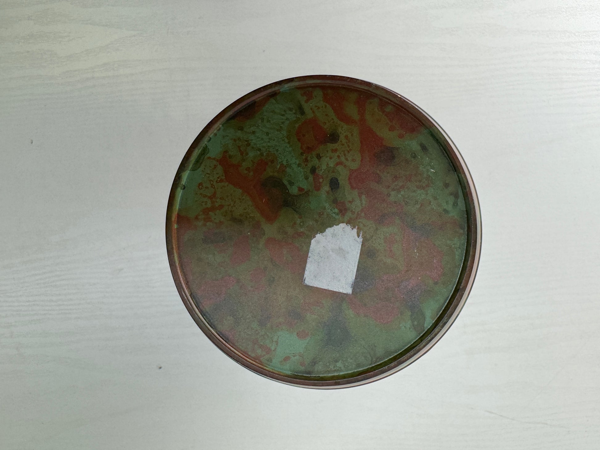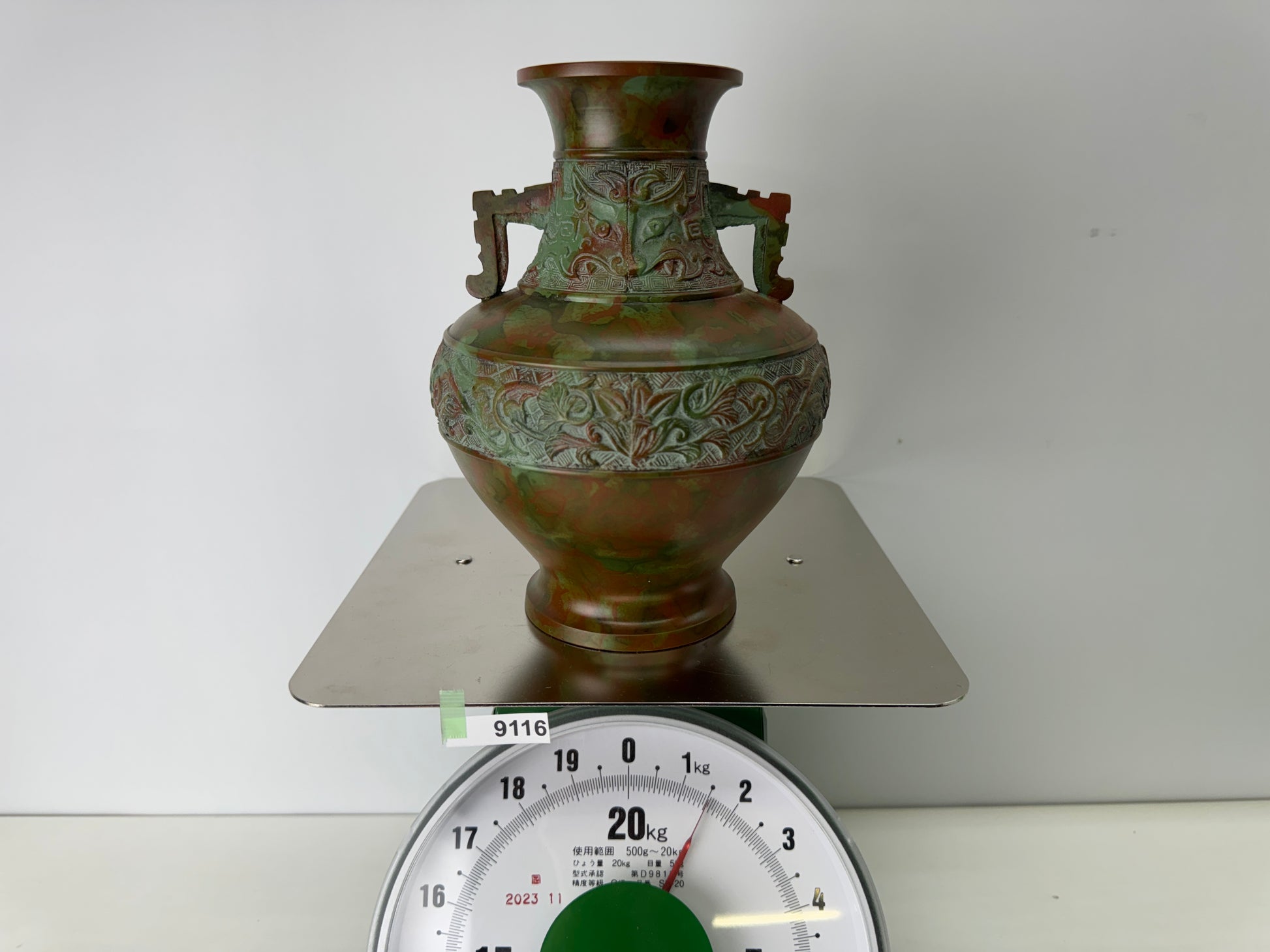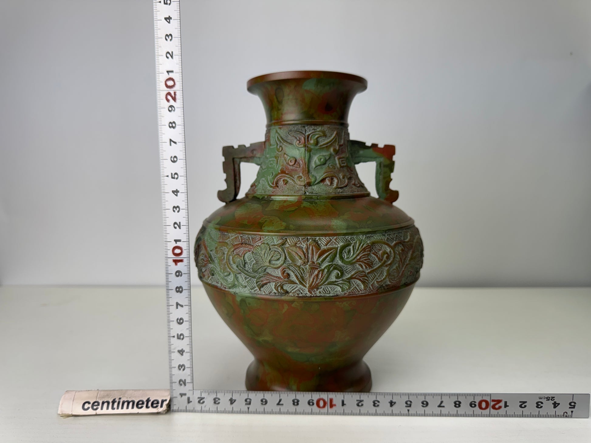 Y9116 FLOWER VASE metal Taotie motif Murashido Japan ikebana floral arrangement