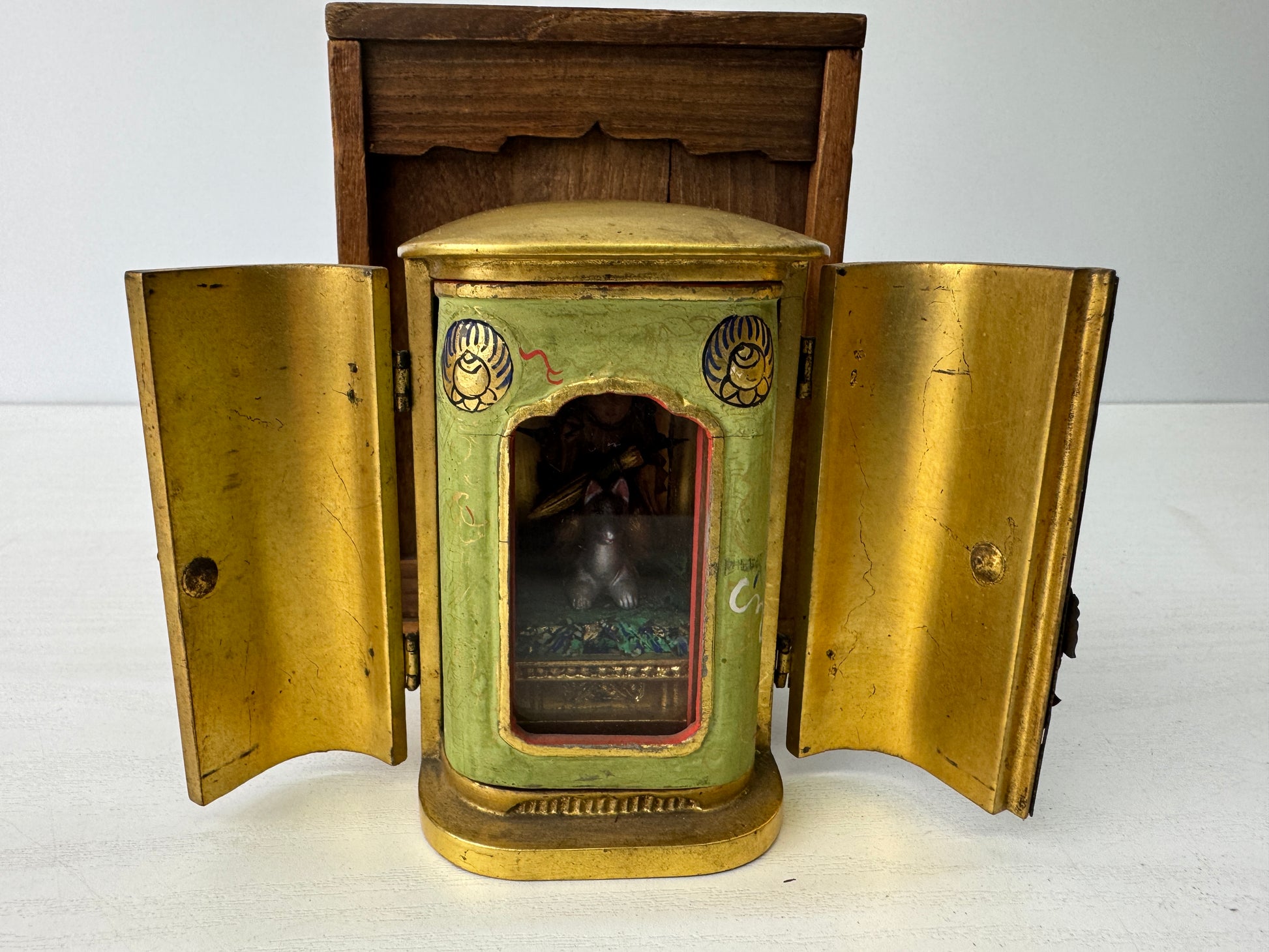 STATUE Dakiniten goddess figure shrine Inari fox wooden box