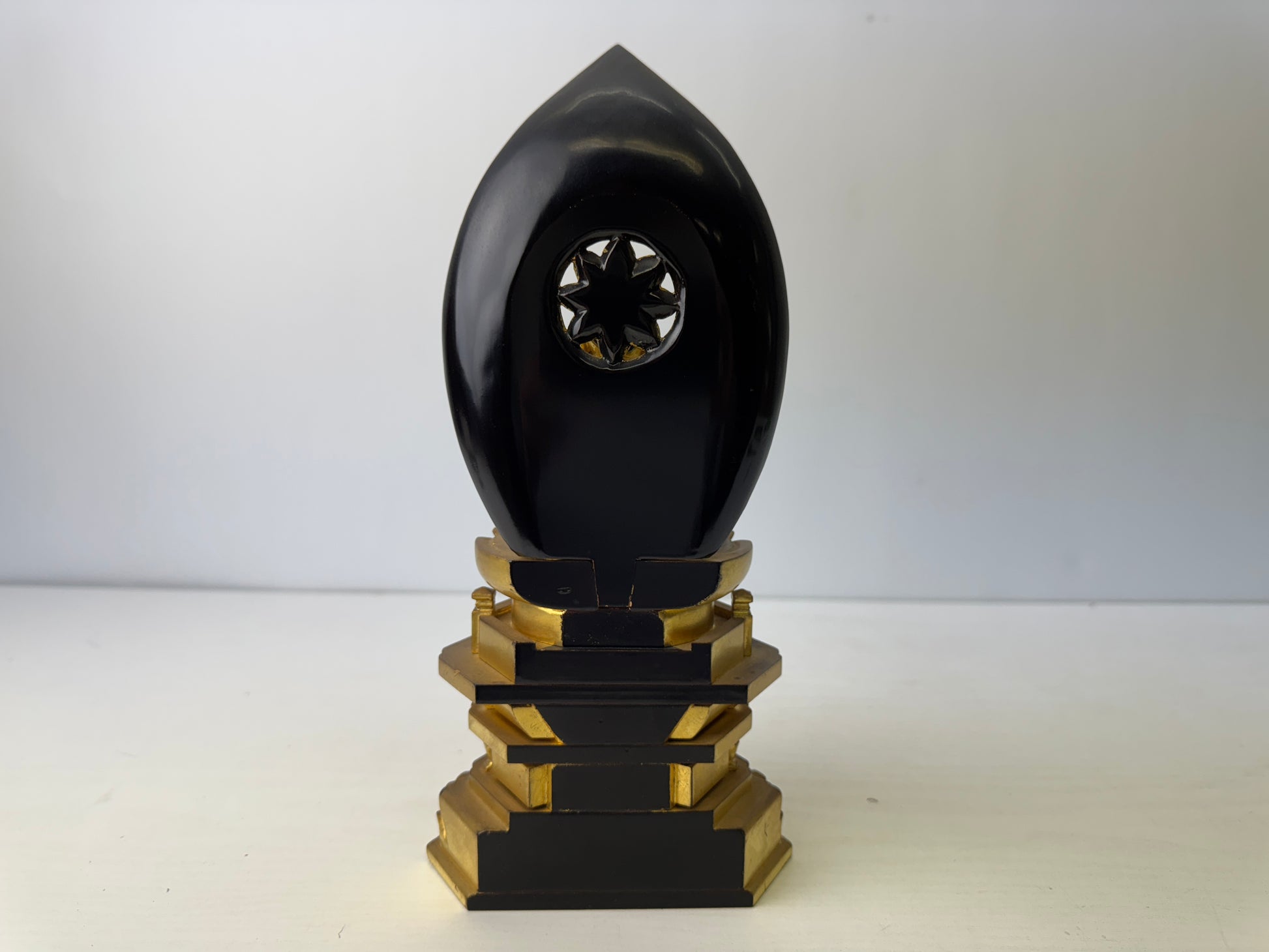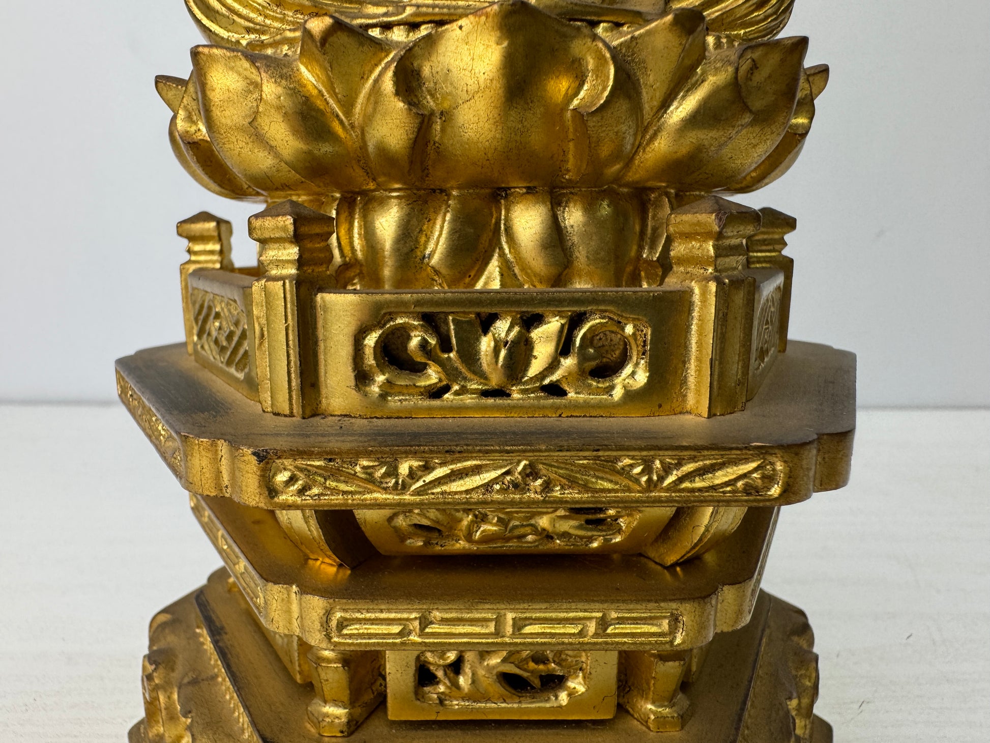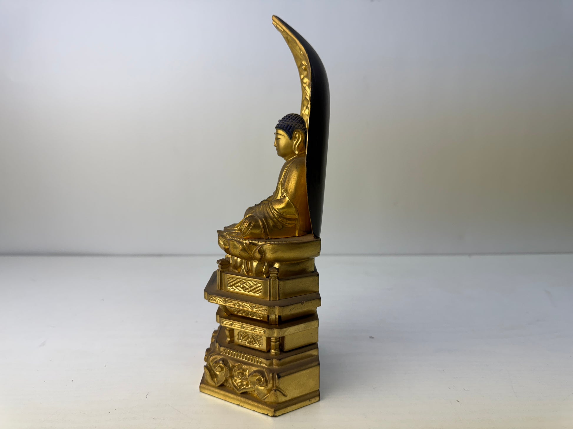 STATUE Buddha figurine seated Amida wood carving gold leaf