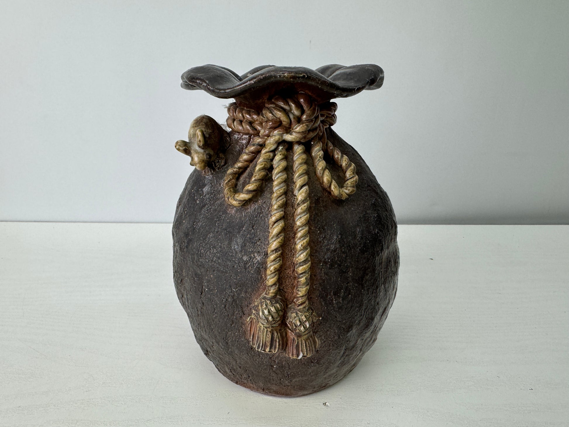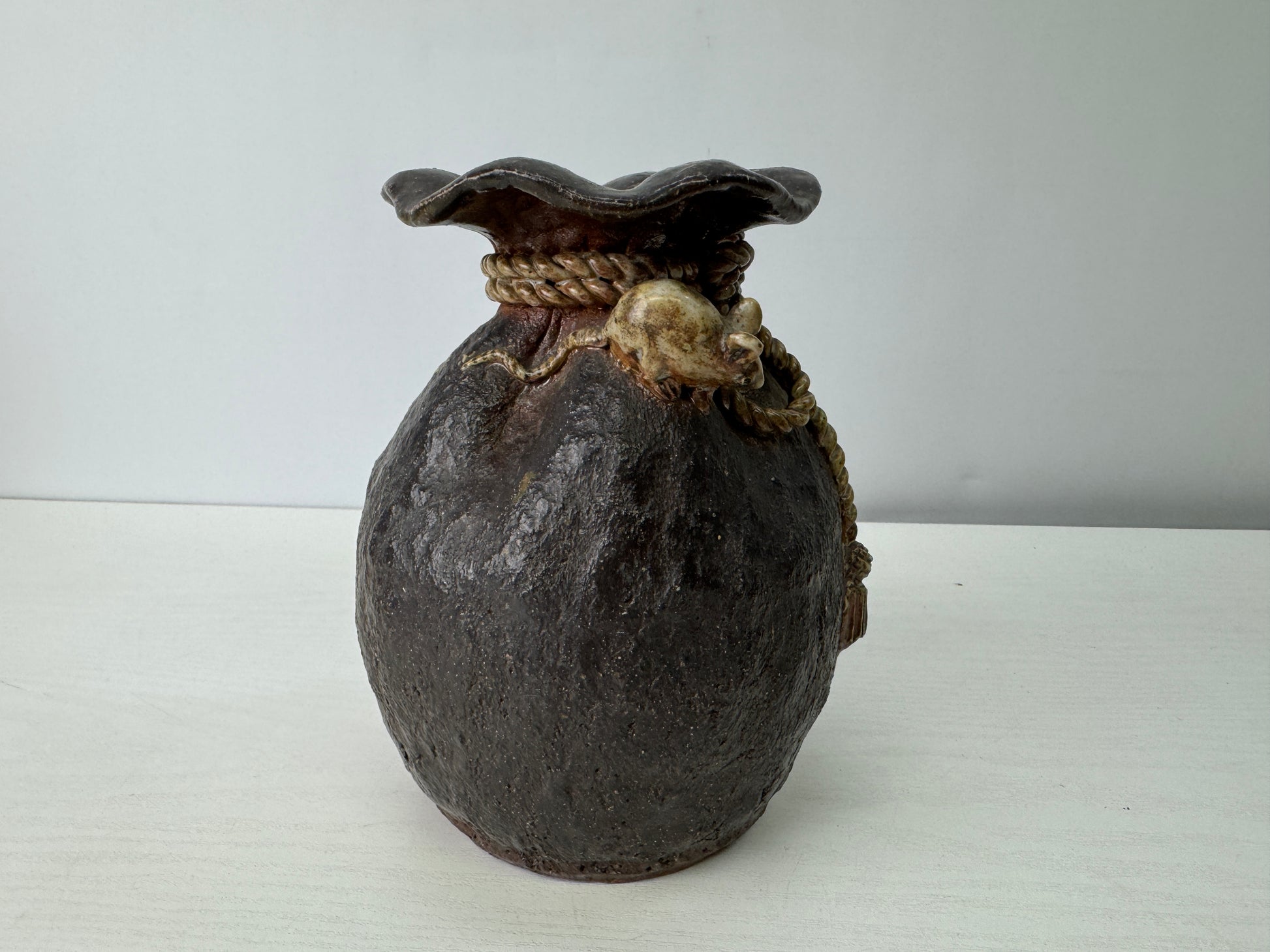 Y9274 FLOWER VASE Seto-ware signed Japan ikebana floral arrangement interior