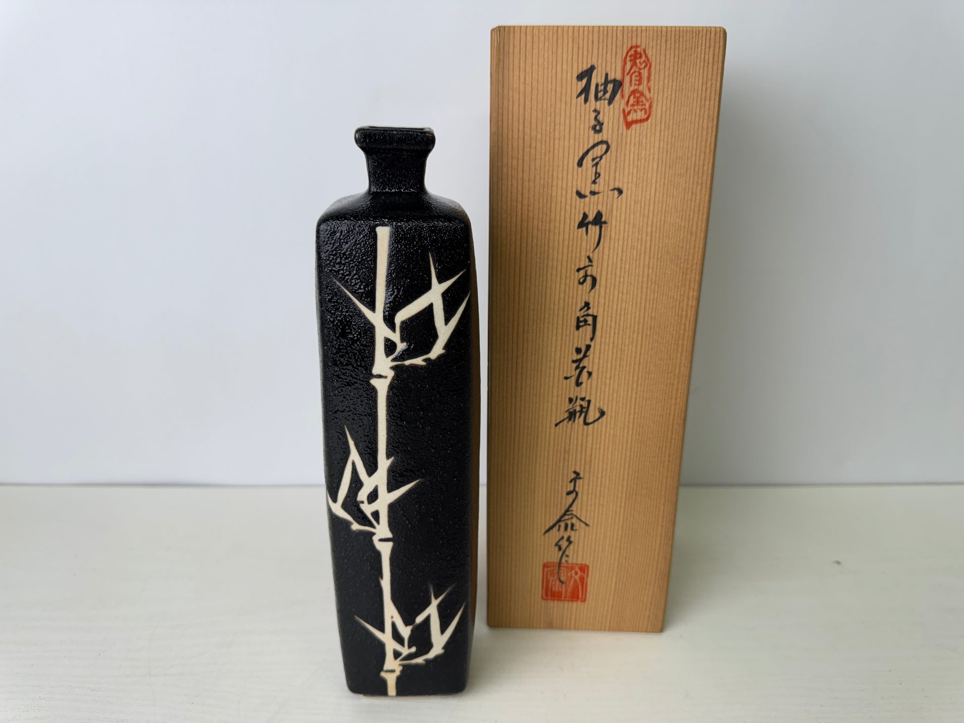 FLOWER VASE Seto-ware signed box
