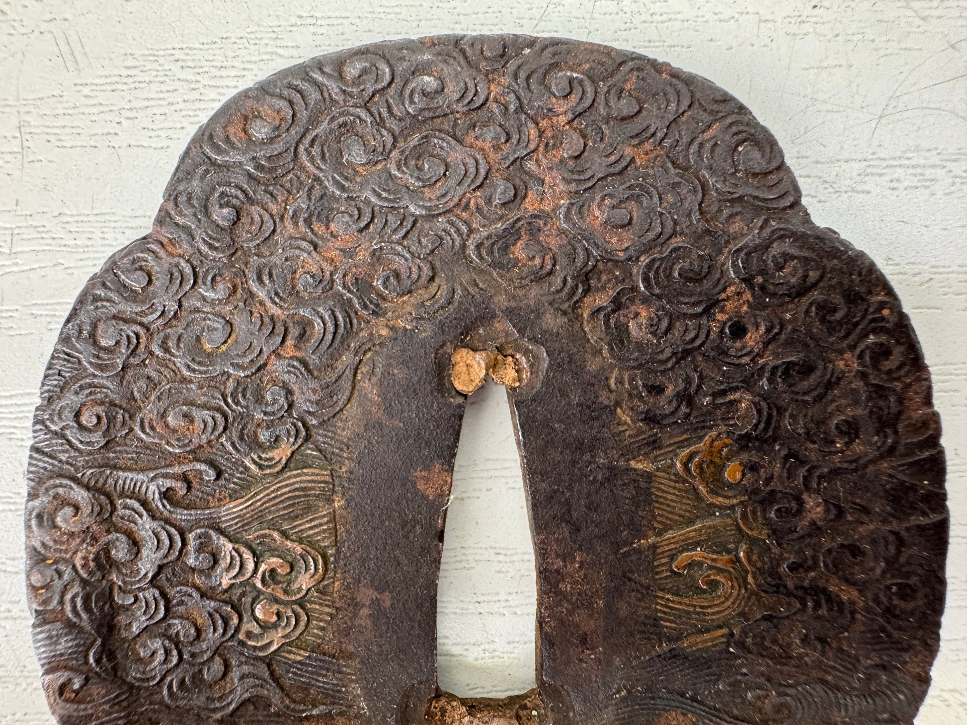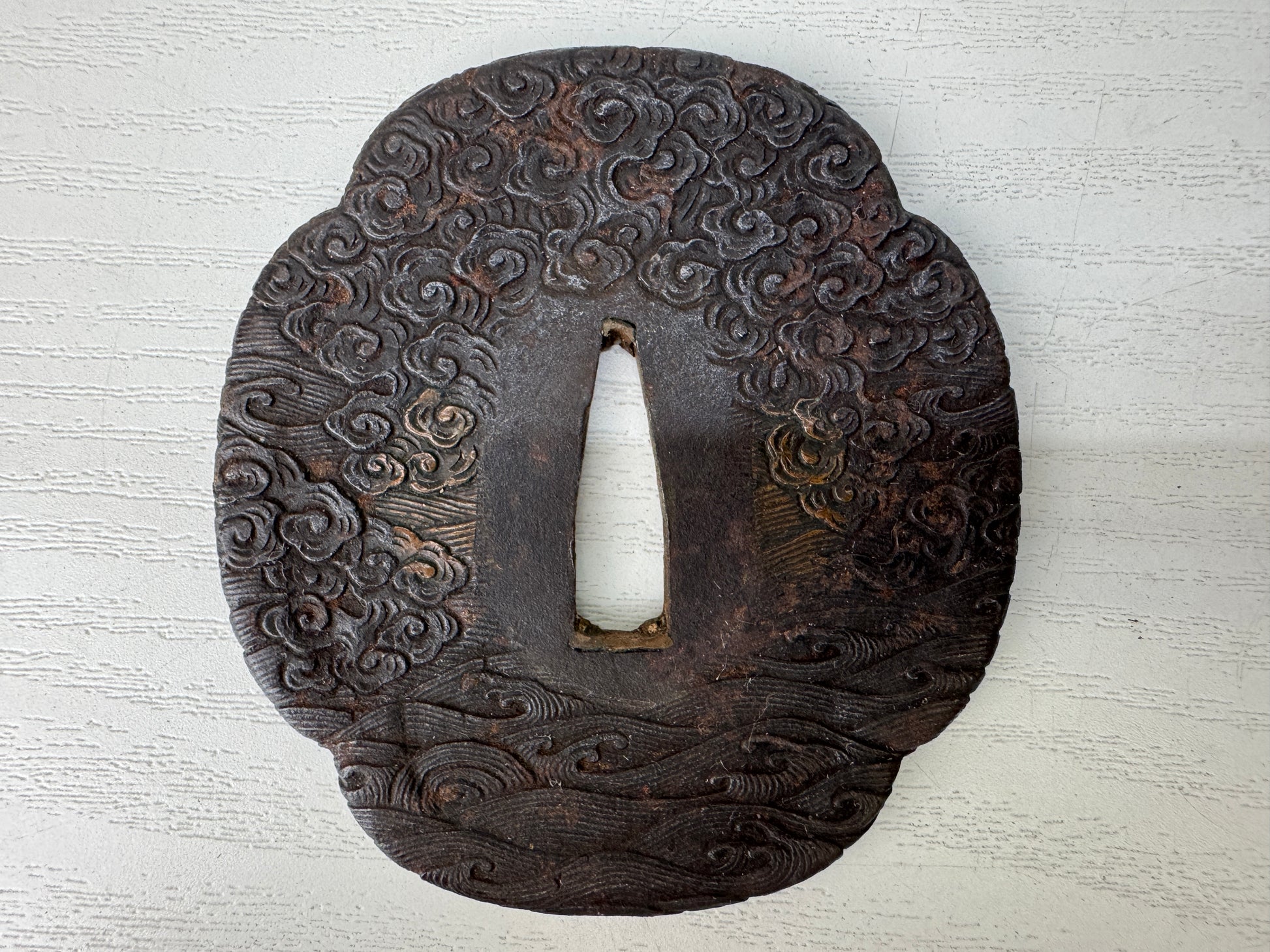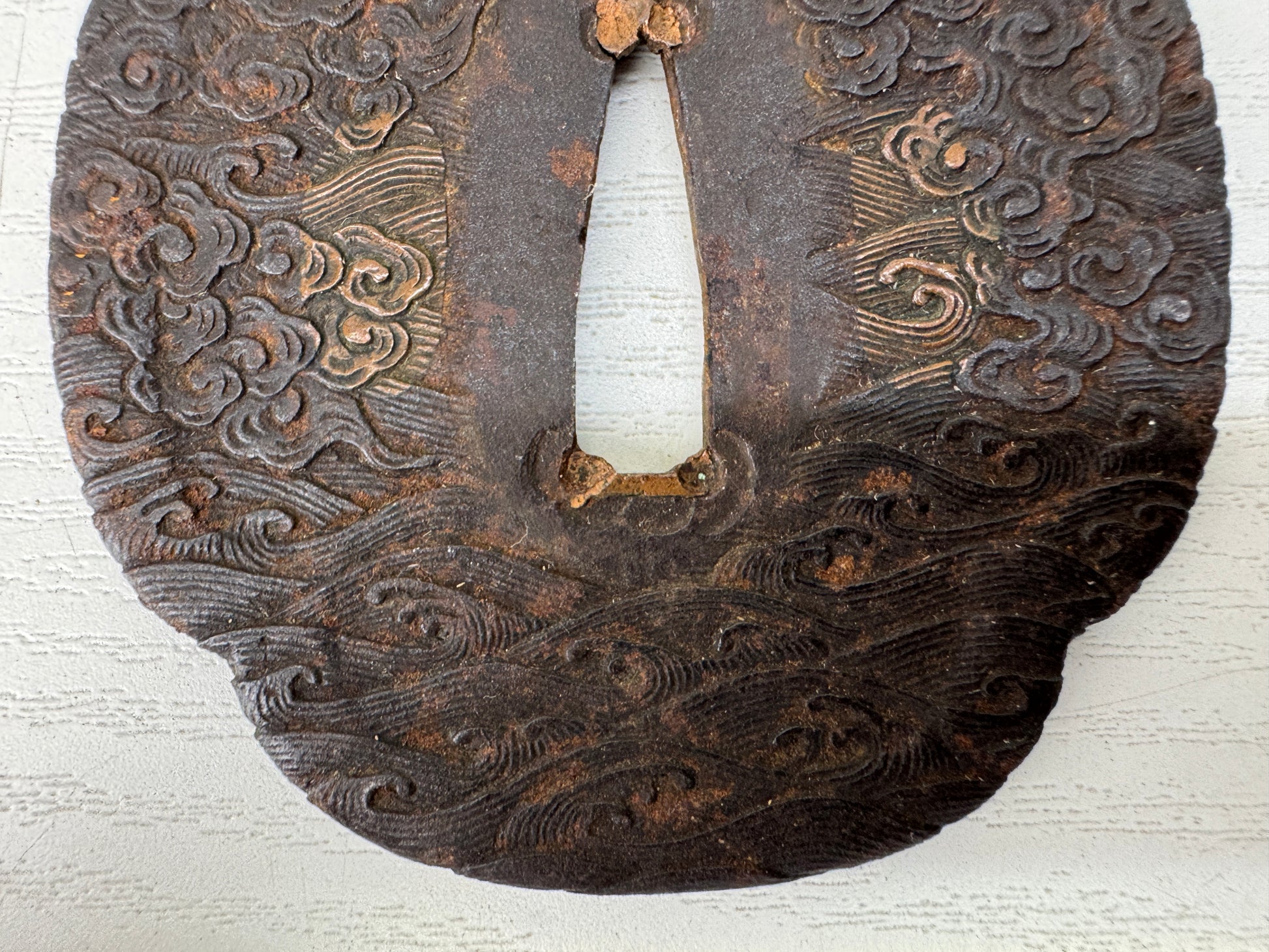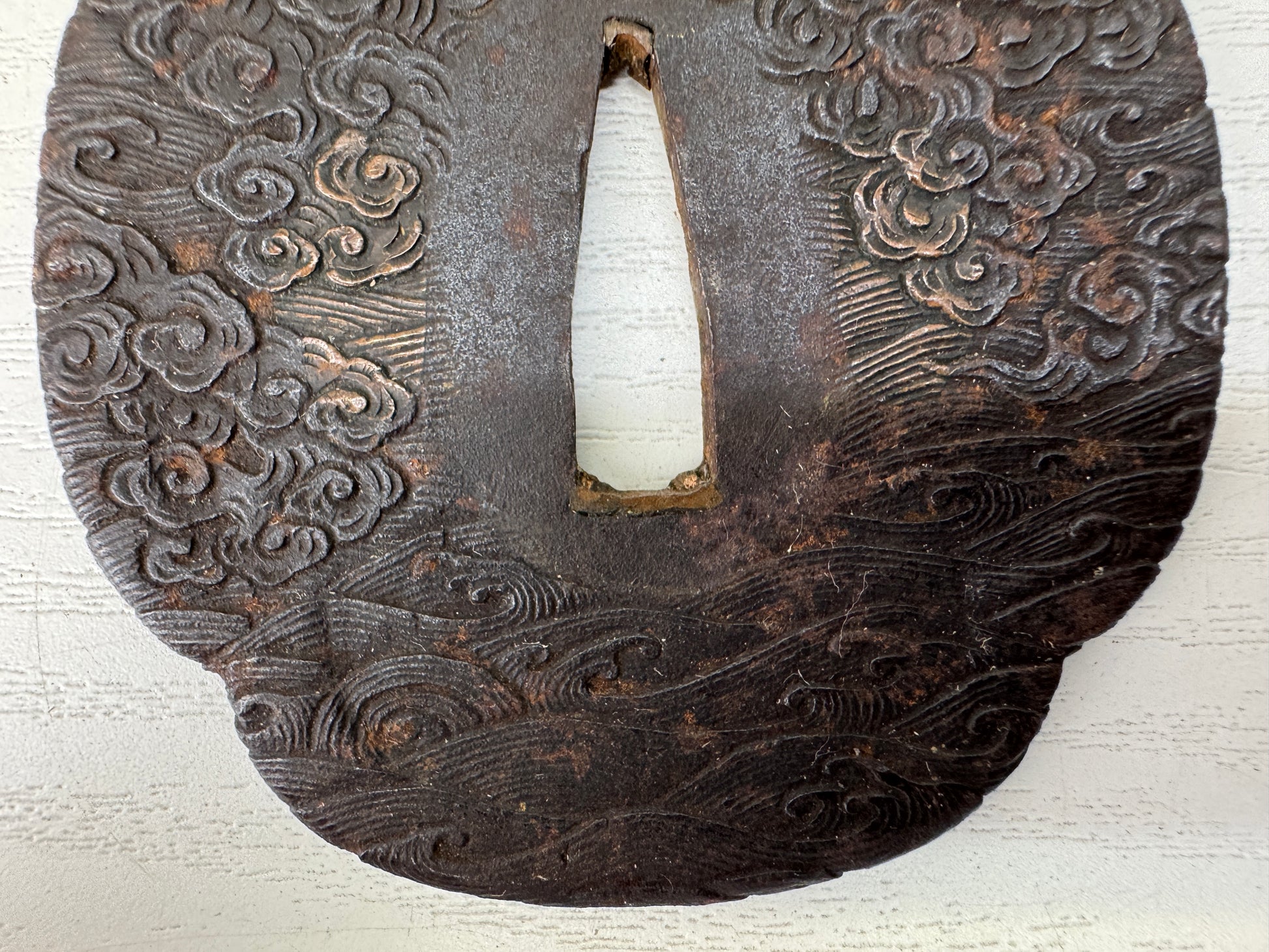 Y9358 TSUBA Iron sword guard wave cloud Japan samurai katana antique koshirae