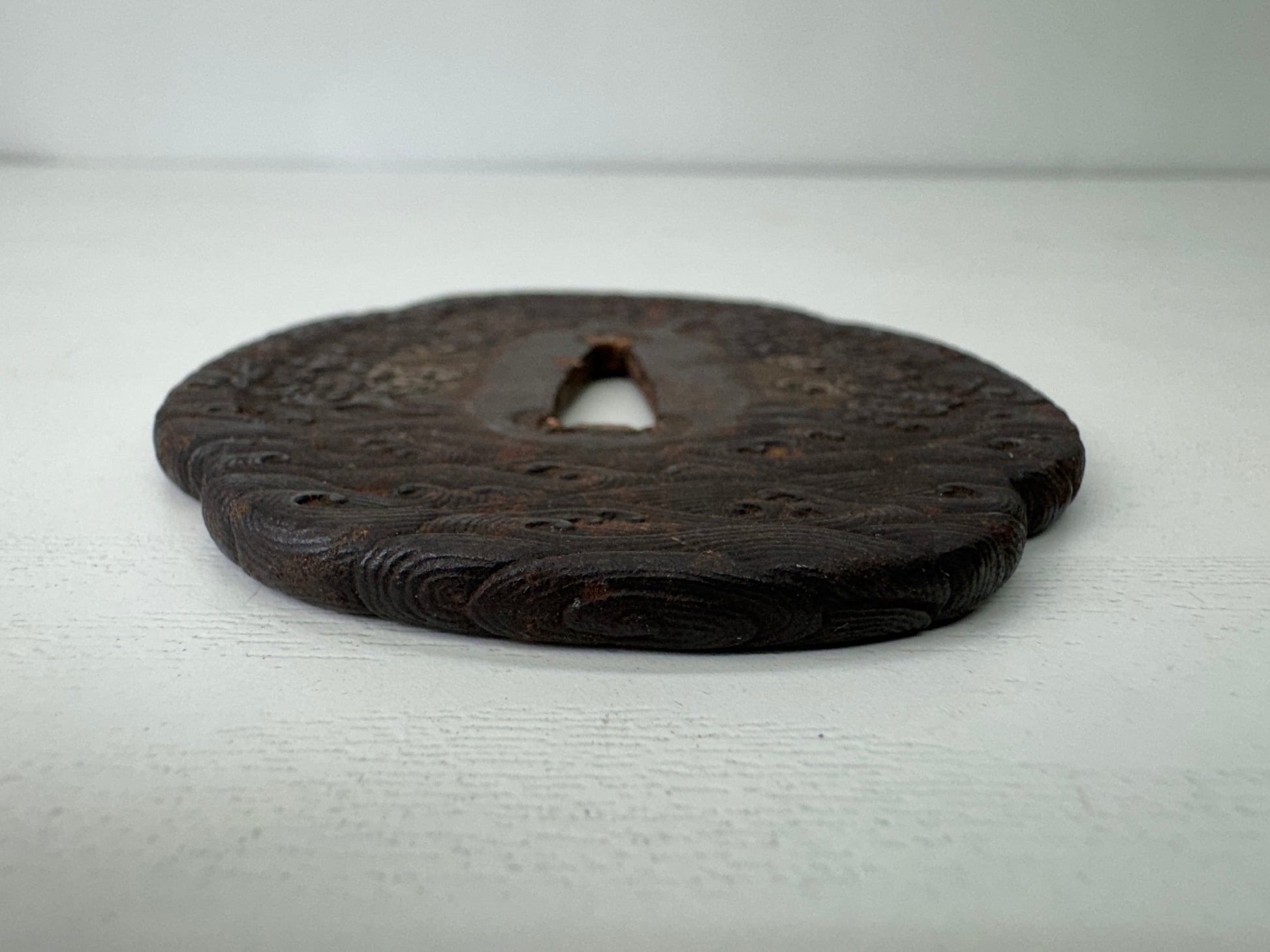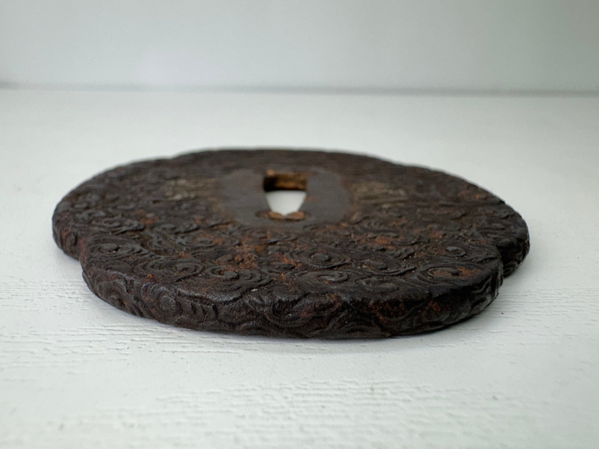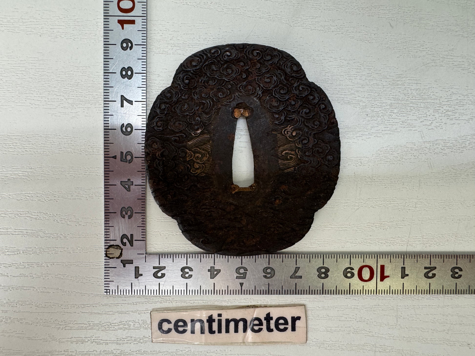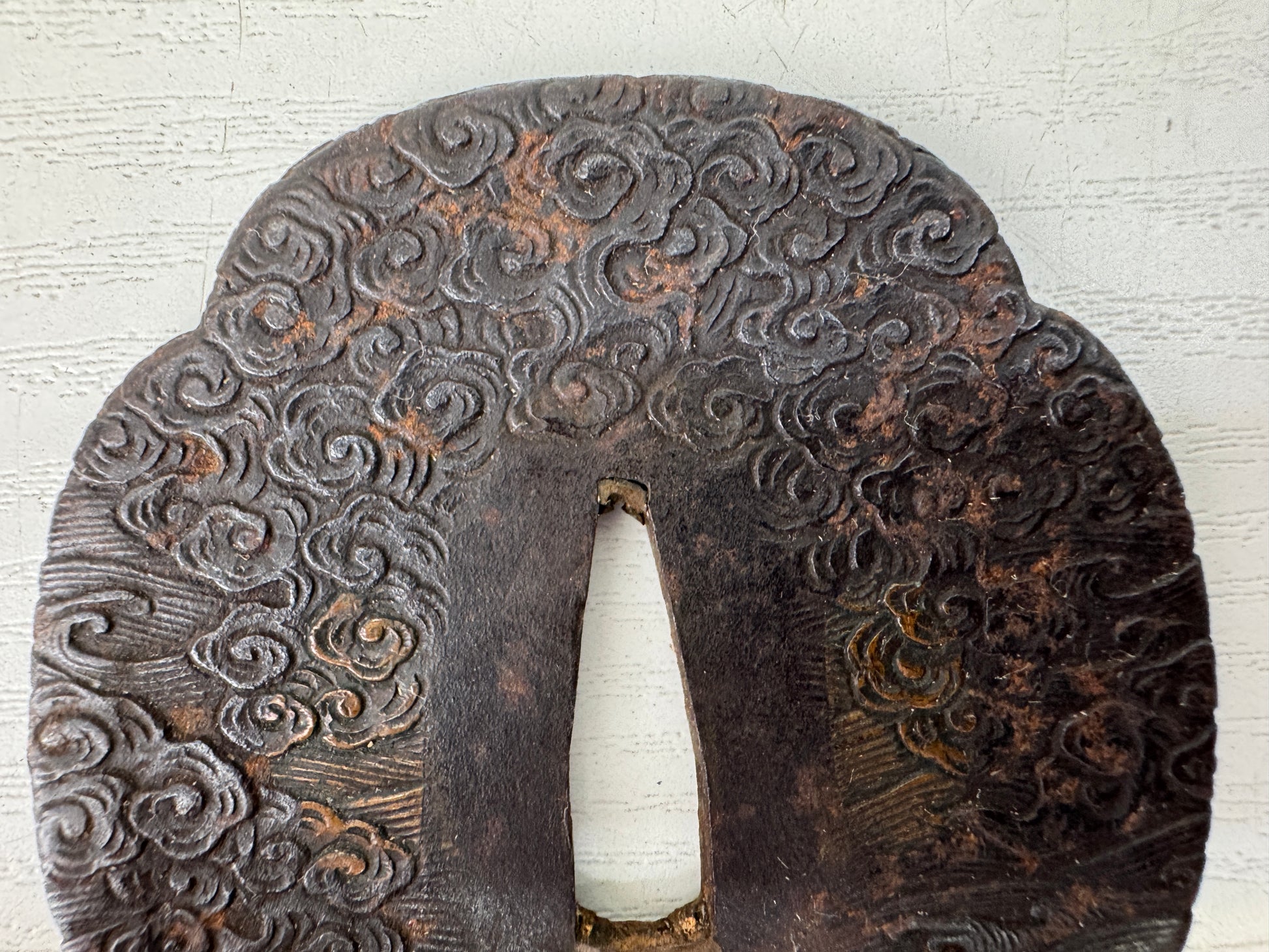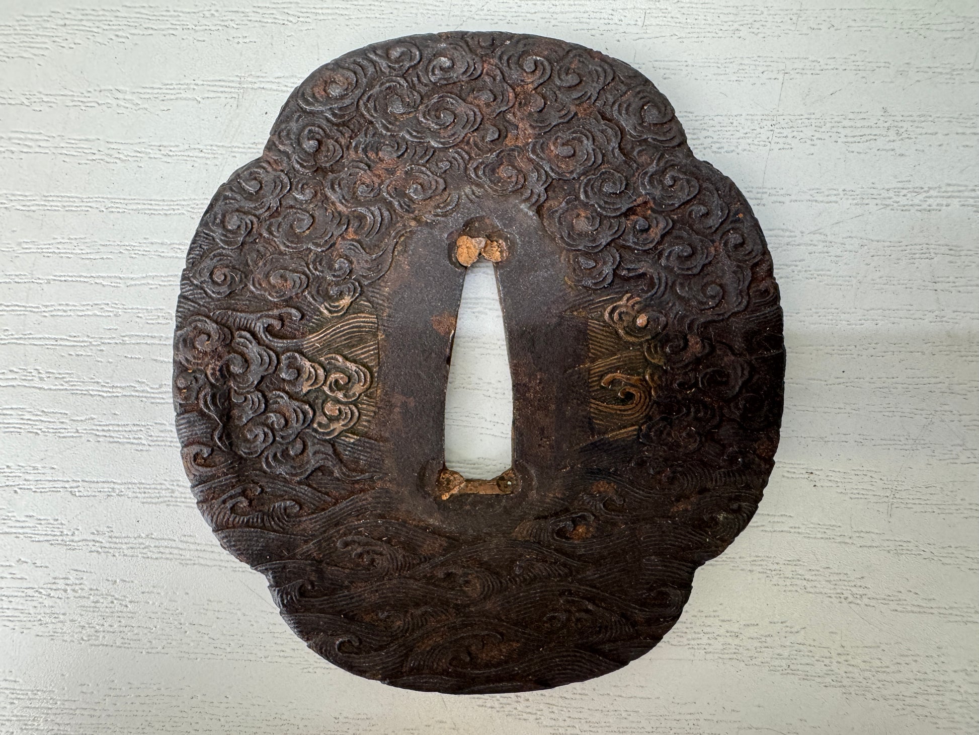 Y9358 TSUBA Iron sword guard wave cloud Japan samurai katana antique koshirae
