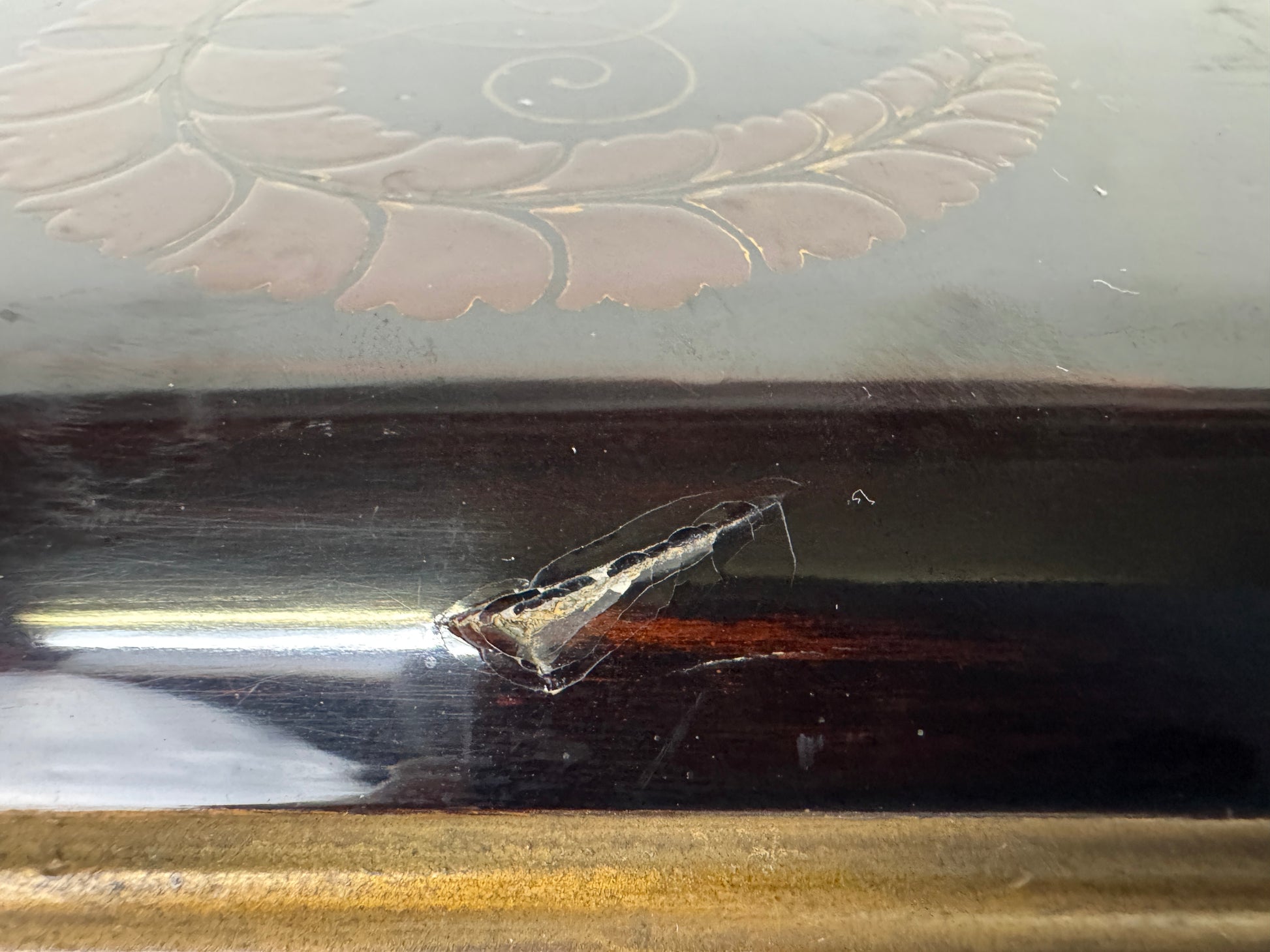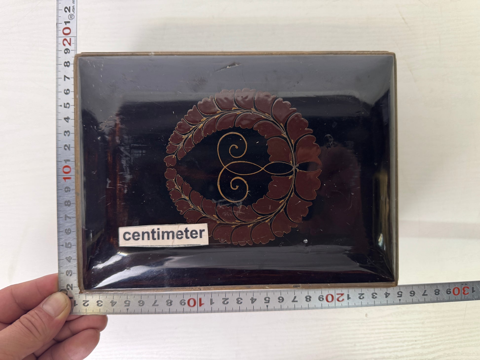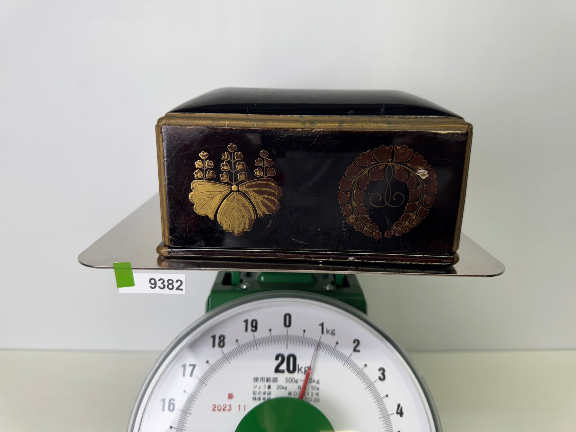 Y9382 BOX Lacquered Sutra book case family crest Japan antique container storage