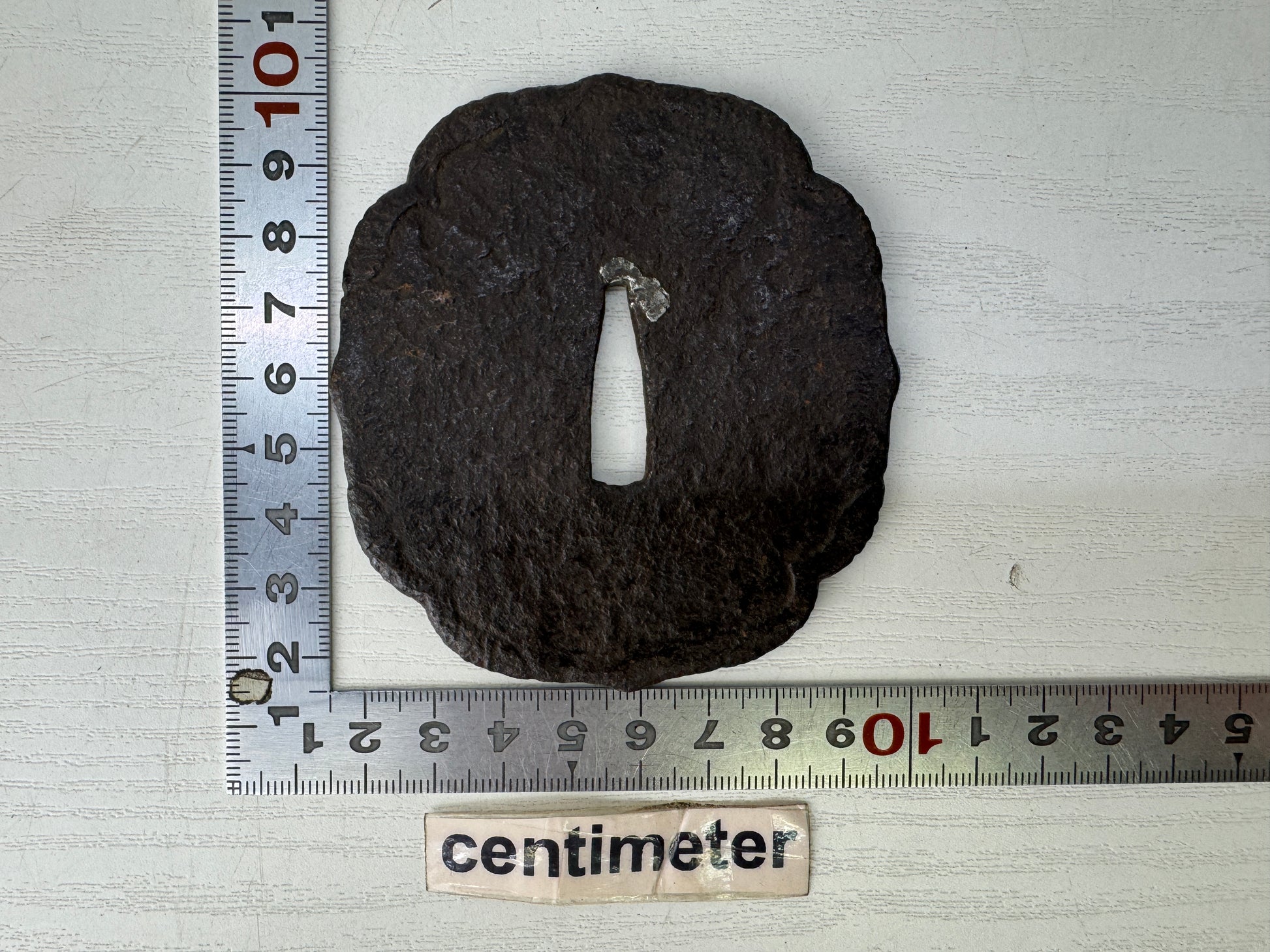 Y9449 TSUBA Iron sword guard Japan samurai katana antique koshirae edo bushi