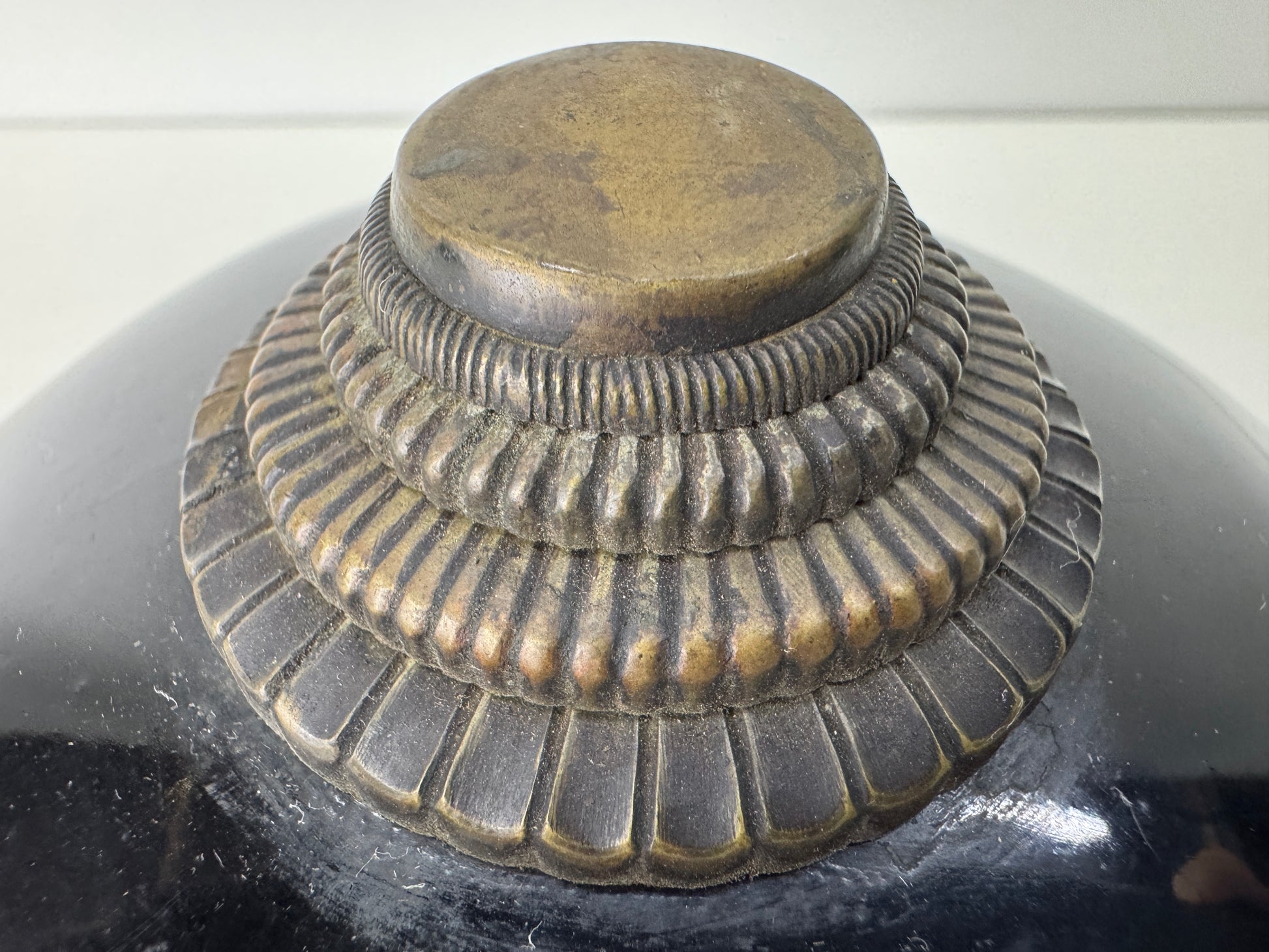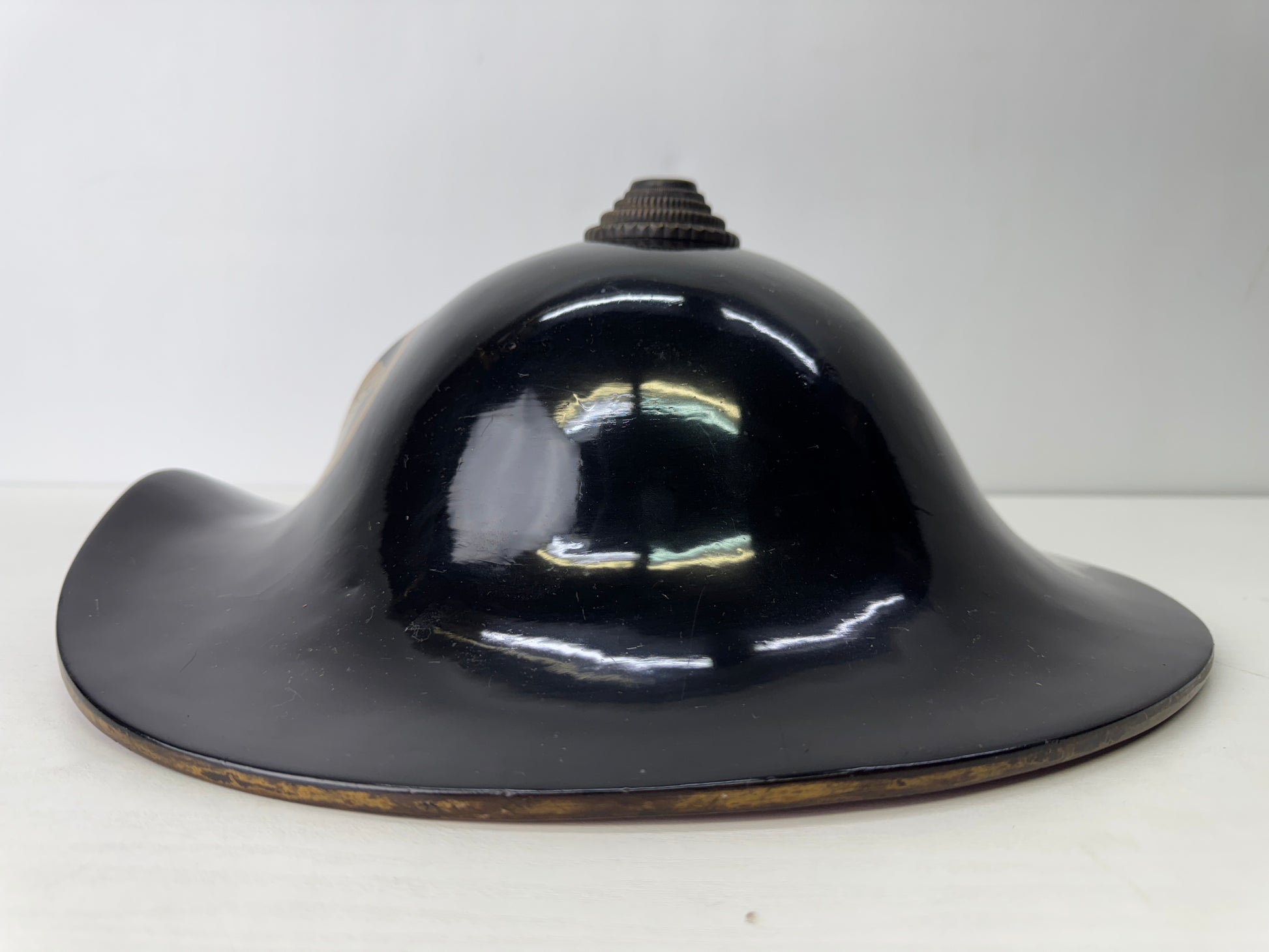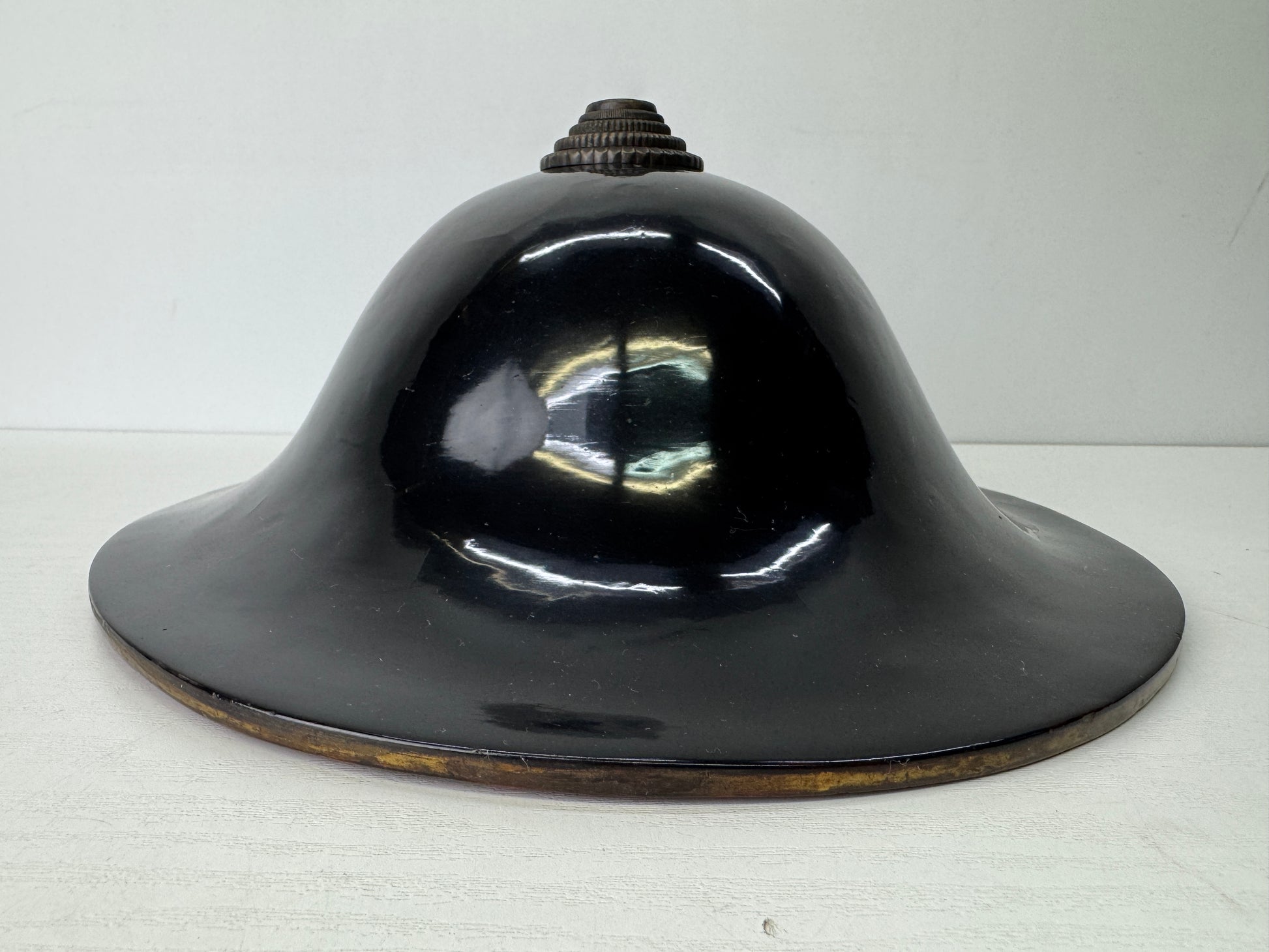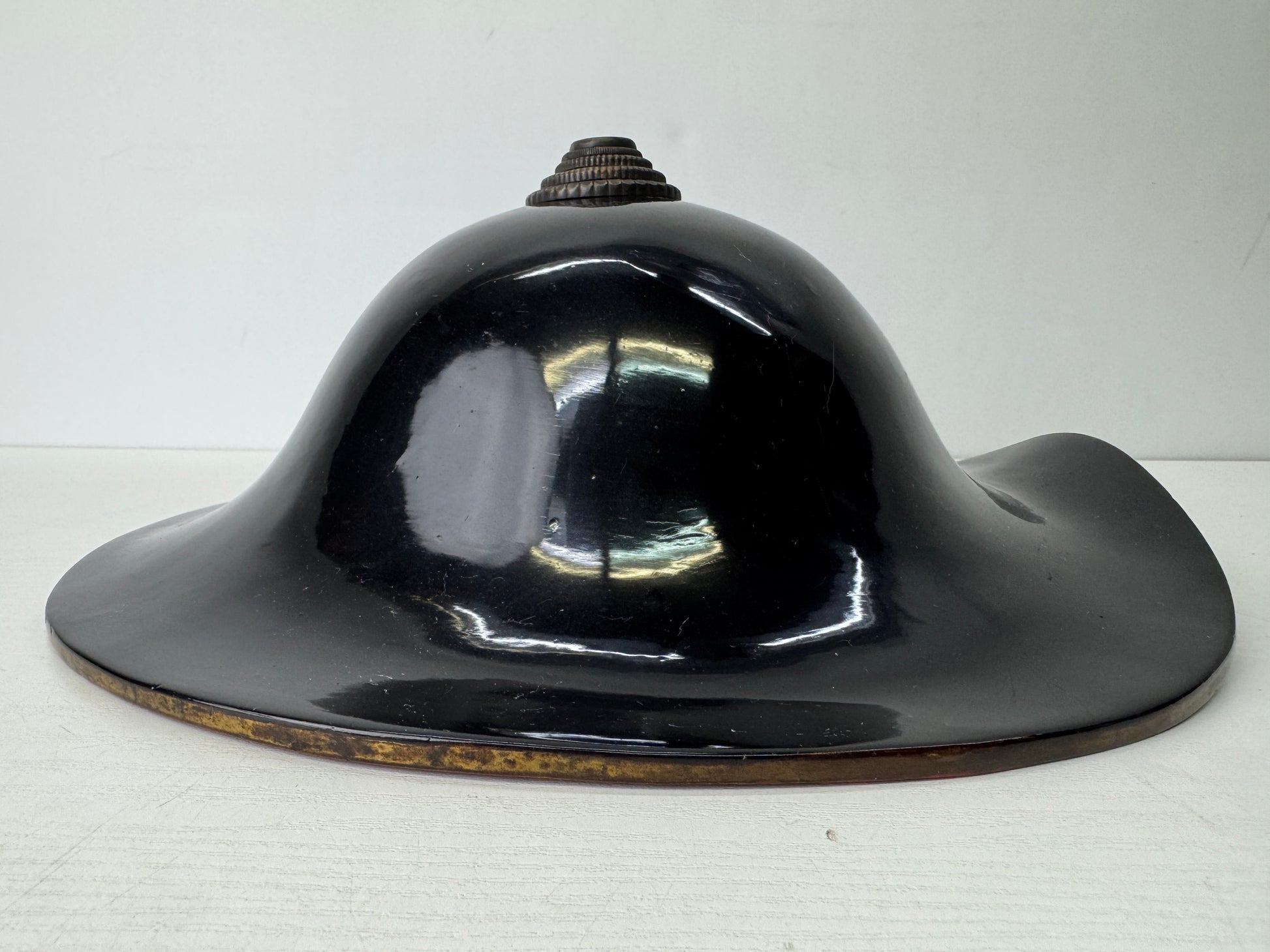 Y9453 JINGASA Black lacquer family crest Japan antique samurai hat yoroi helmet