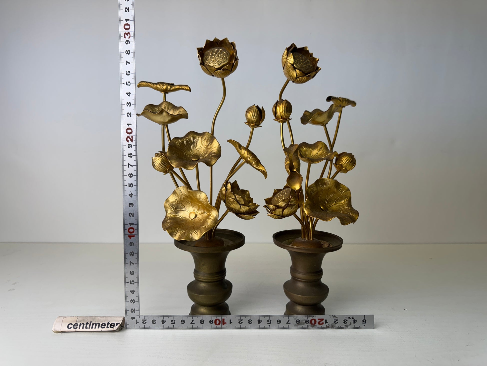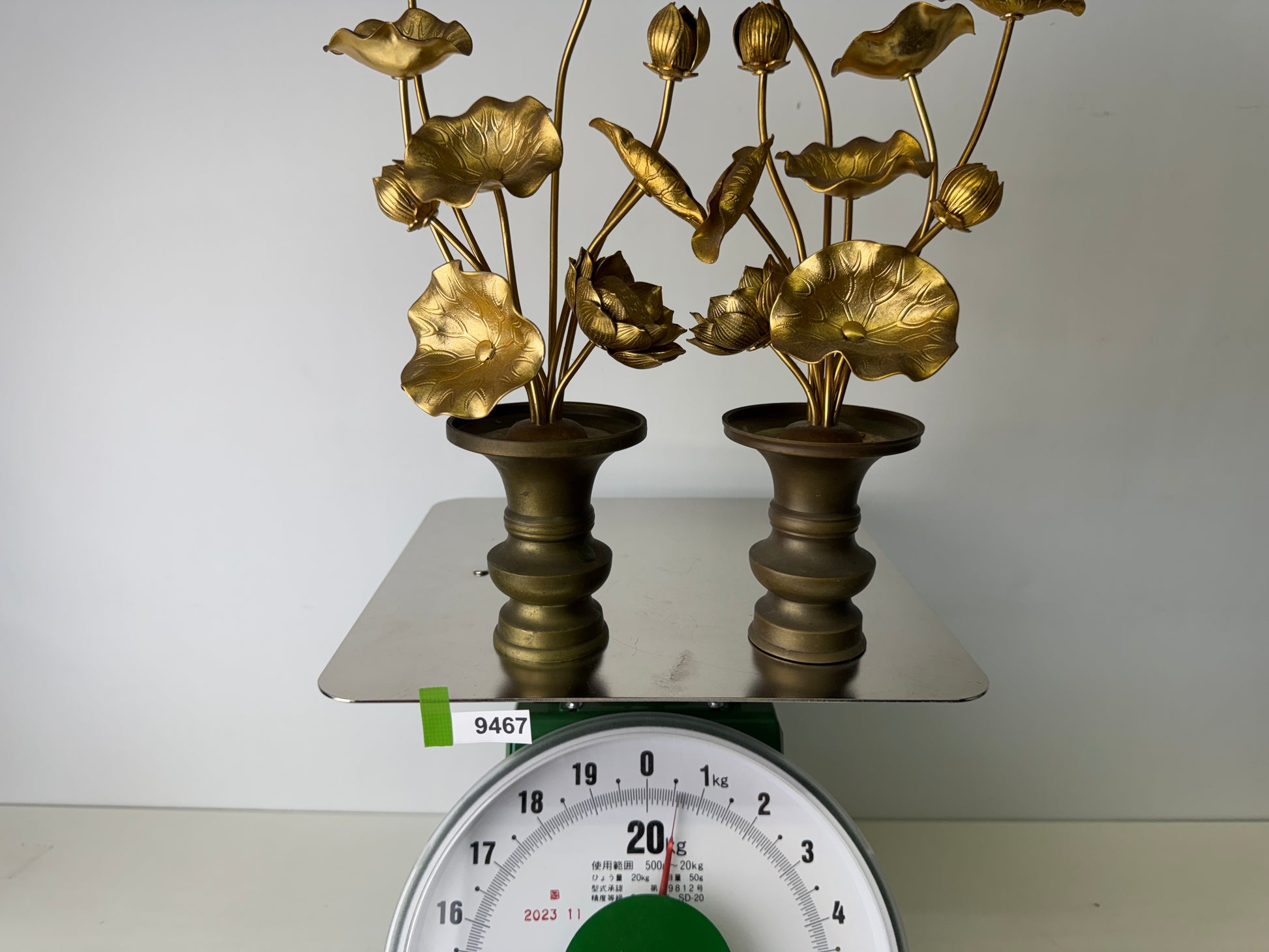 Y9467 Buddhist Altar Equipment Metal Everlasting flower vase pair Japan antique