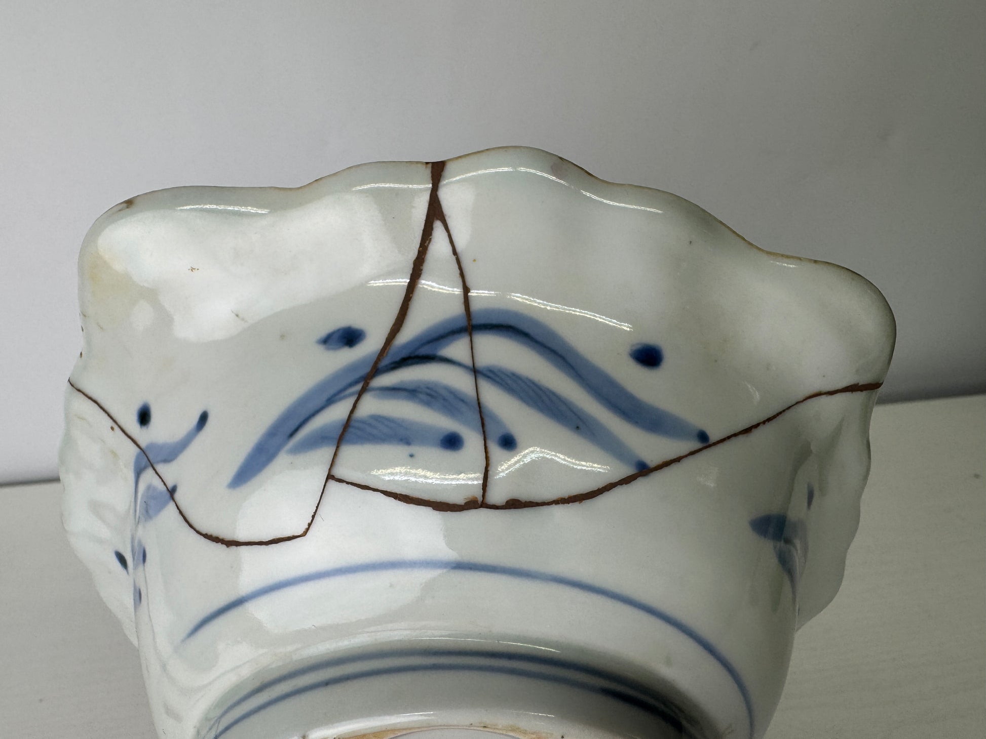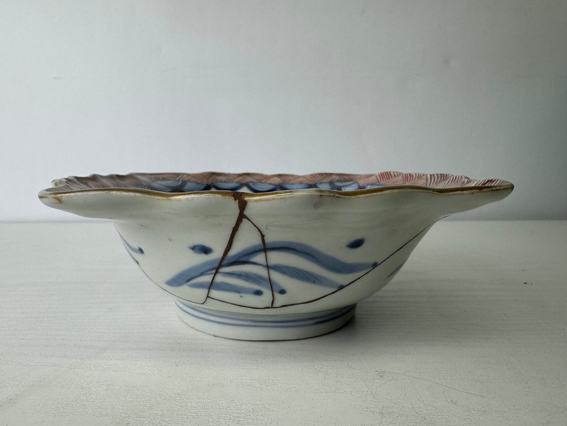 Y9474 CHAWAN Koimari bowl Carp kintsugi Jaoan antique tableware dish kitchen