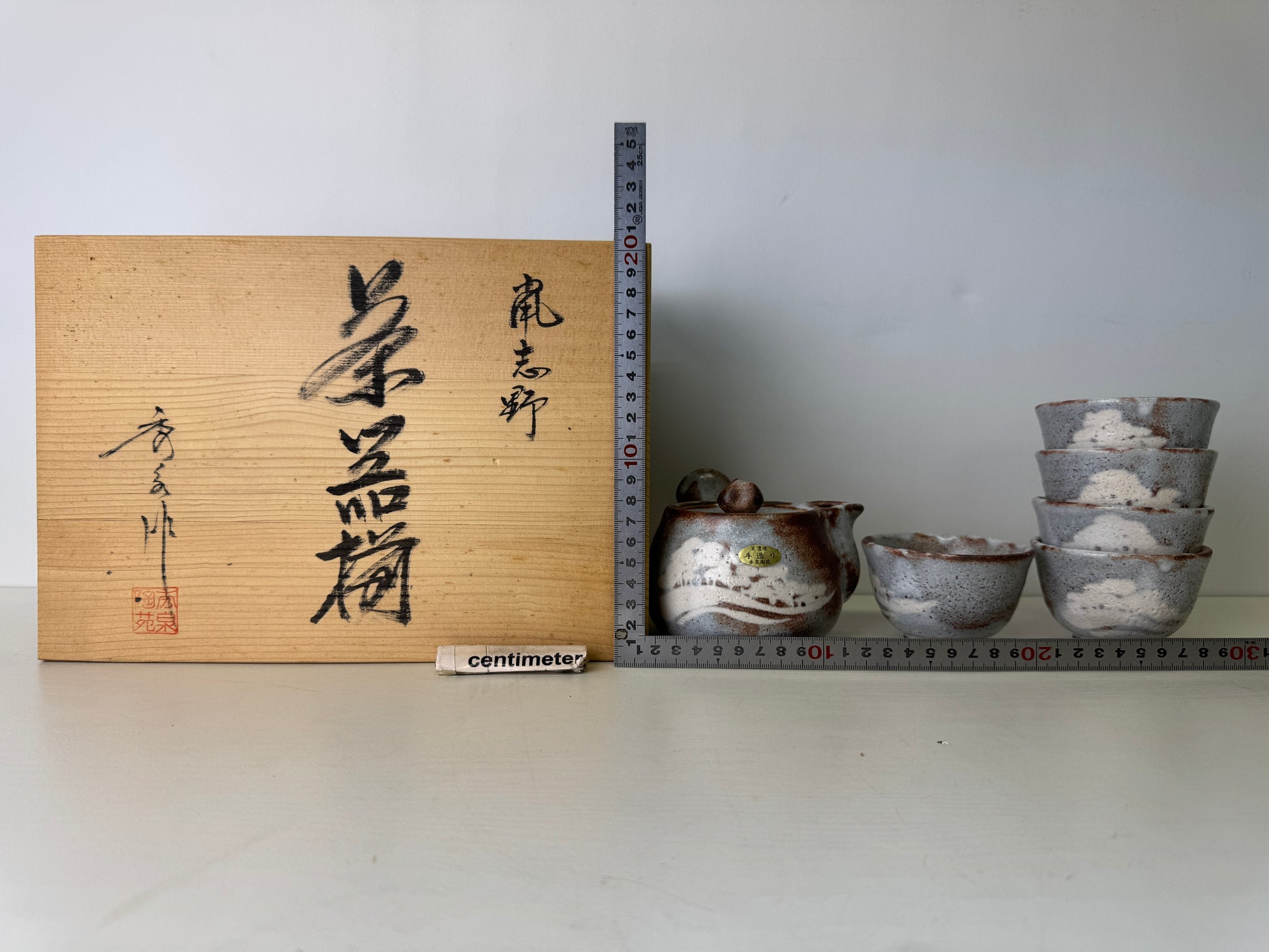 CHAWAN Shino-ware Sencha tea set signed box kyusu teapot cup