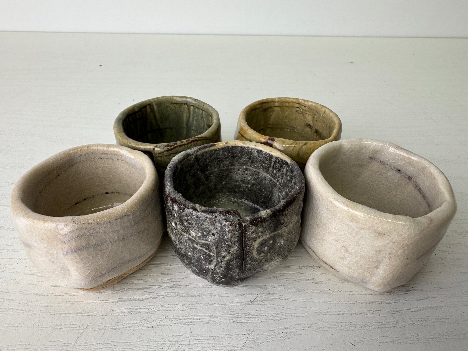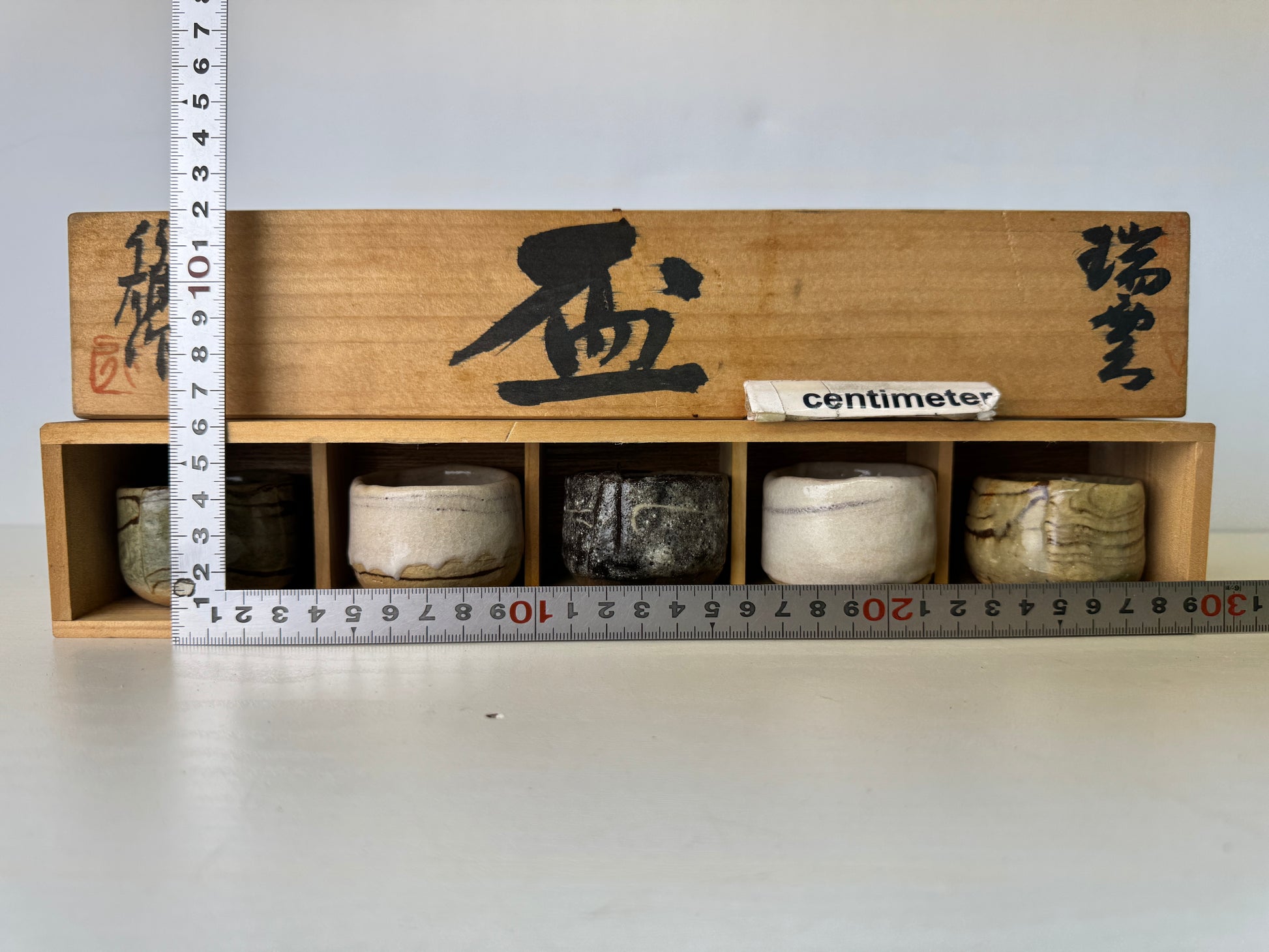 CHAWAN Seto-ware Sake cup set of 5 signed box sakazuki