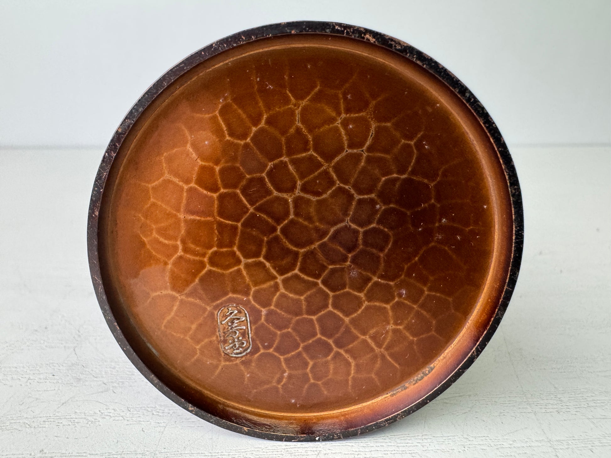 Y9482 FLOWER VASE Copper signed box Japan ikebana floral arrangement interior