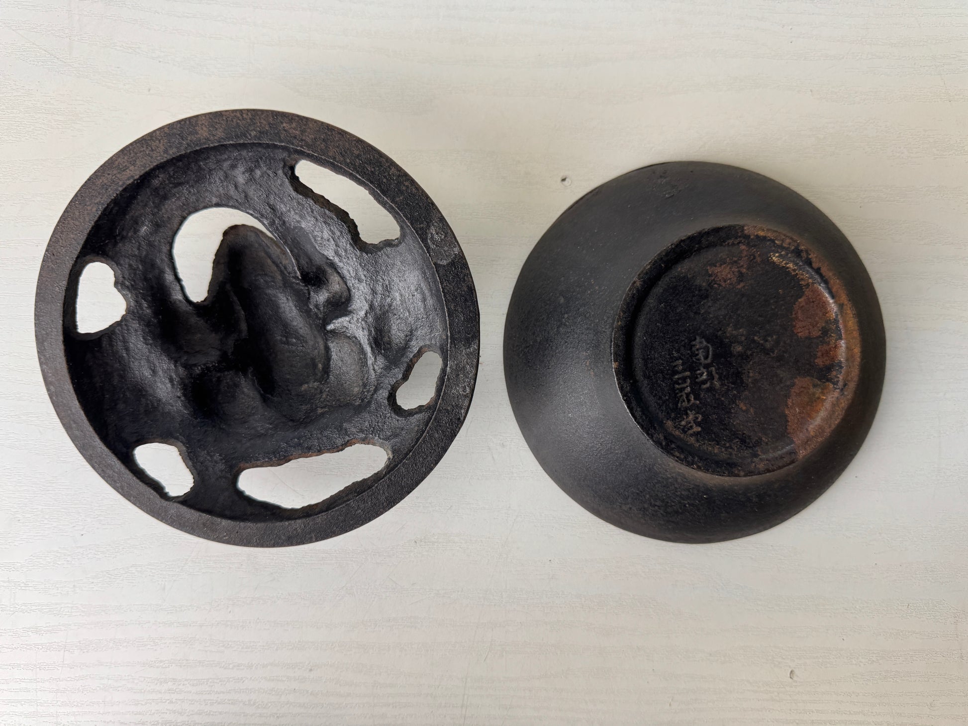 Y9486 ASHTRAY Frog signed Nambu Ironware Japan antique collectible cigarette