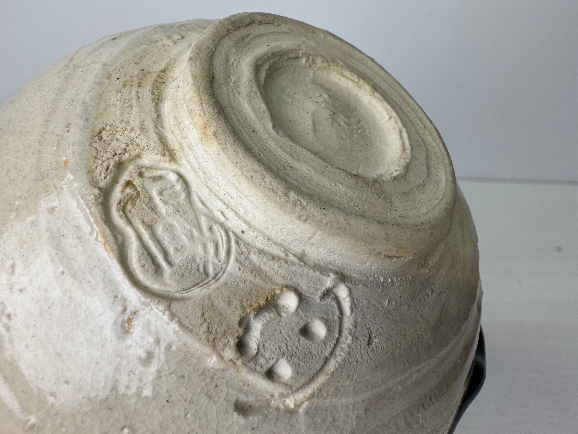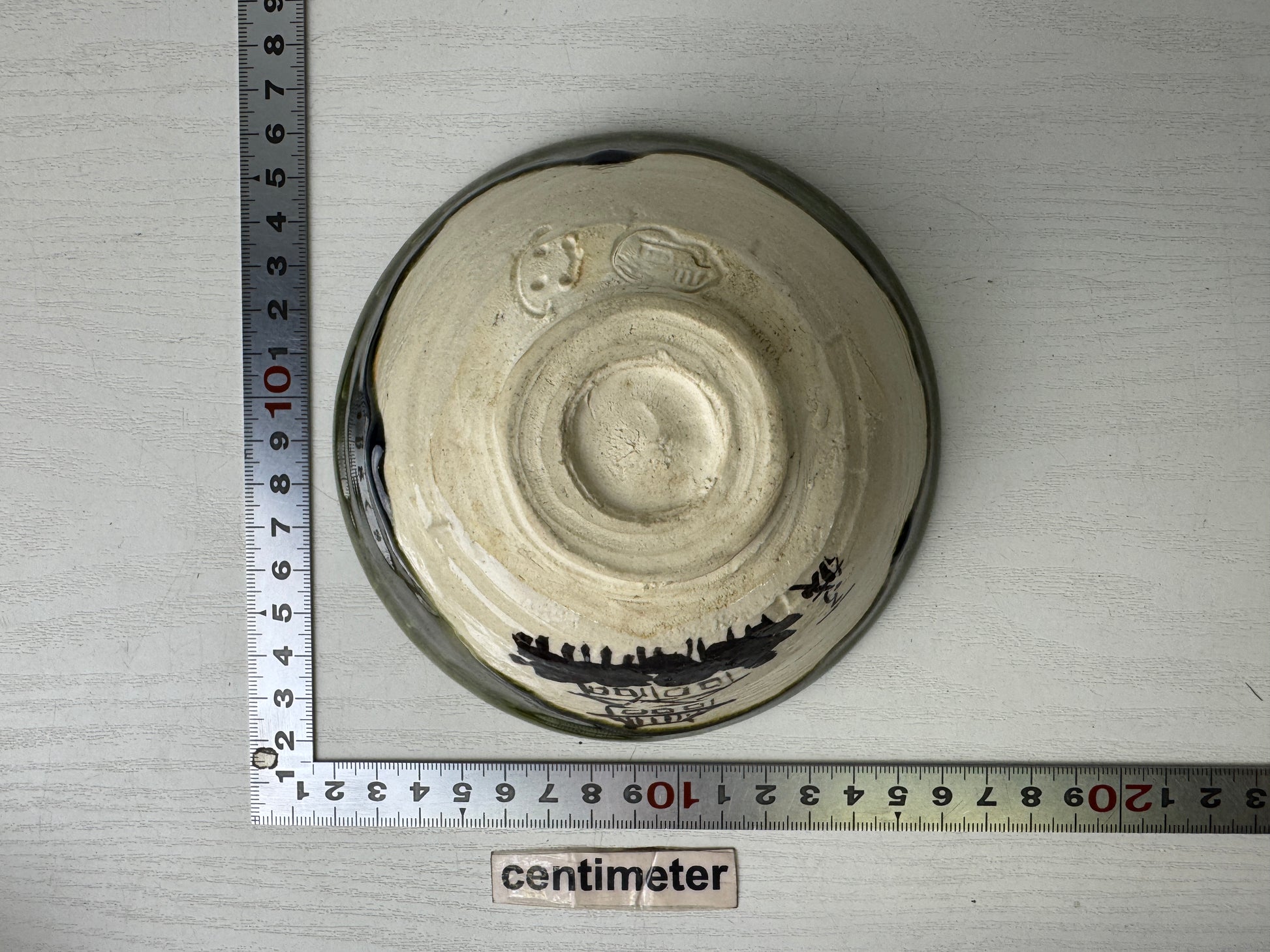 Y9495 CHAWAN Oribe-ware bowl signed box Japan antique tea ceremony pottery cup