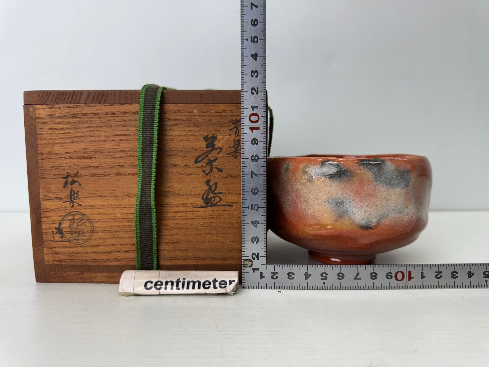 Y9524 CHAWAN Raku-ware red bowl signed box Japan antique tea ceremony pottery