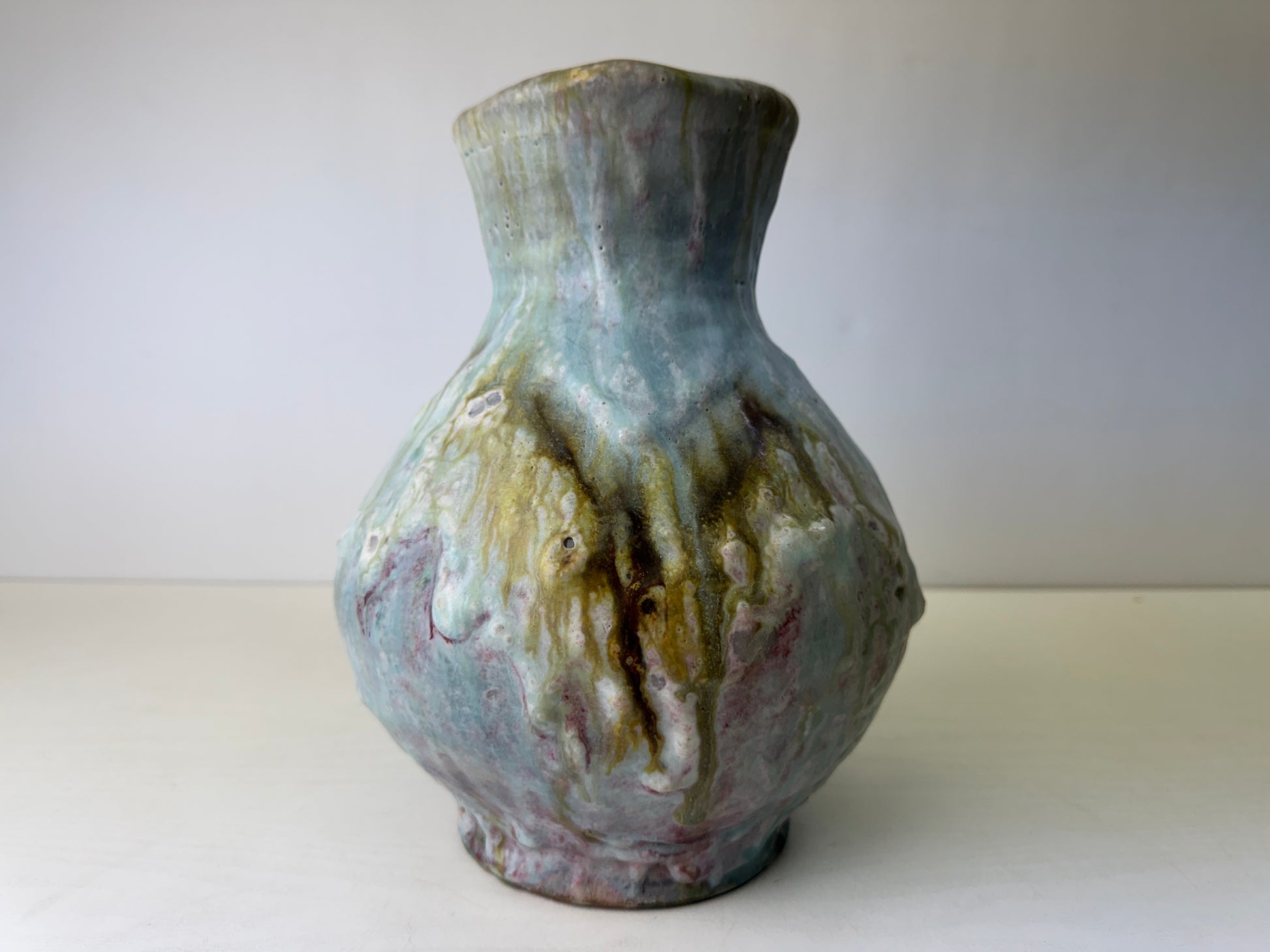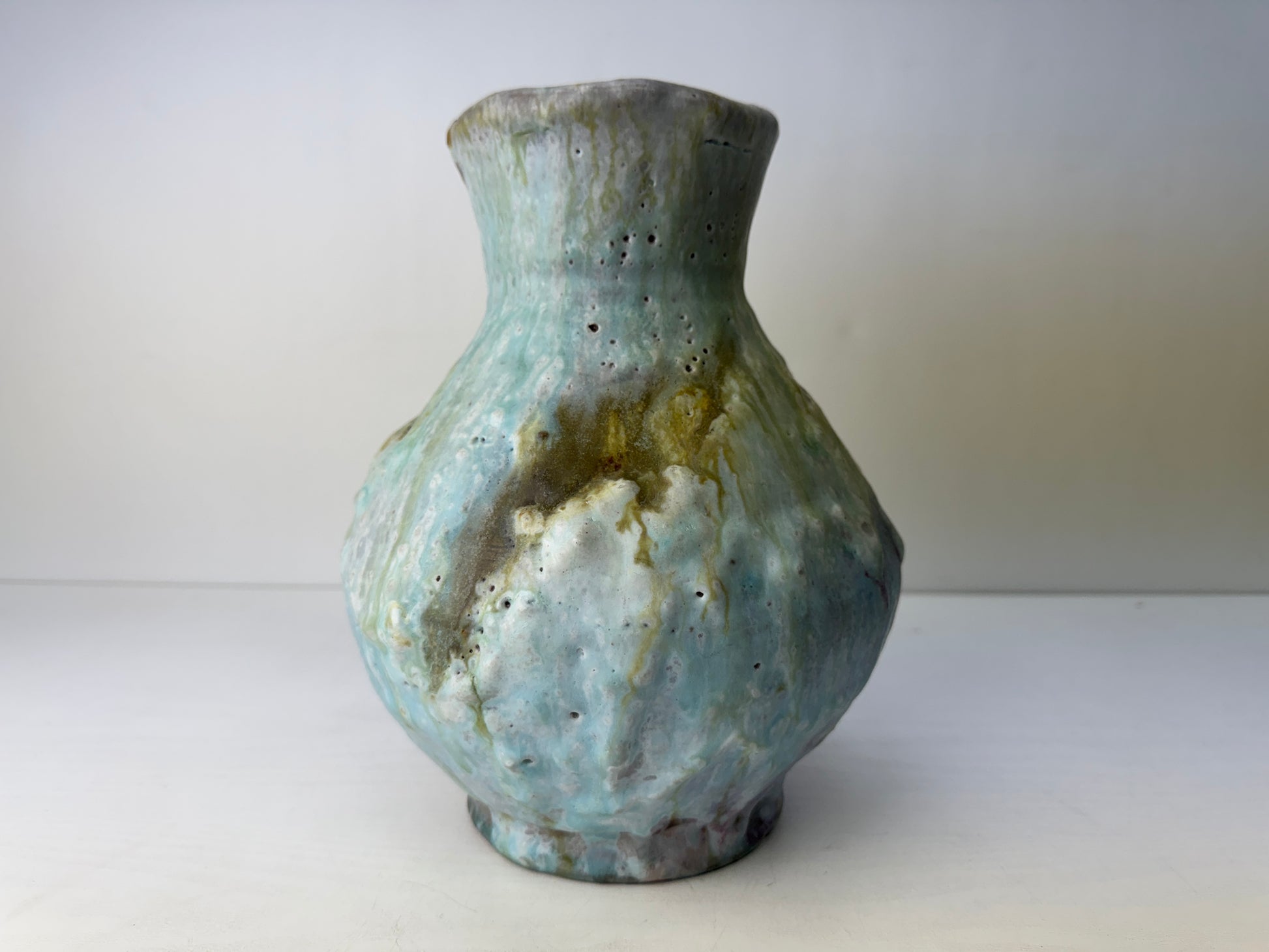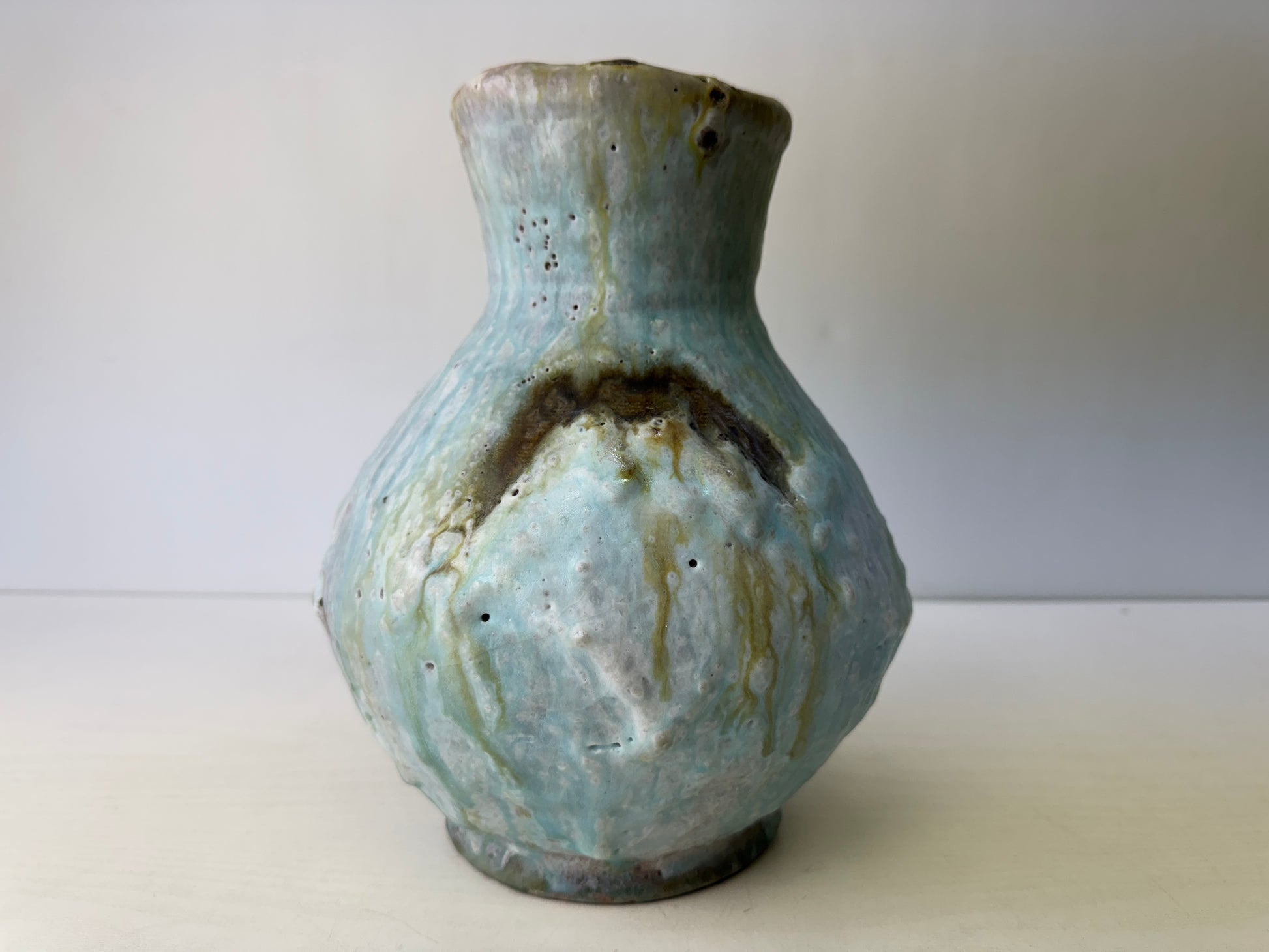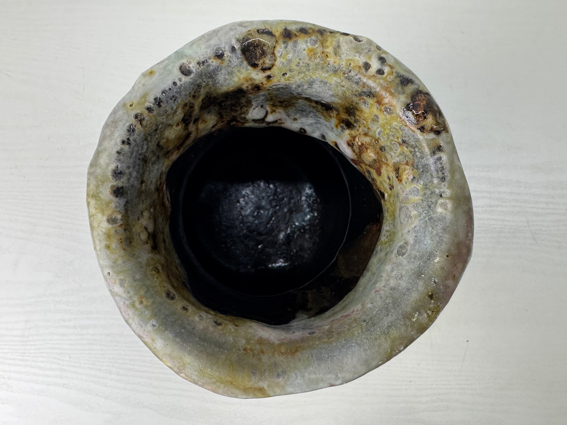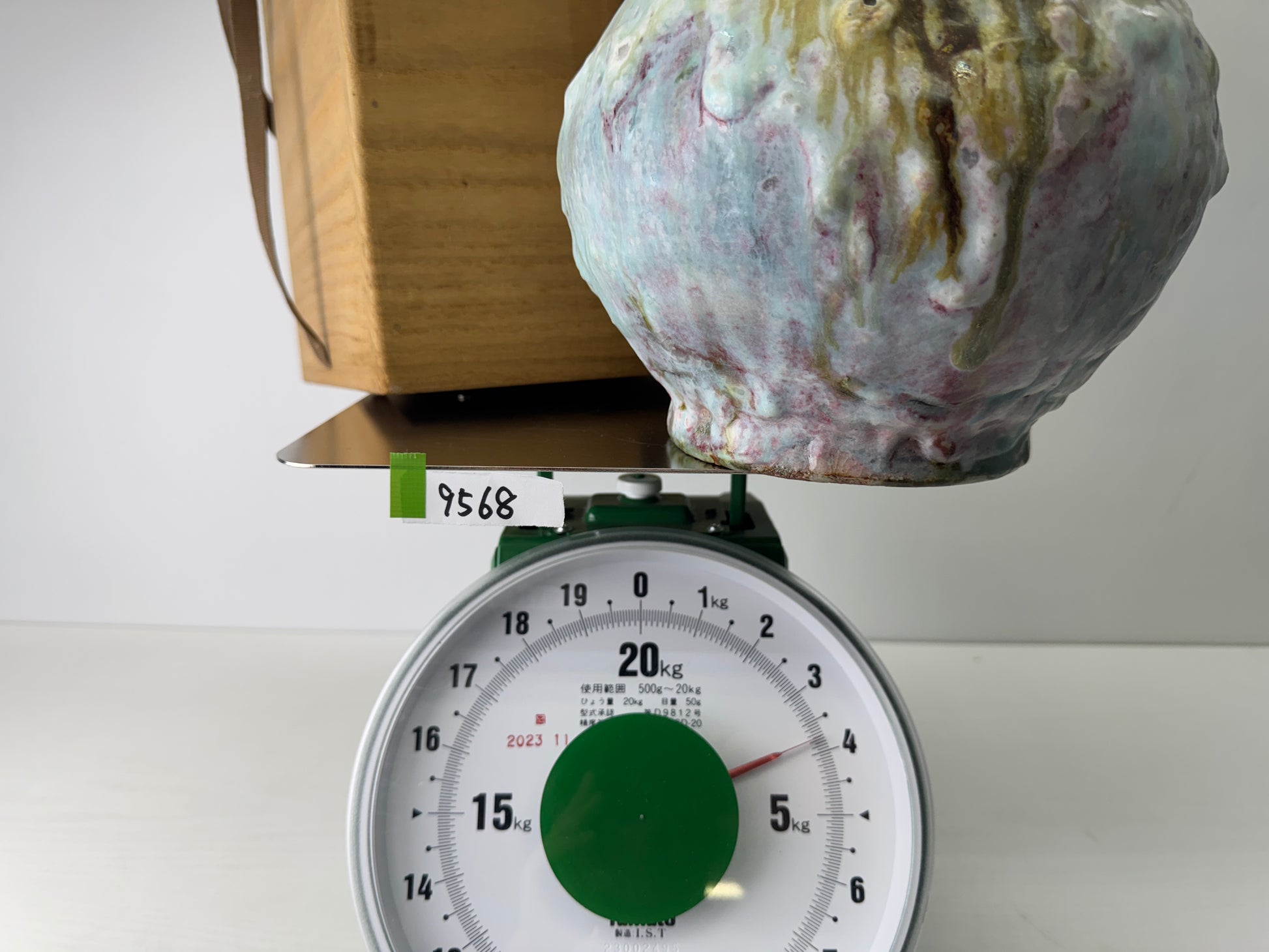 Y9568 FLOWER VASE Mino-ware signed box Japan ikebana floral arrangement interior
