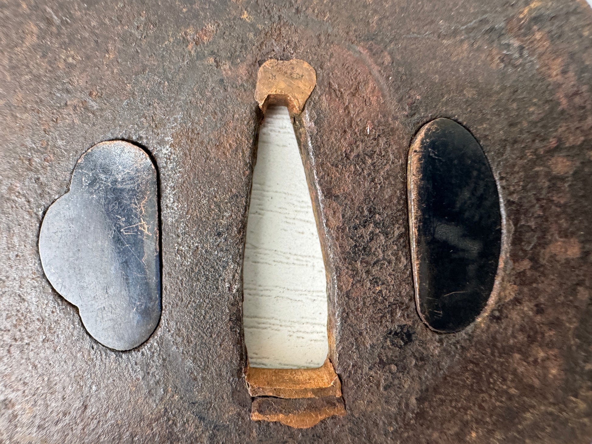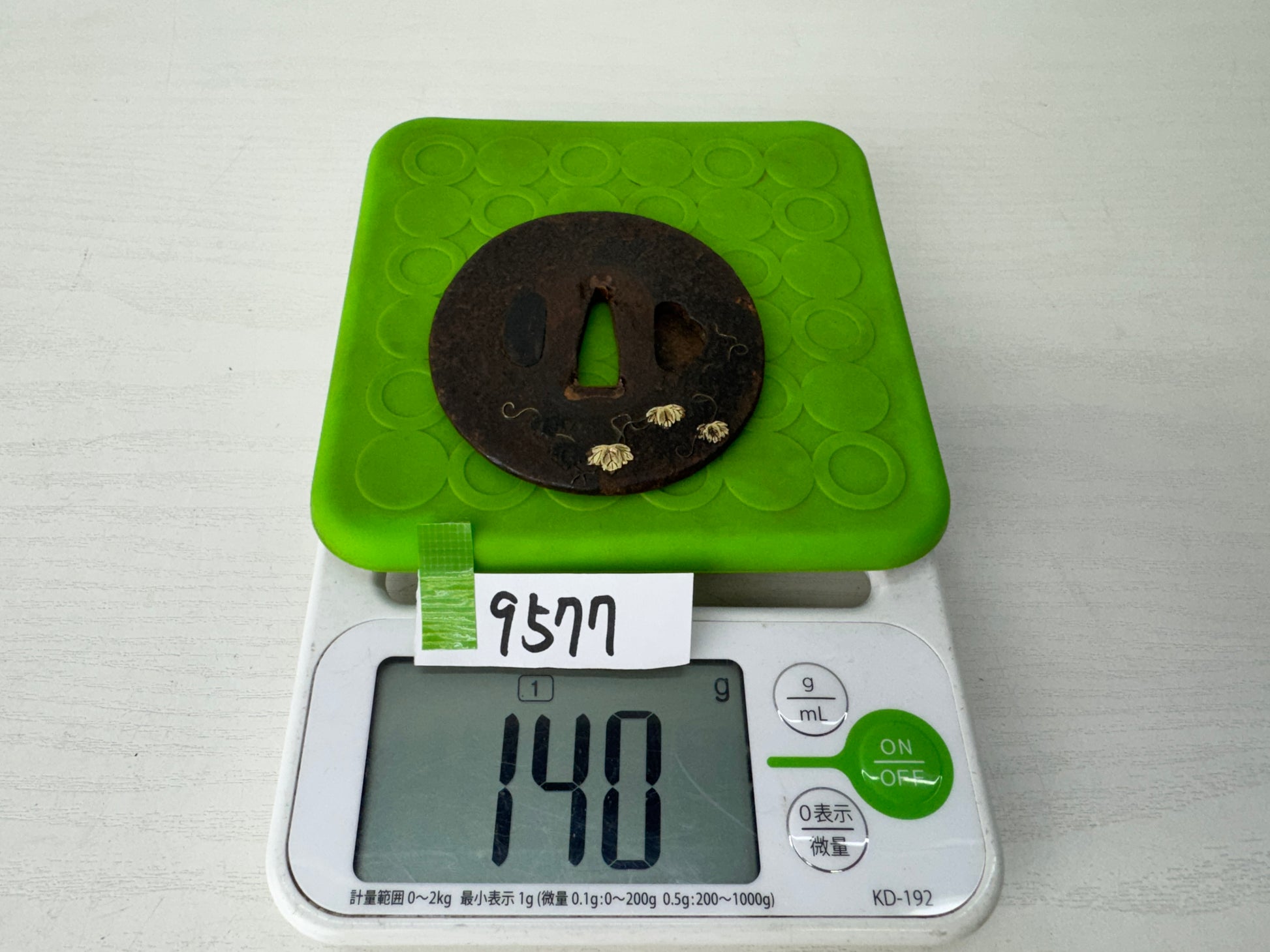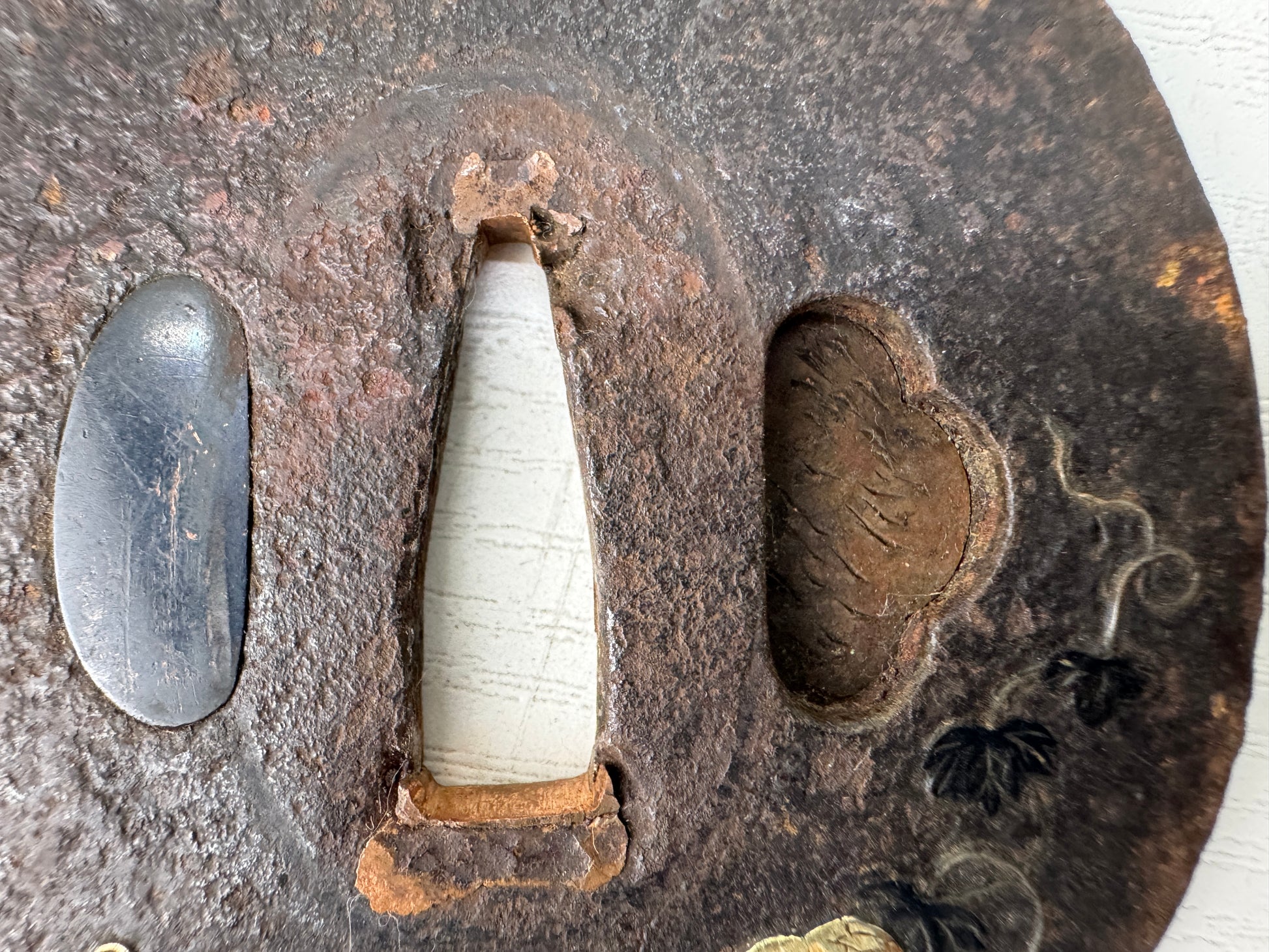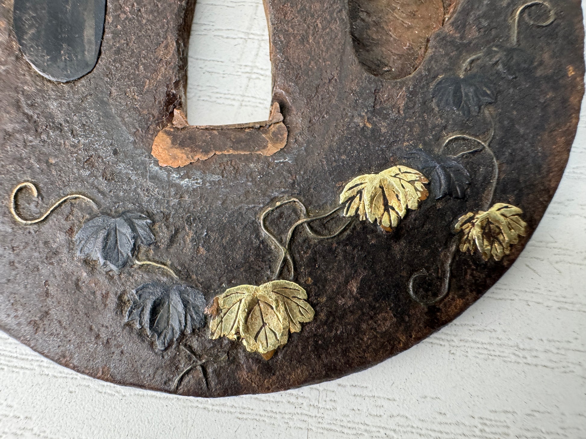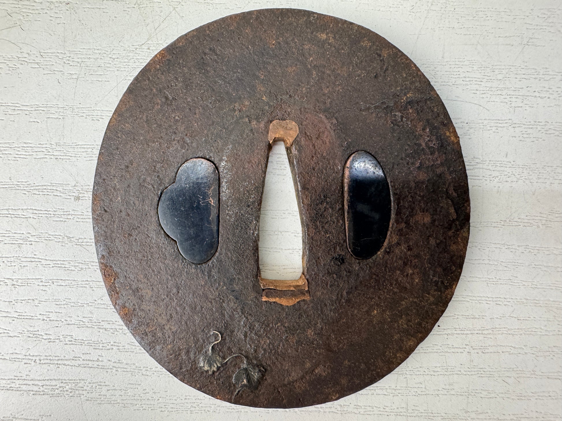 Y9577 TSUBA Iron sword guard Leaves Japan samurai katana antique koshirae edo