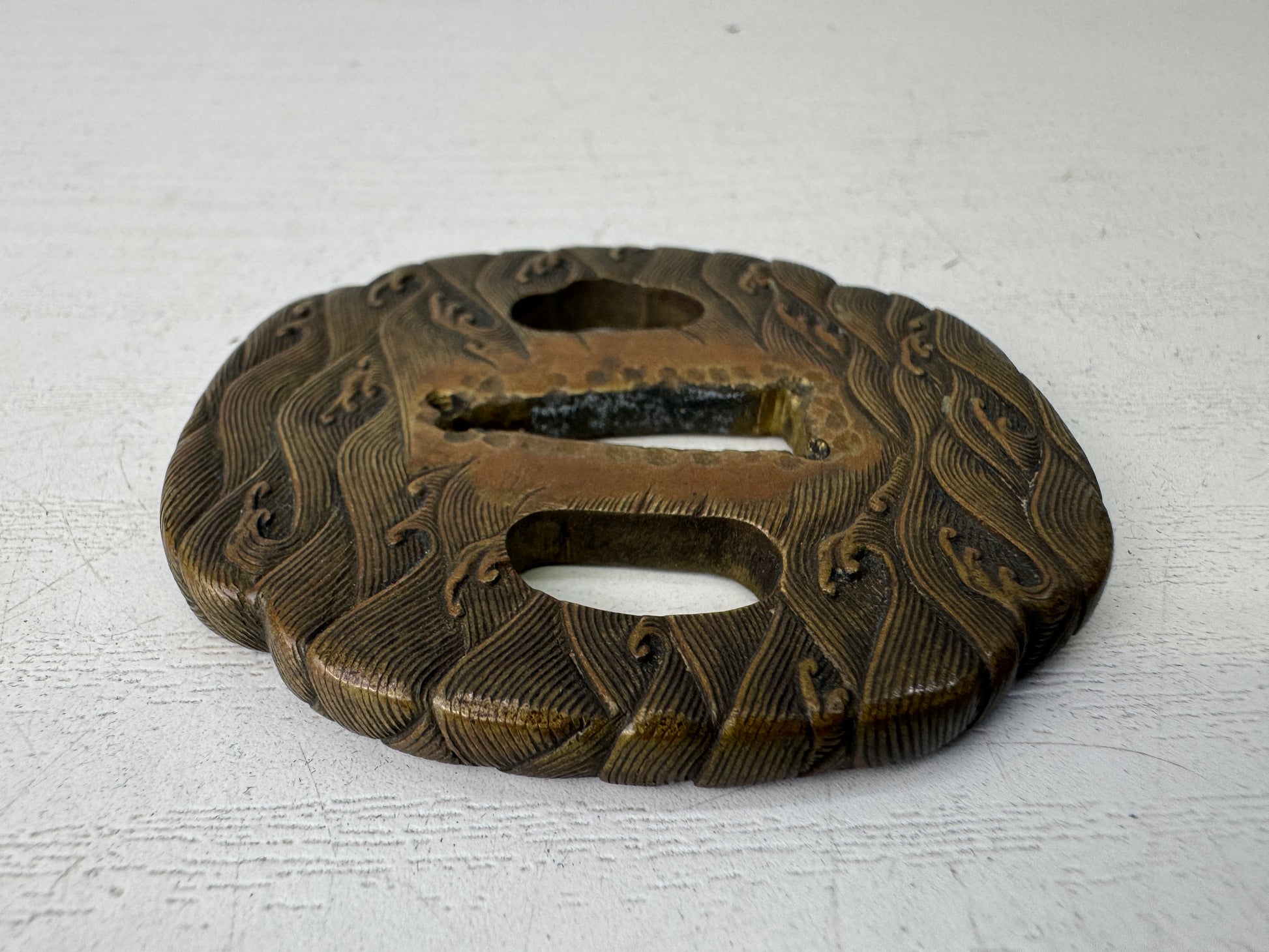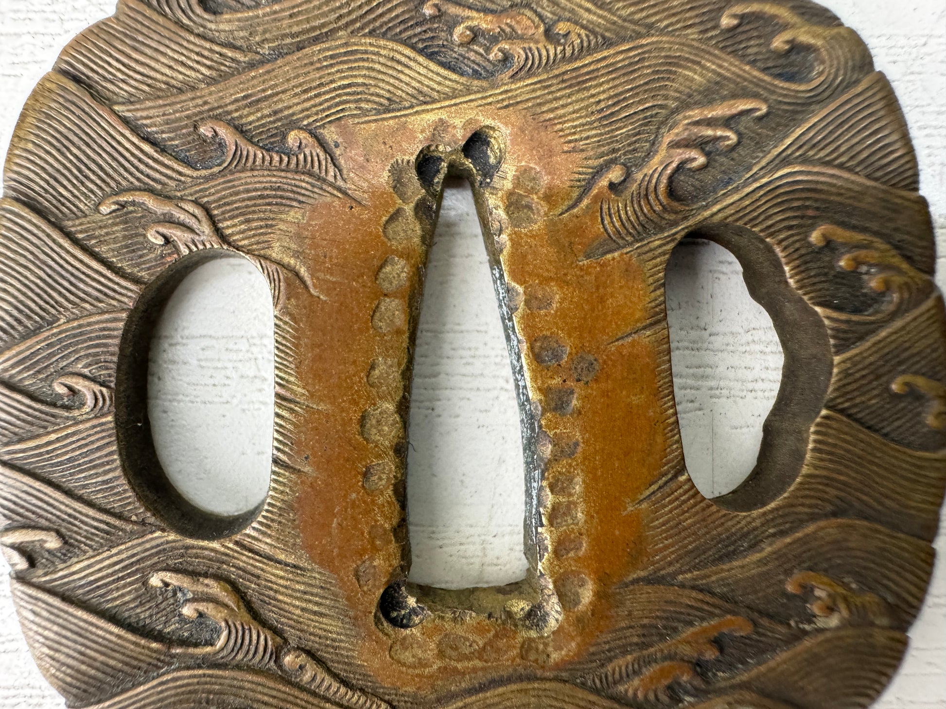 Y9579 TSUBA Iron sword guard bag Japan samurai katana antique koshirae edo bushi