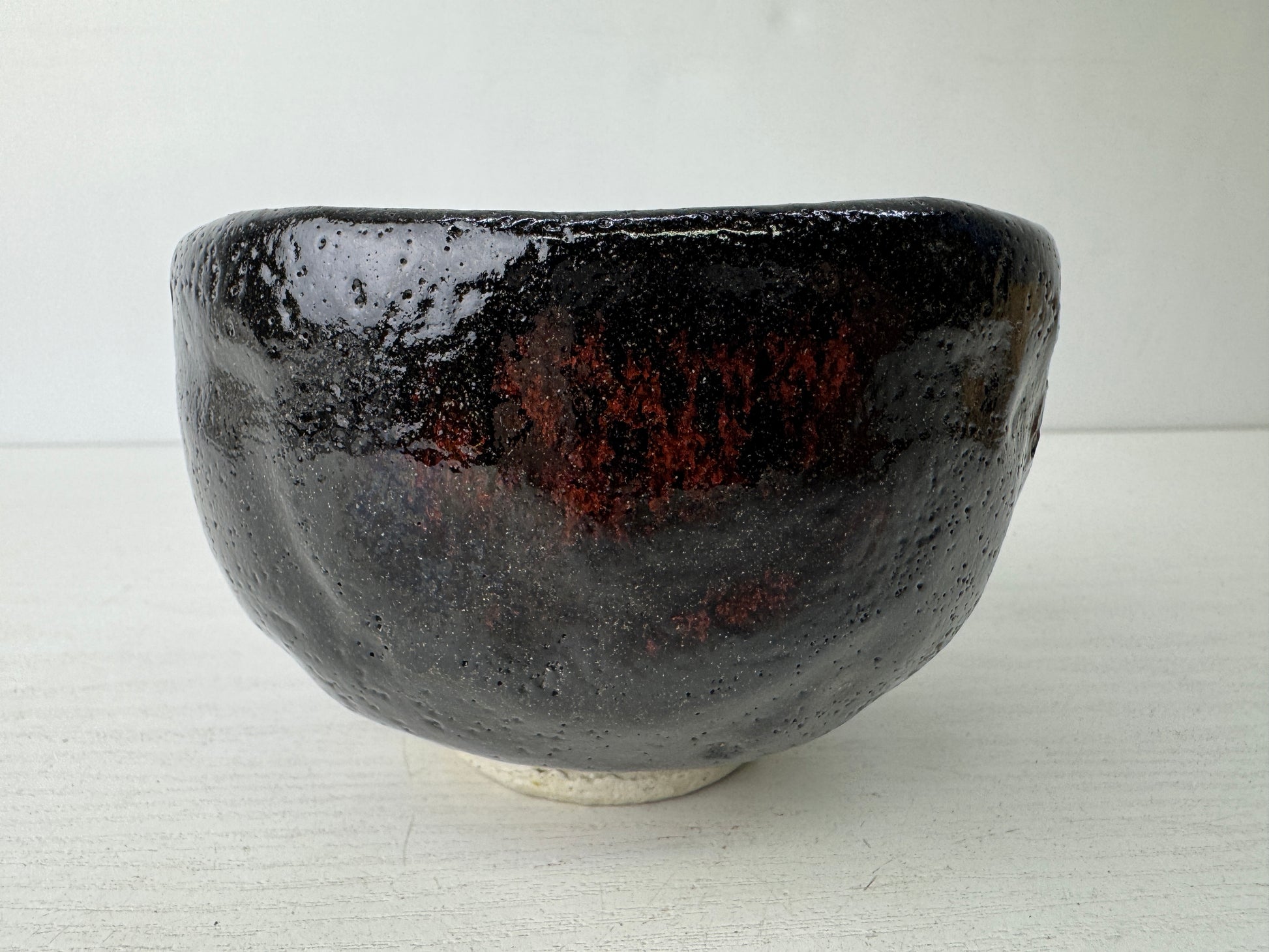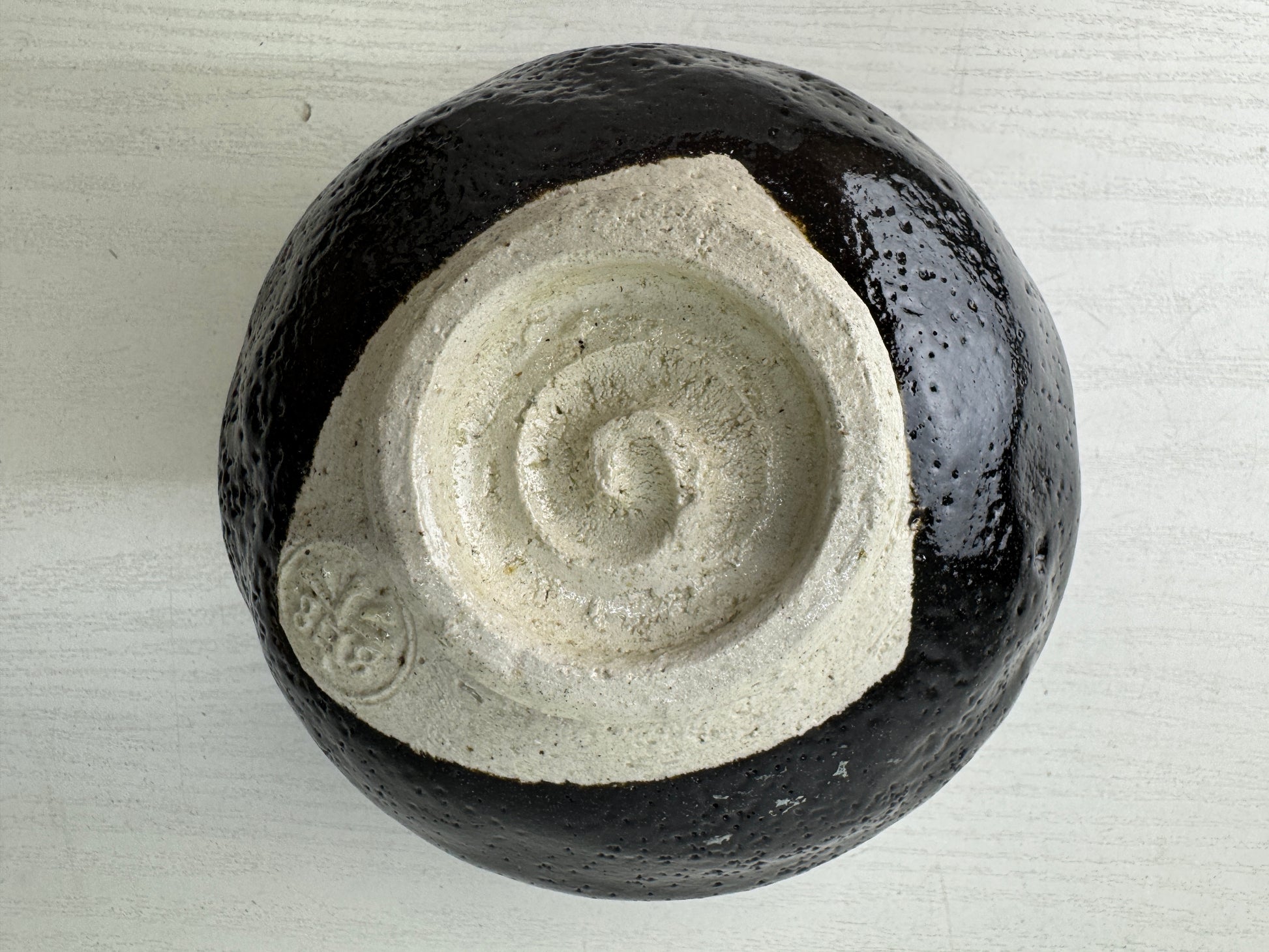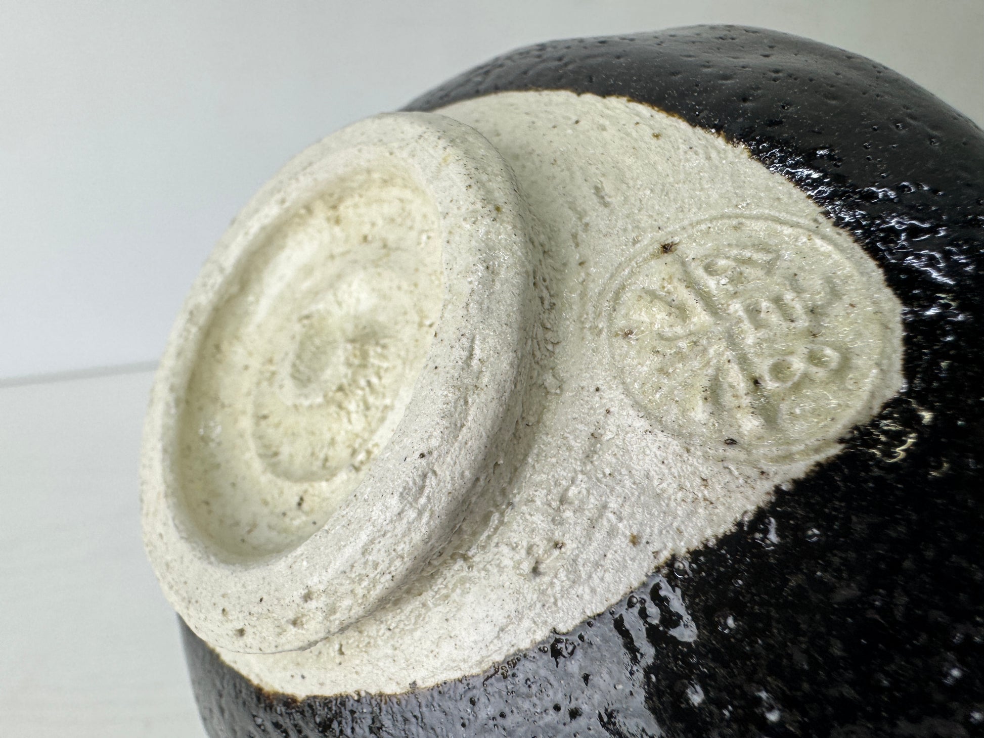 Y9584 CHAWAN Raku-ware black bowl signed box Japan antique tea ceremony pottery