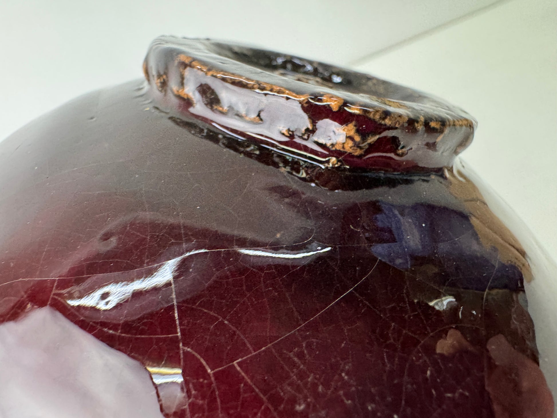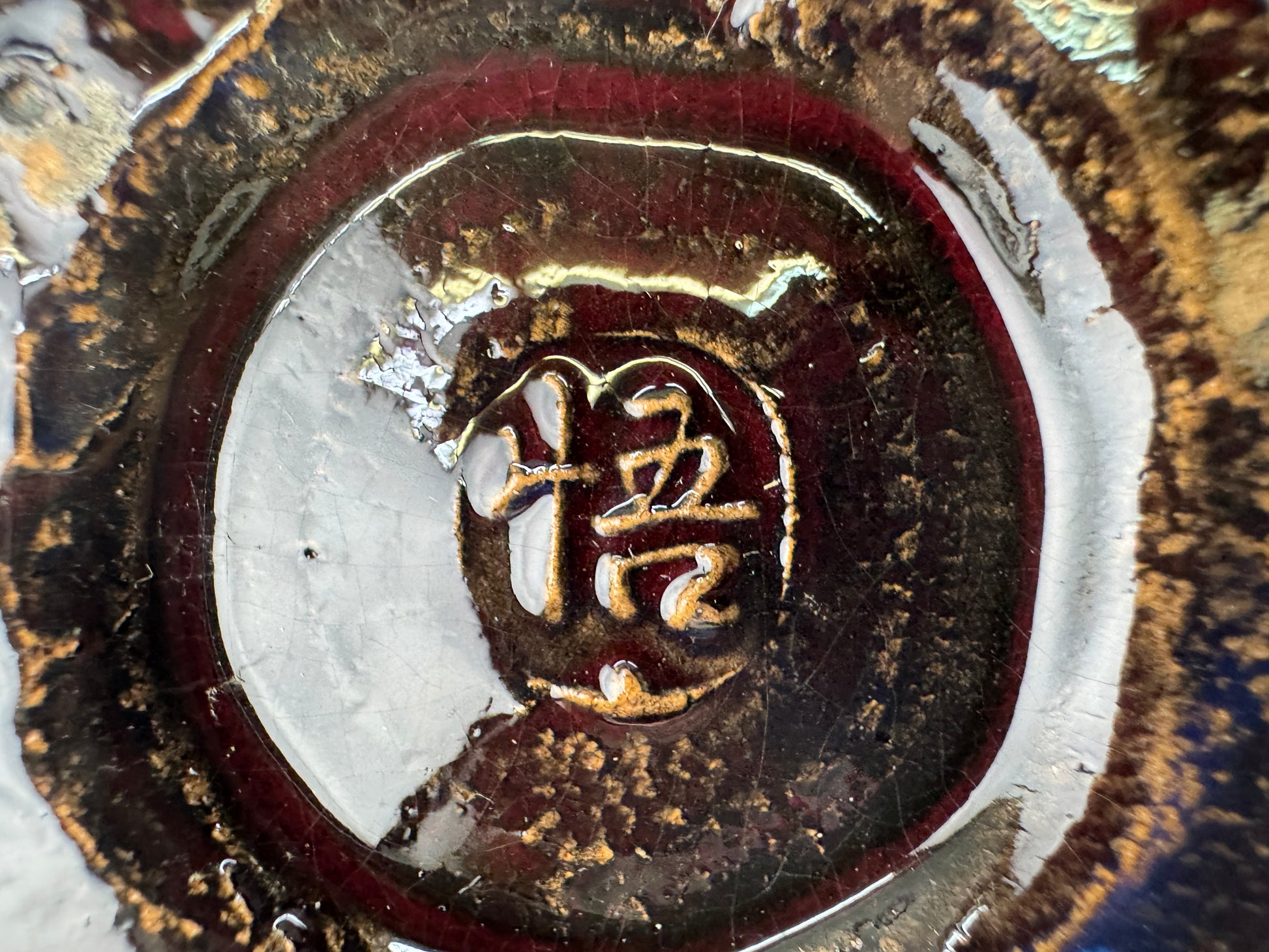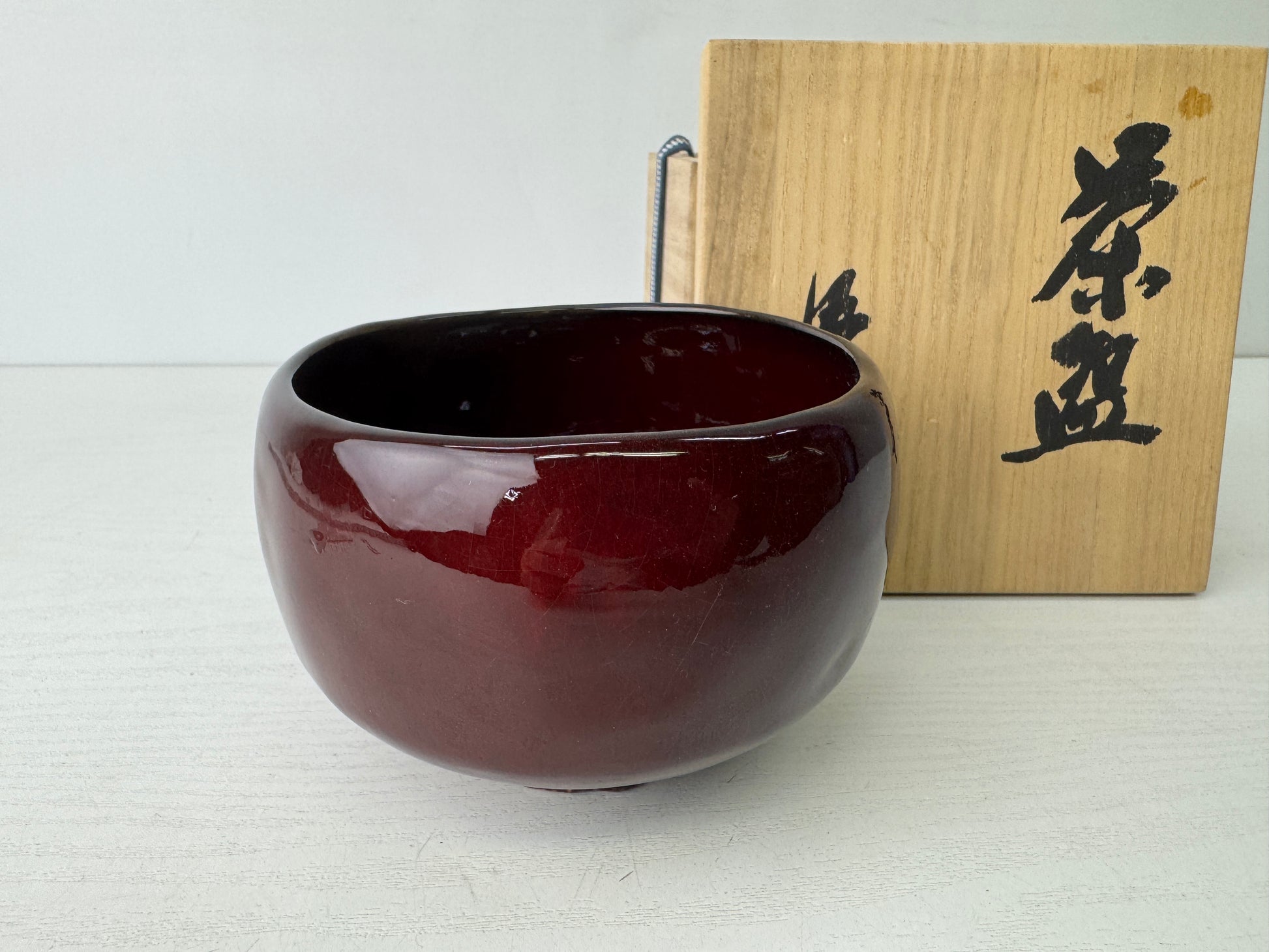 Y9585 CHAWAN Cinnabar bowl signed box Japan antique tea ceremony pottery teacup