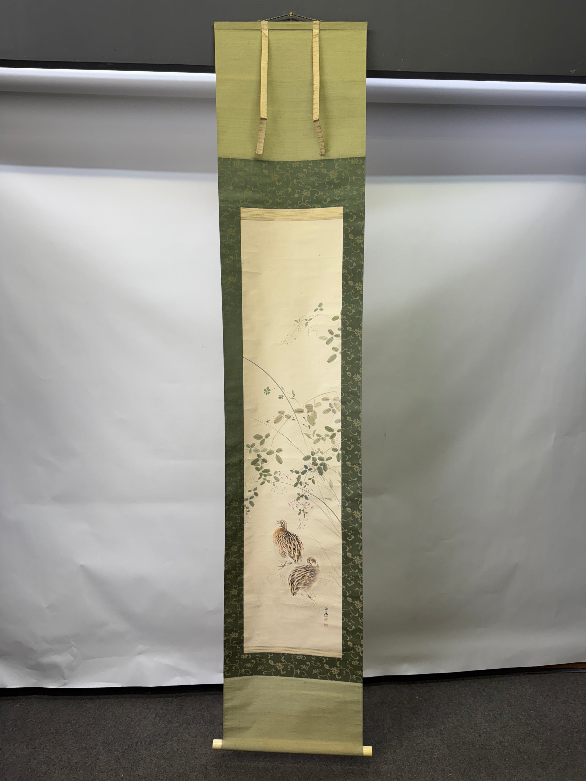 Y9587 KAKEJIKU Quail bird signed box Japan antique hanging scroll art interior