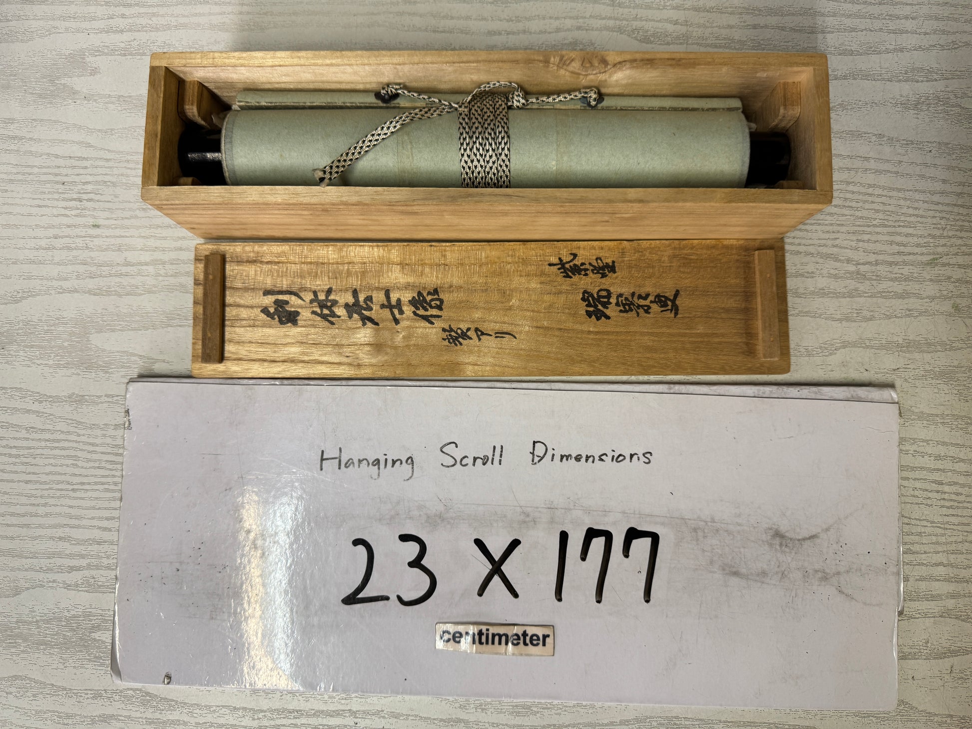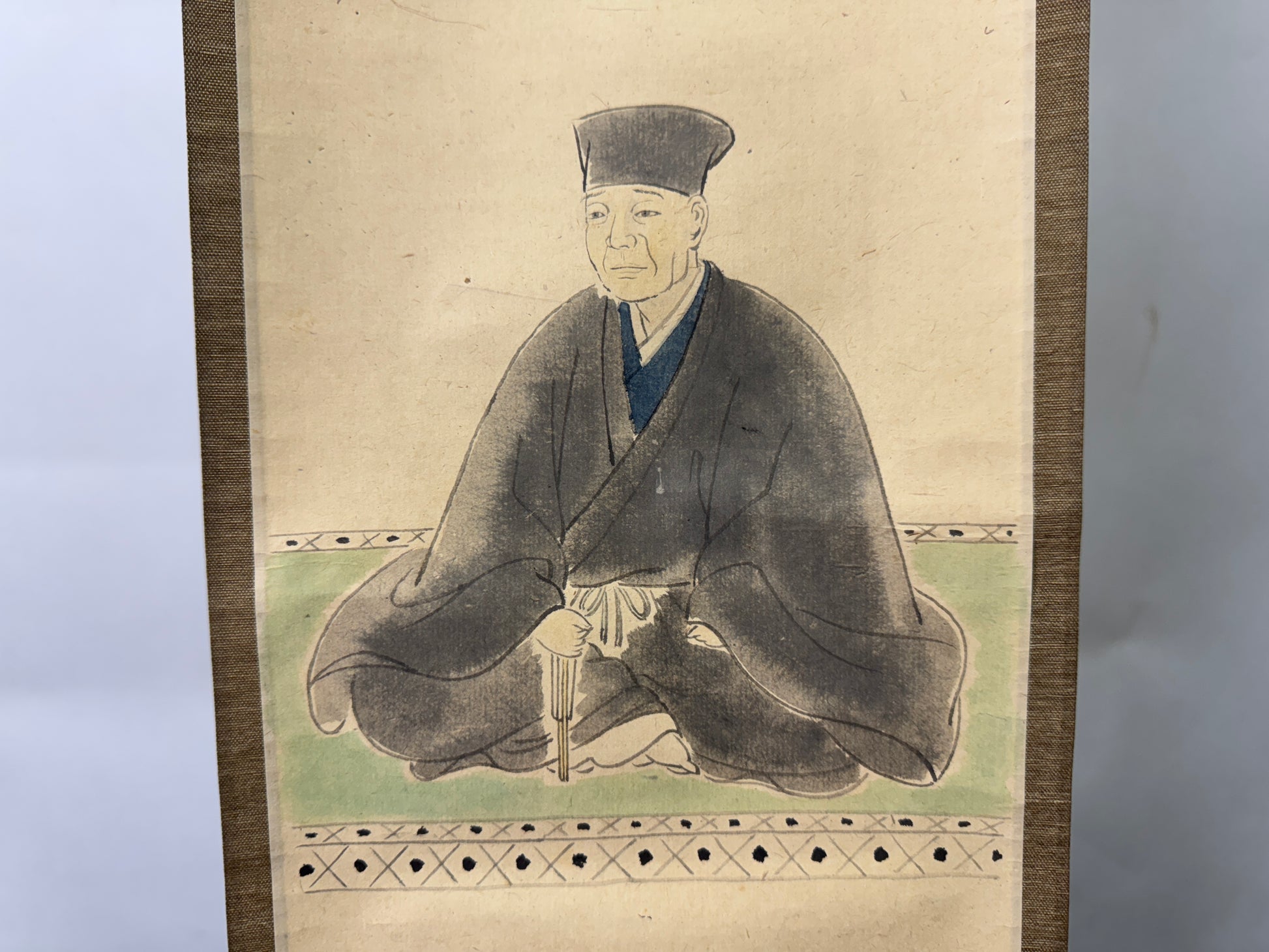 Y9588 KAKEJIKU Sen no Rikyu portrait signed box Japan antique hanging scroll art