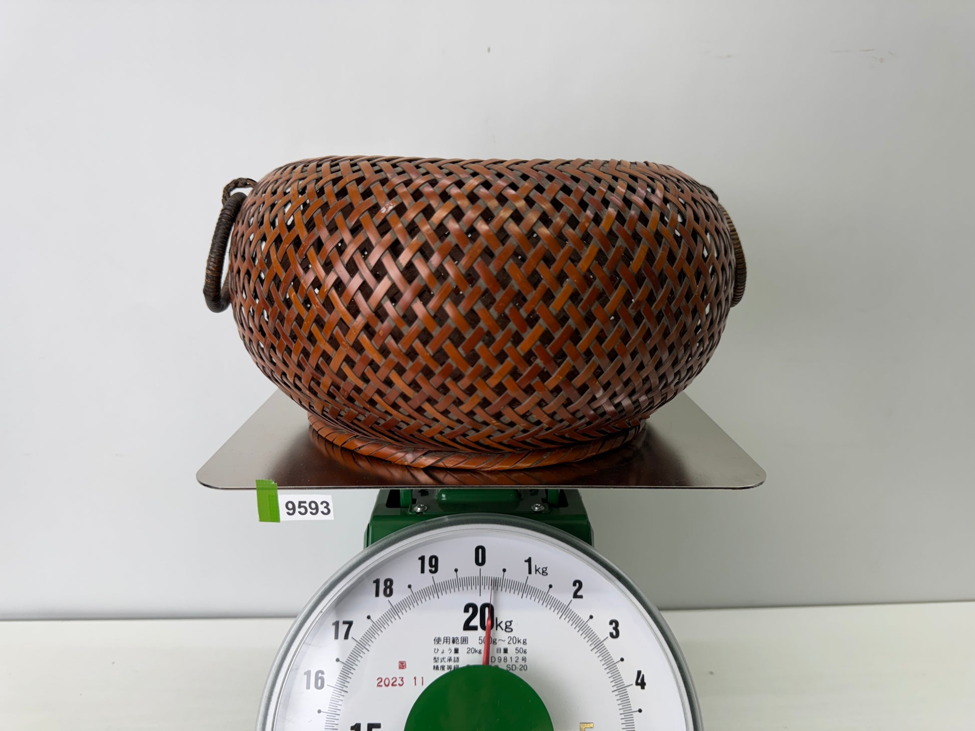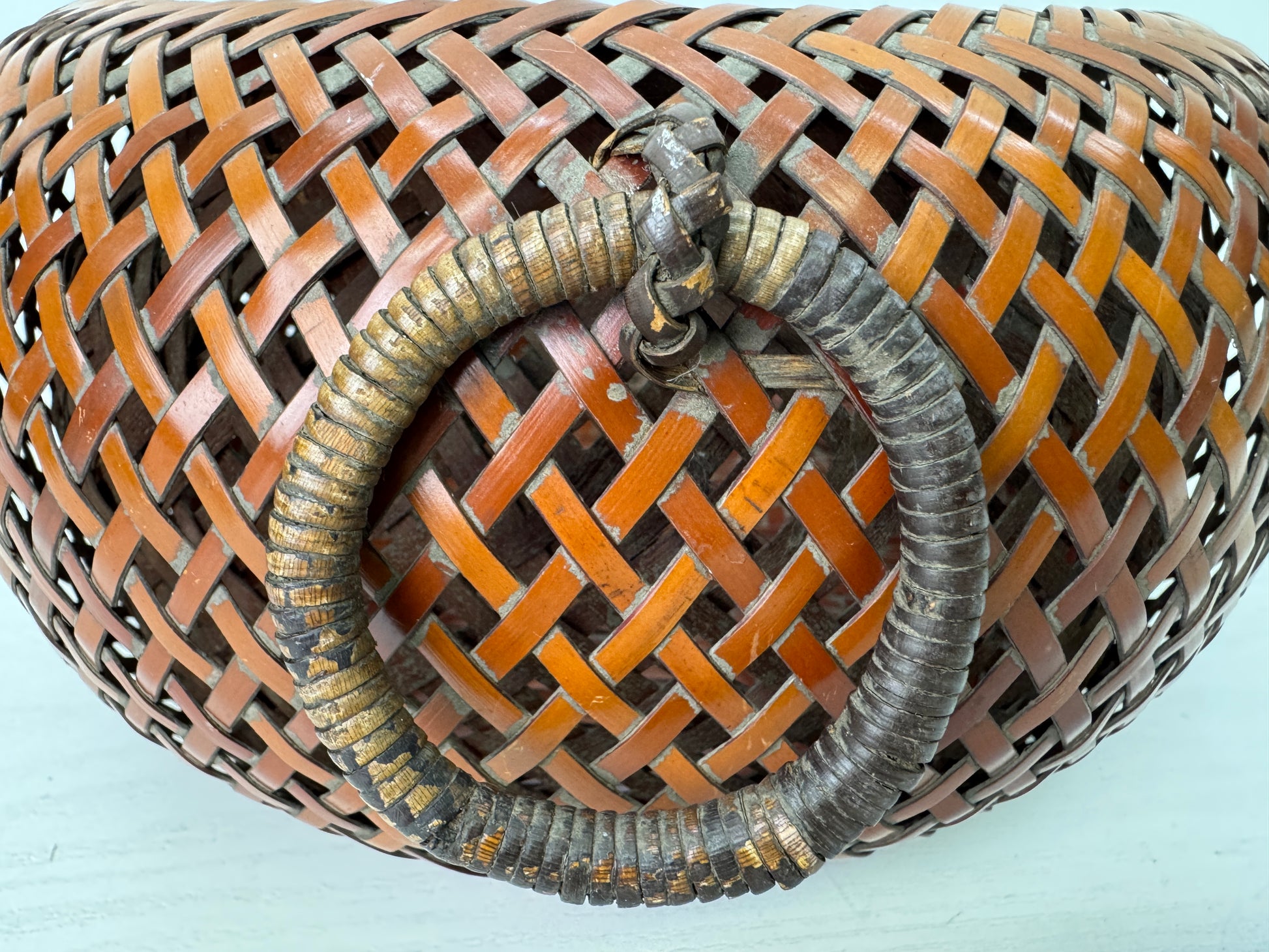 Y9593 Bamboo Woven Basket Flower vase signed Japan Ikebana Floral arrangement