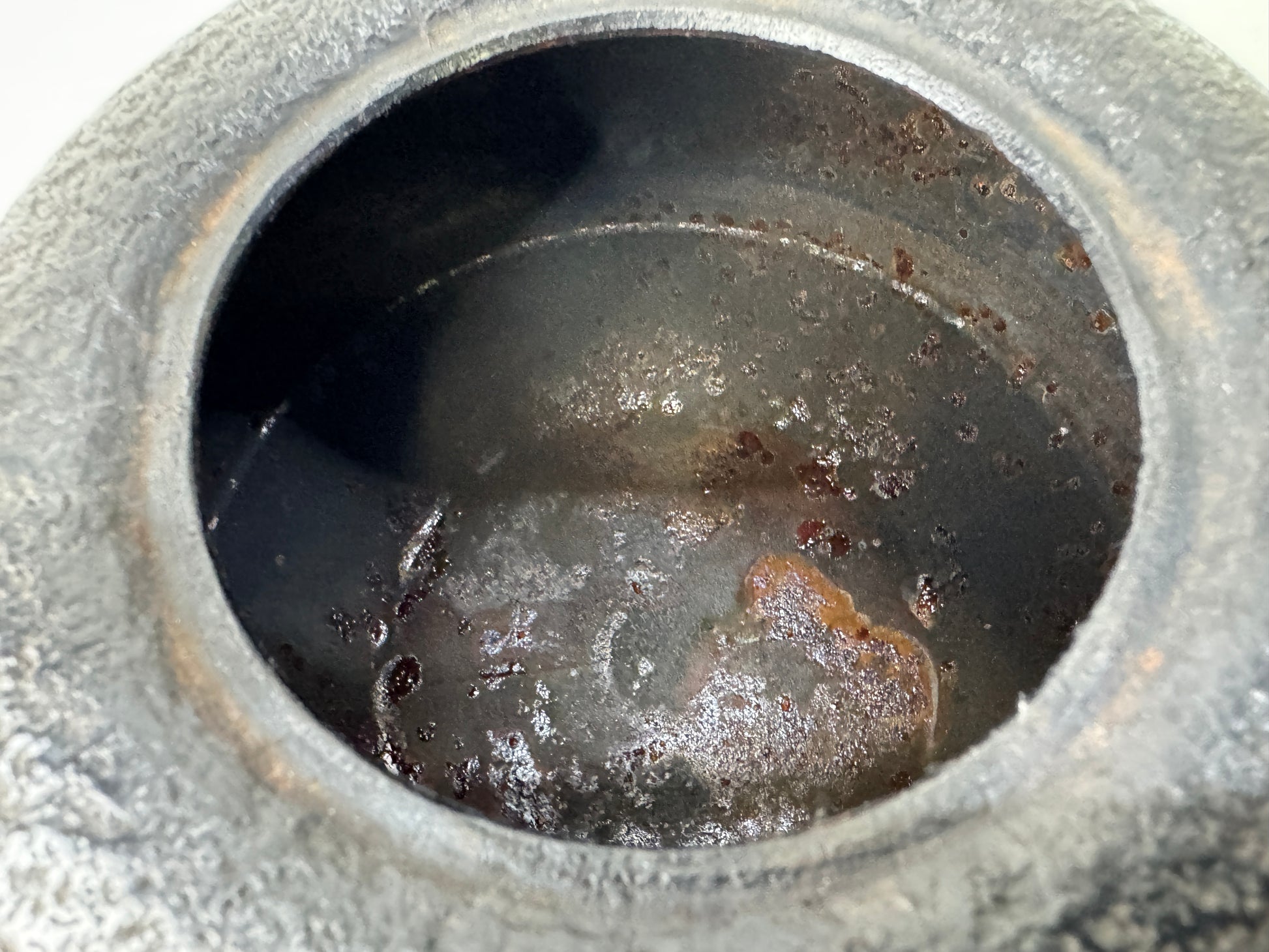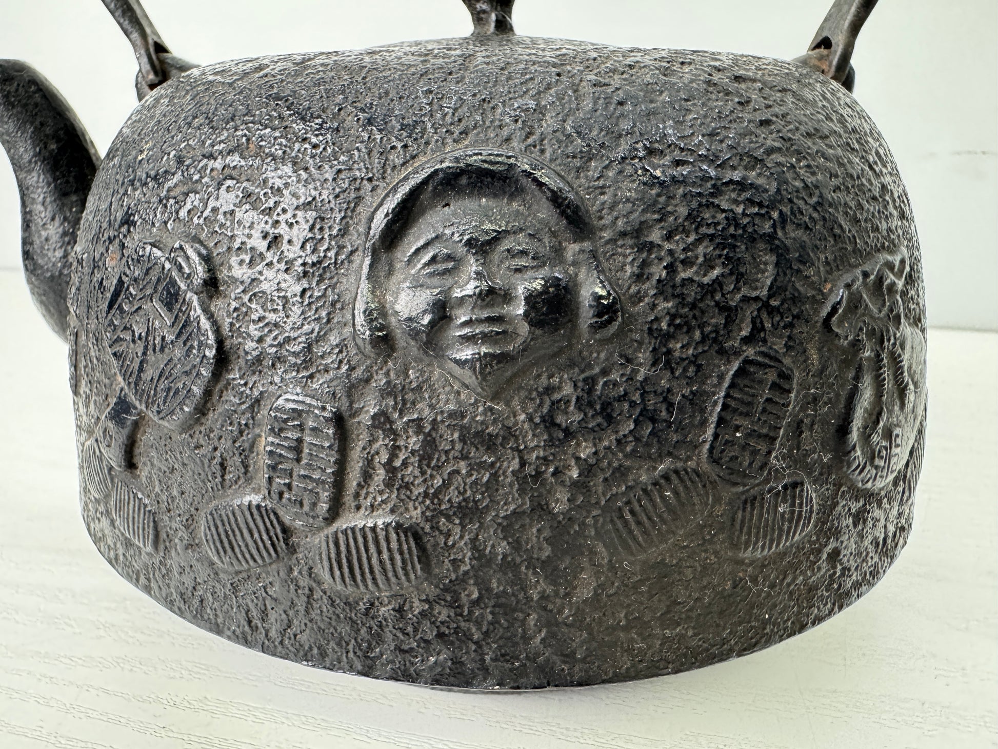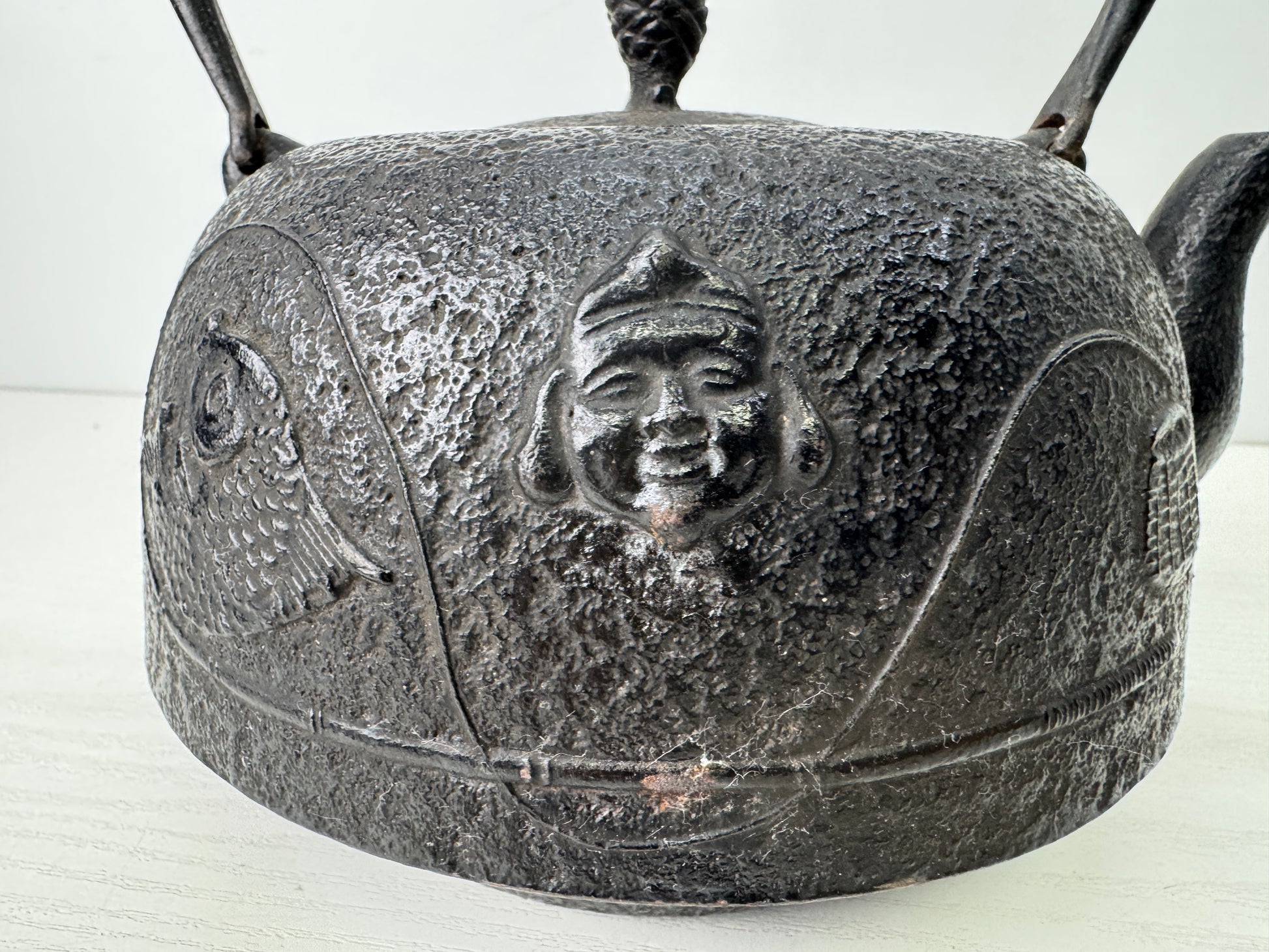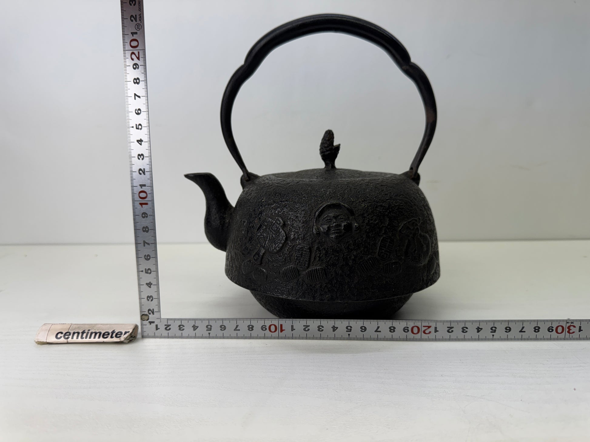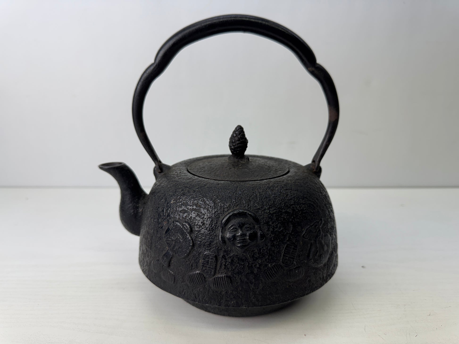 Y9609 TETSUBIN Iron kettle Treasure pattern signed Japan antique teapot tea pot