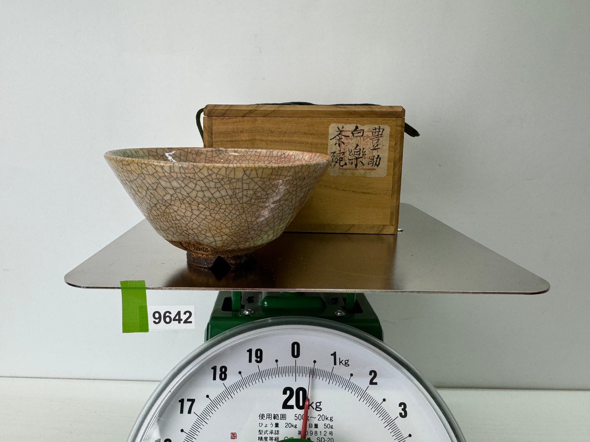 Y9642 CHAWAN Raku-ware white bowl signed box Japan antique tea ceremony pottery