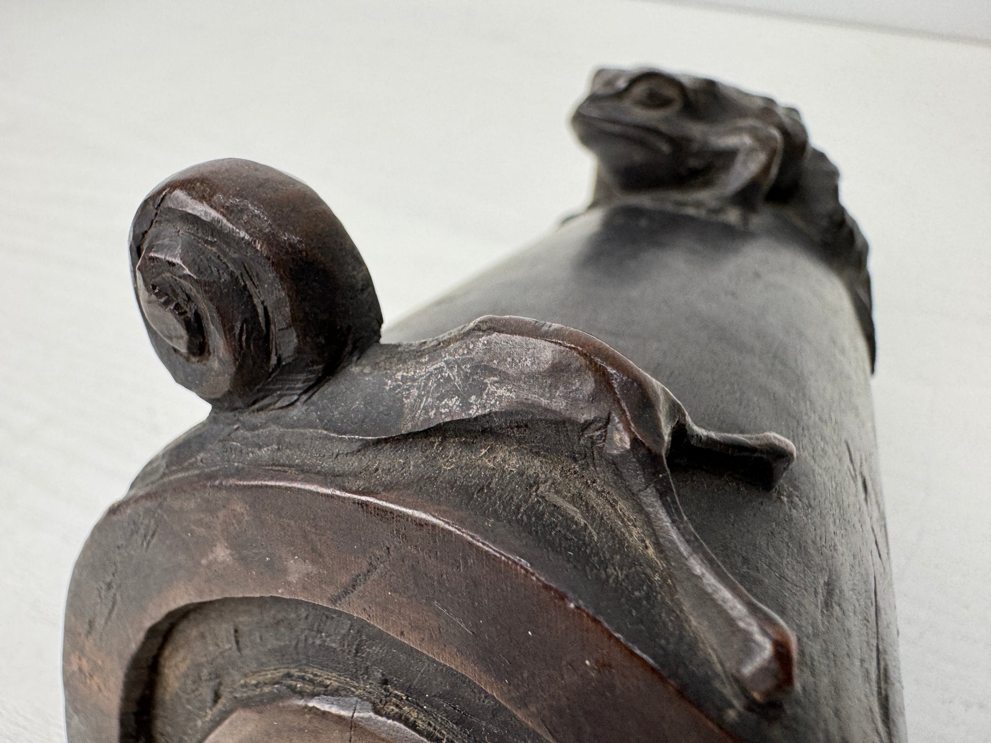 OKIMONO wood carving Tile Frog Snail figurine