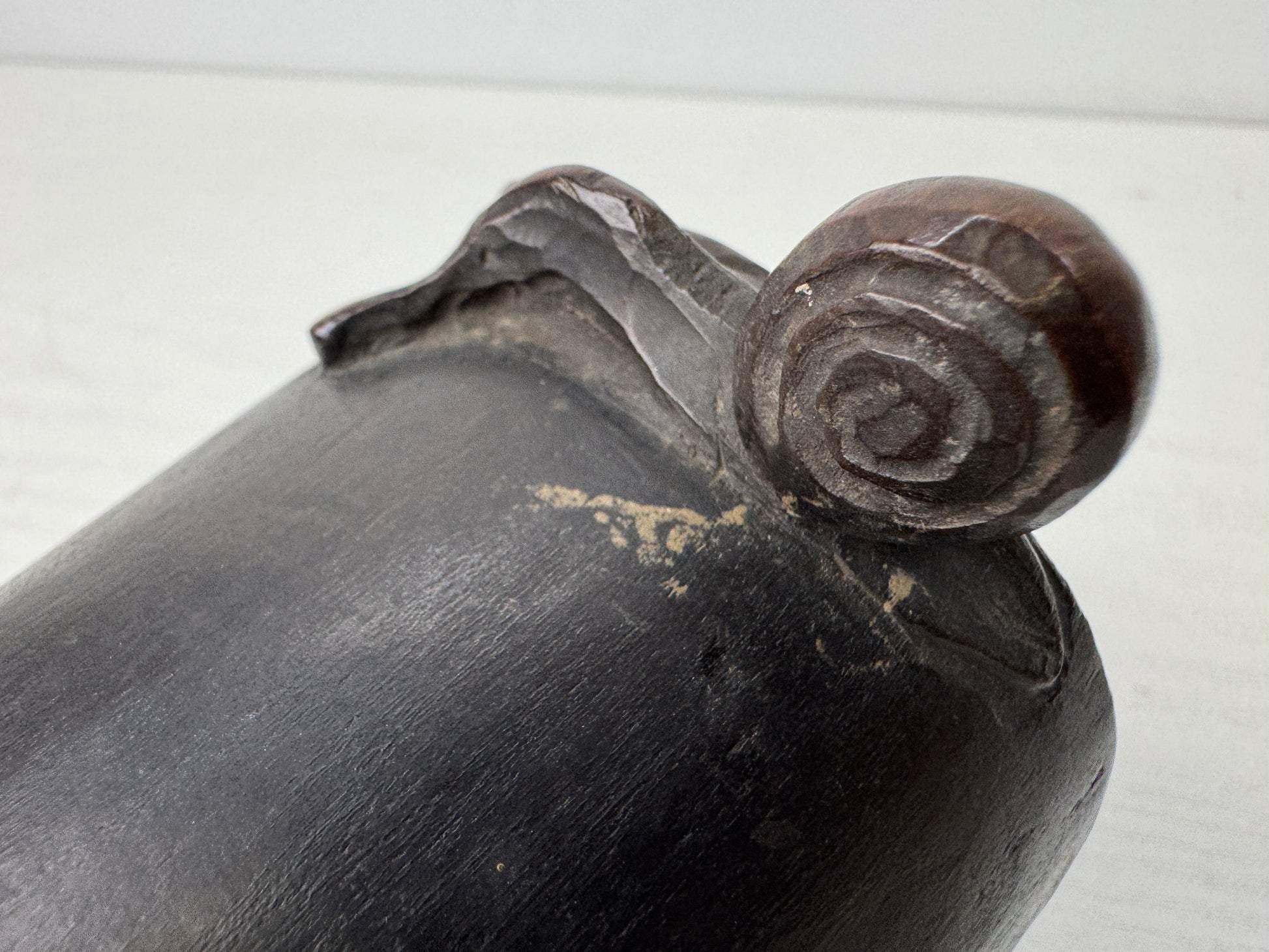Y9655 OKIMONO wood carving Tile Frog Snail figurine Japan antique interior decor