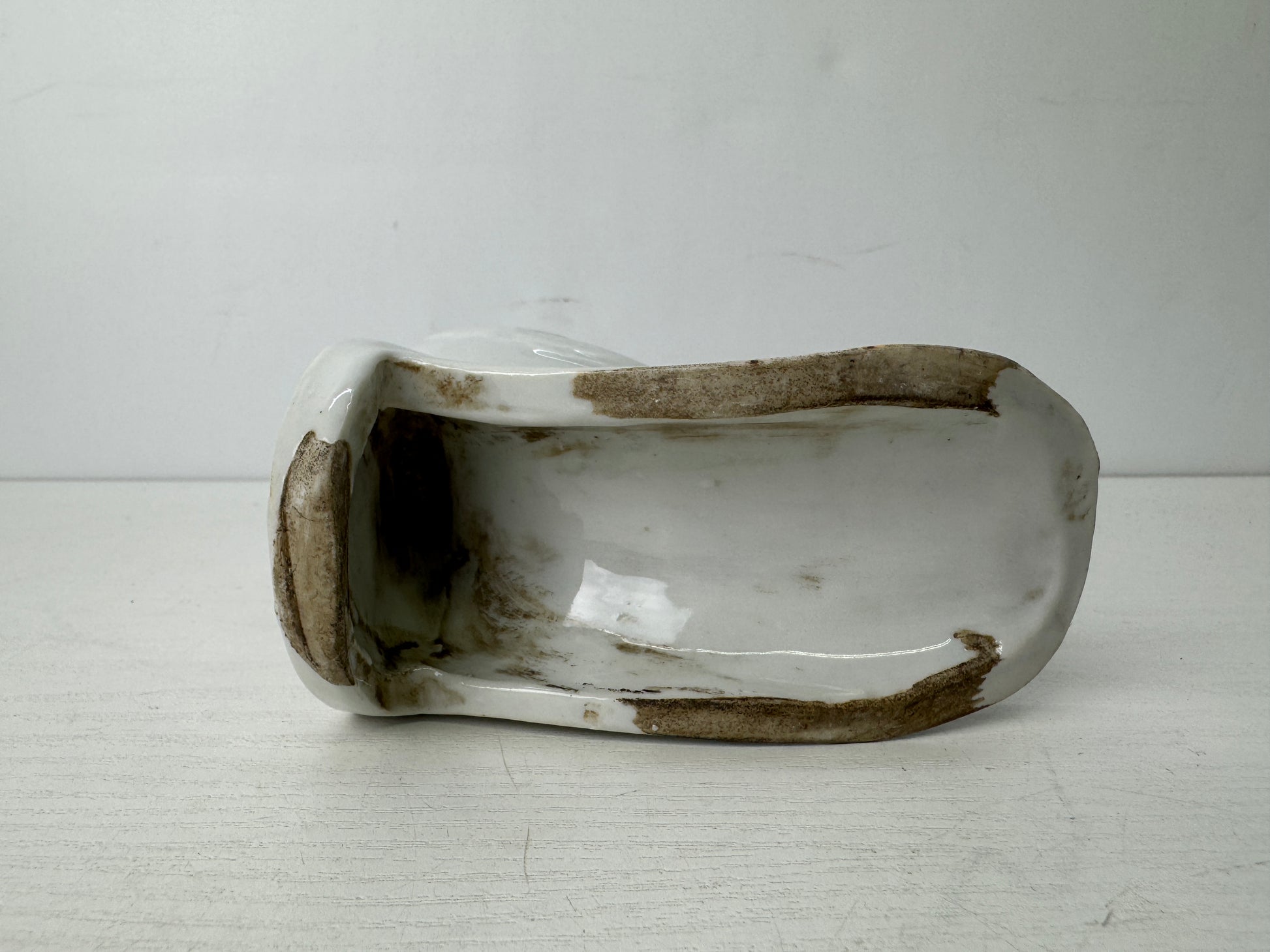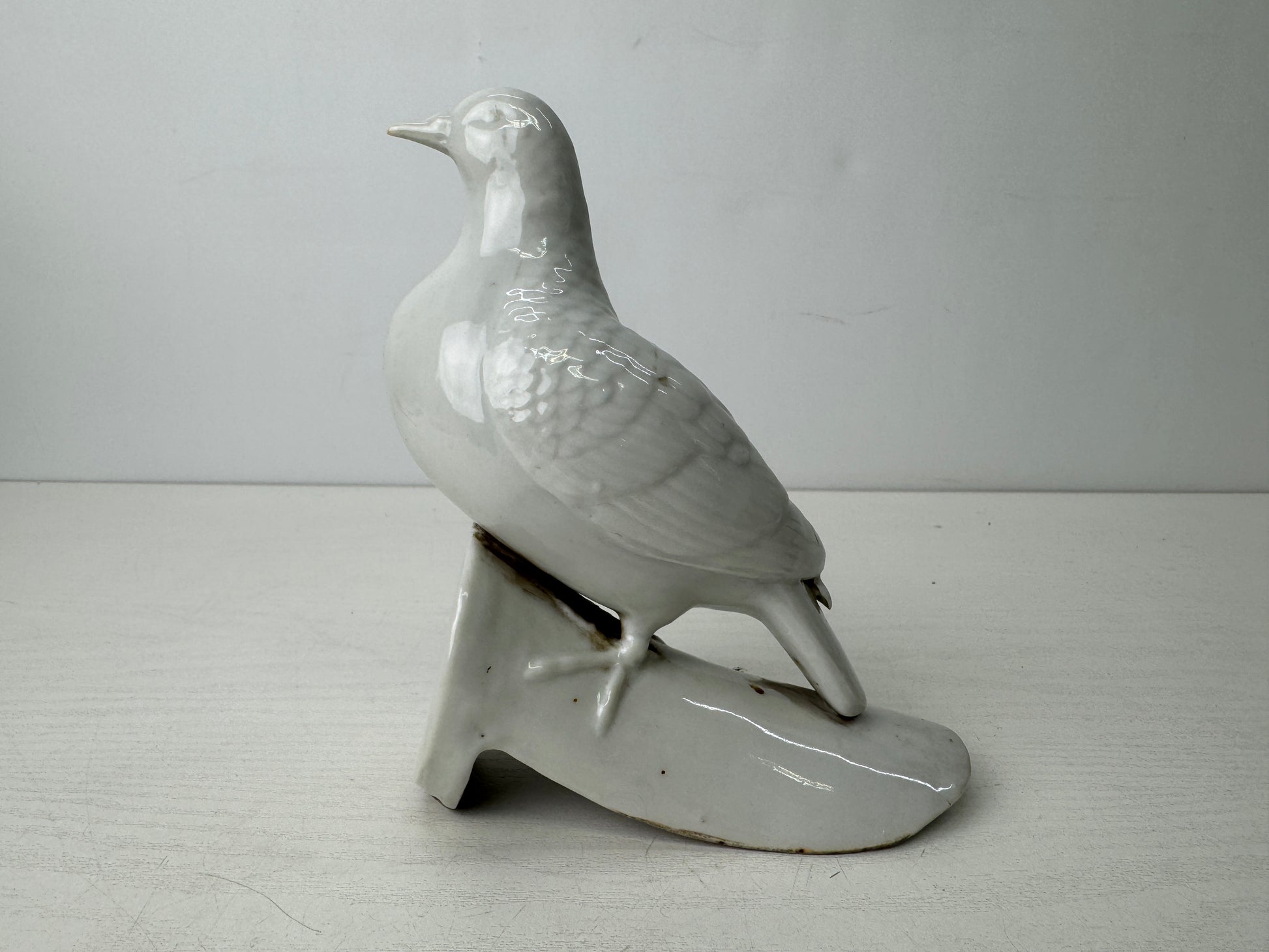 Y9657 OKIMONO Hirado-ware white porcelain Tile Bird figurine Japan antique decor